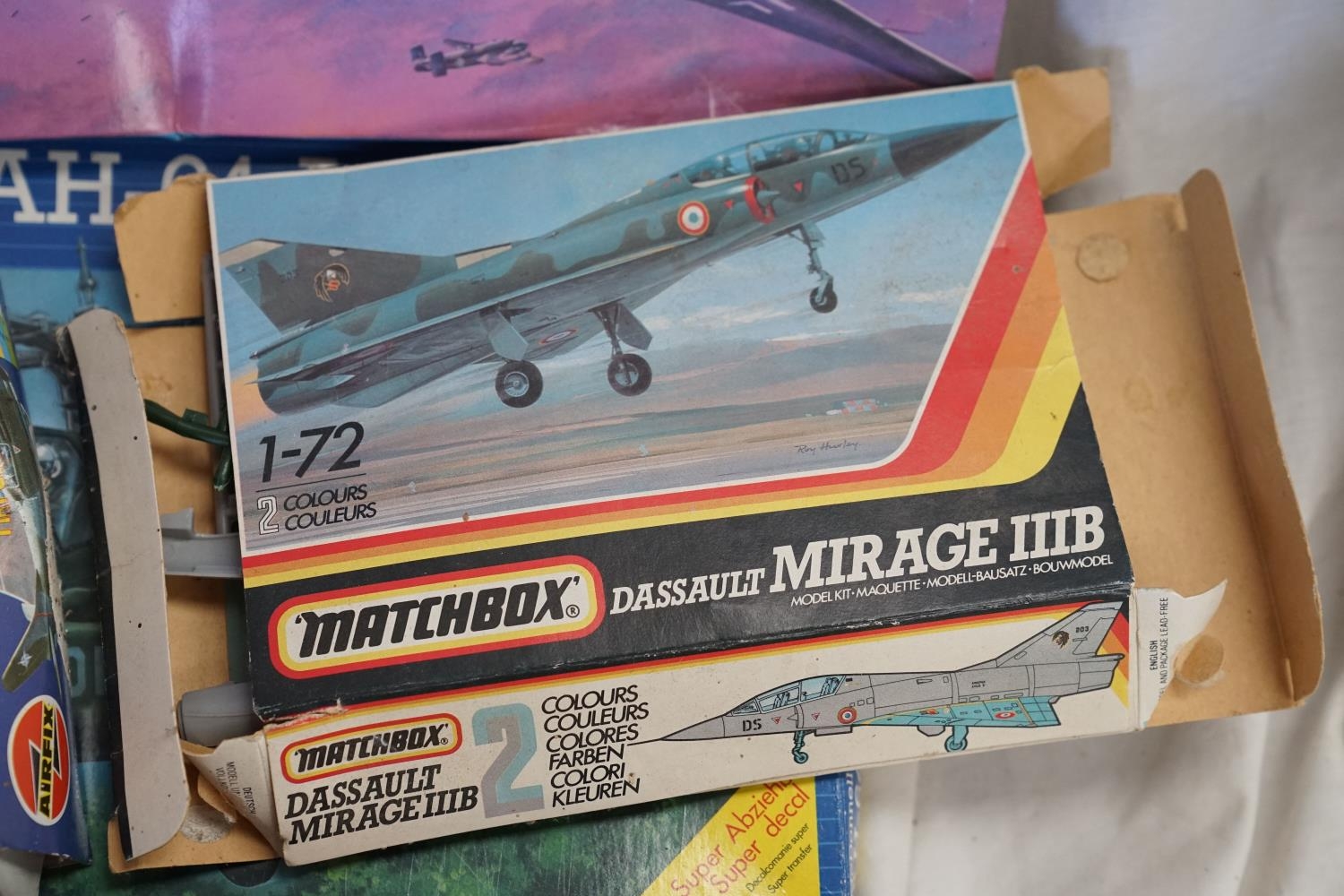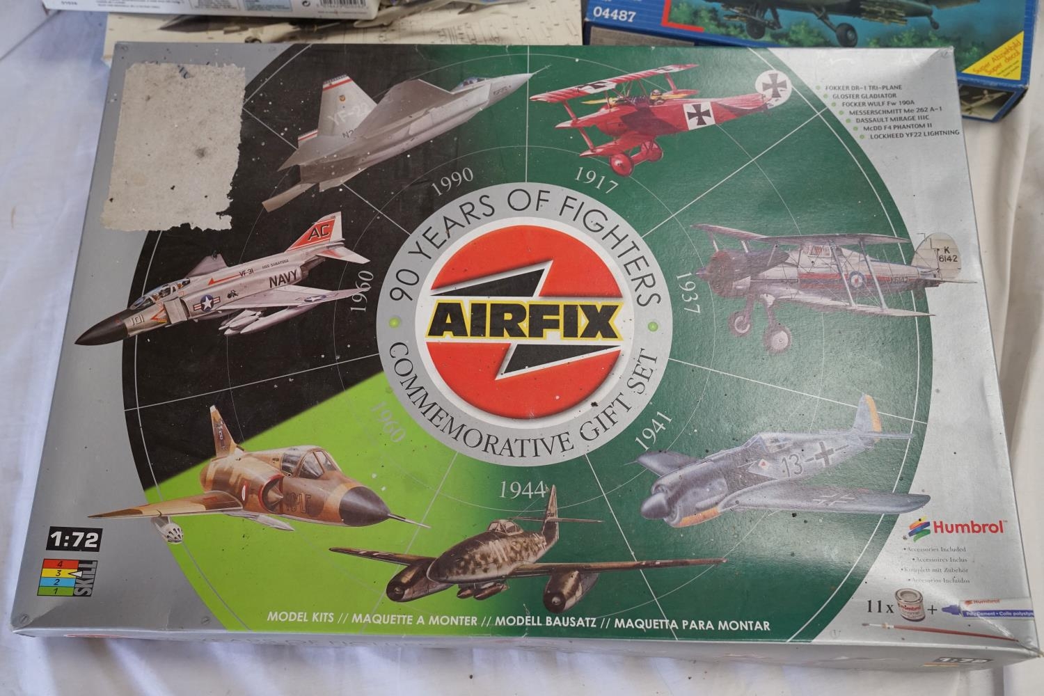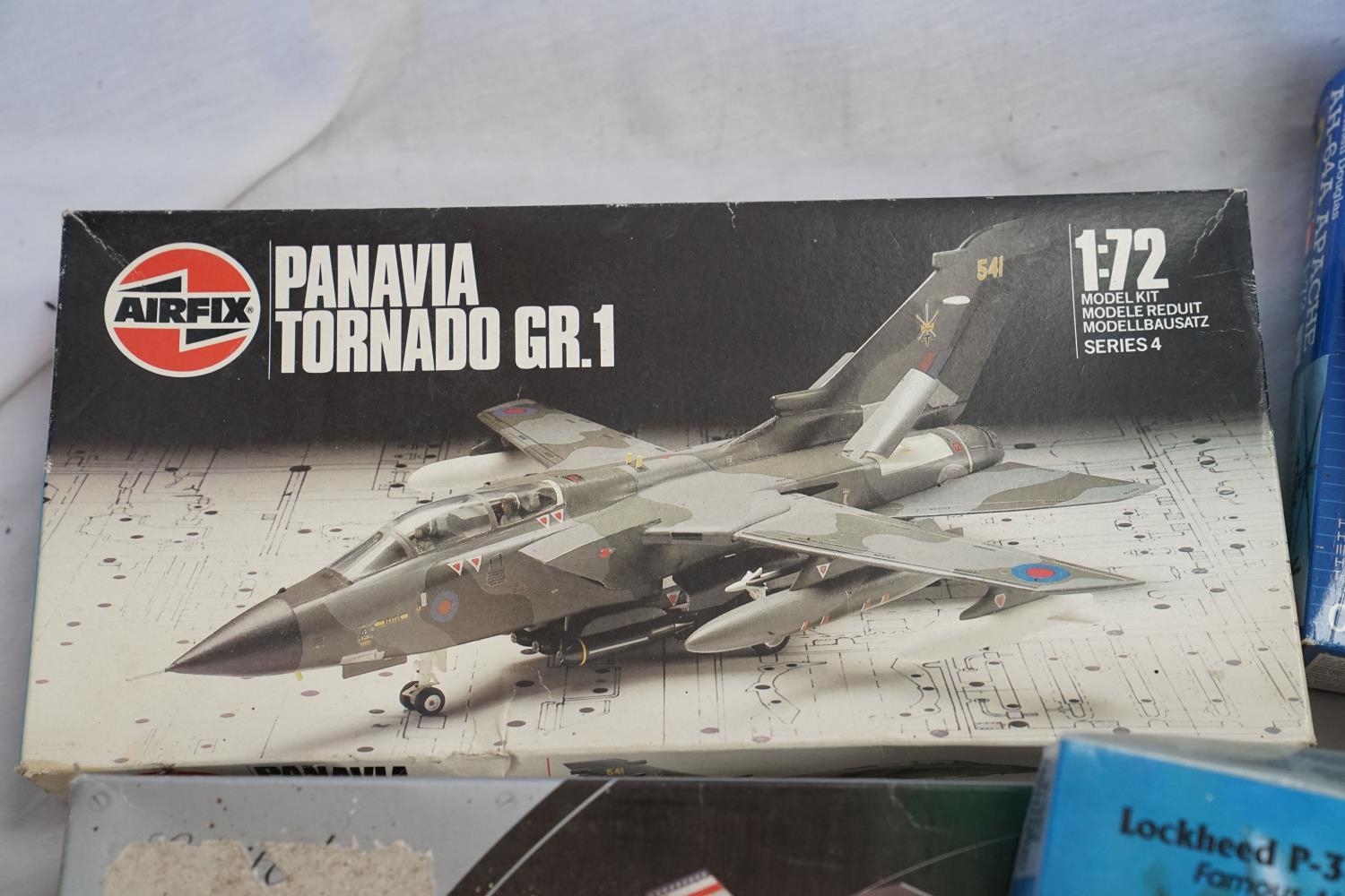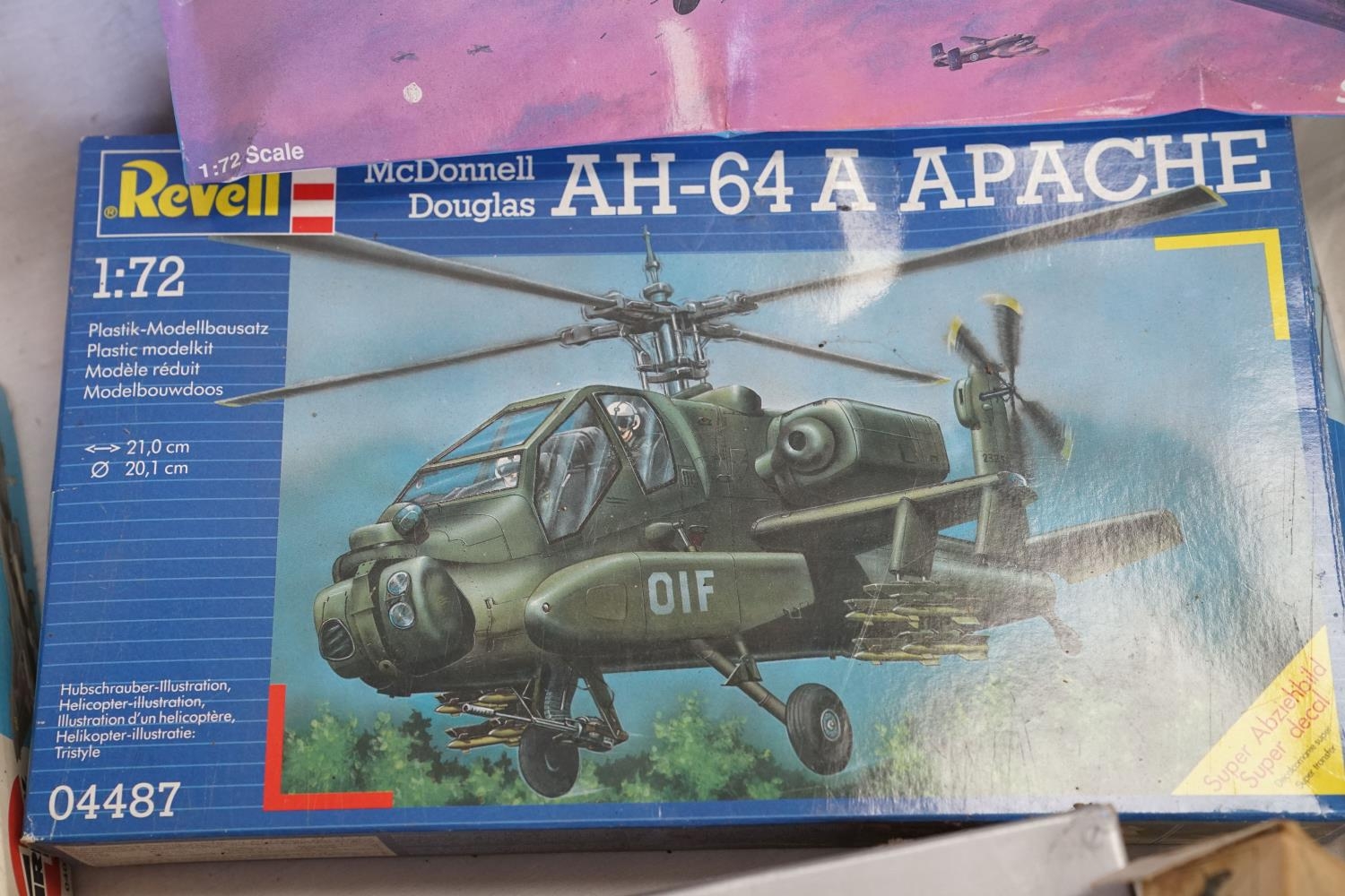 20 x Boxed, unbuilt, plastic model kits to include 10 x 1:72 Airfix featuring 01705 WWII German Infantry, 01030 Messerschmitt Me262, 04039 BAe Harrier GR7, 03043 Westland Sea King, 03382 Jungle Outpost, 03053 Fw189A-2, 01747 RAF Personnel, 08655 90 Years of Flight, Helldiver, 04027 Panavia Tornado GR.1 and 01026 Fiat G.91R, 3 x 1:72 Minicraft Models to inclyuse 14410 Lockheed P-38J Lightning, 14411 Messerchmitt BF-110G Zerstorer and 14416 Mitsubishi A6M2 Zero, 2 x 1:72 Matchbox PK-29 A-4M Skyhawk and PK-44 Dassault Mirage IIIB, 2 x 1:72 Revell 4824 Arado Ar 240C-02 Nightfighter and 04487 McDonnell Douglas AH-64A Apache, 1:48 Starfix Messerchmitt BF 4109E and Fujimi Mokeico Ltd 1:72 FR-4B Phantom-II