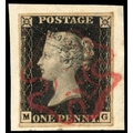 GB 1840 1d black, plate 6 (MG), used tied to small piece with neat ruby Maltese cross