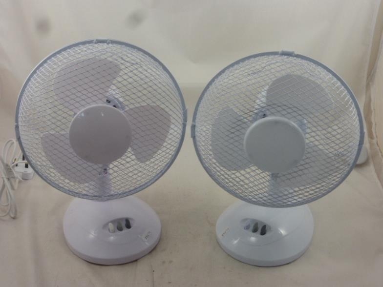 Two White 2 Speed Oscillating Desk Fans (Working)