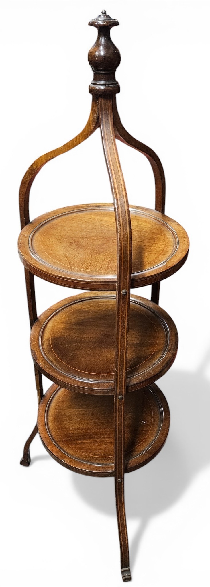 An Edwardian Mahogany three tier Cake Stand. H 91 cm approx.