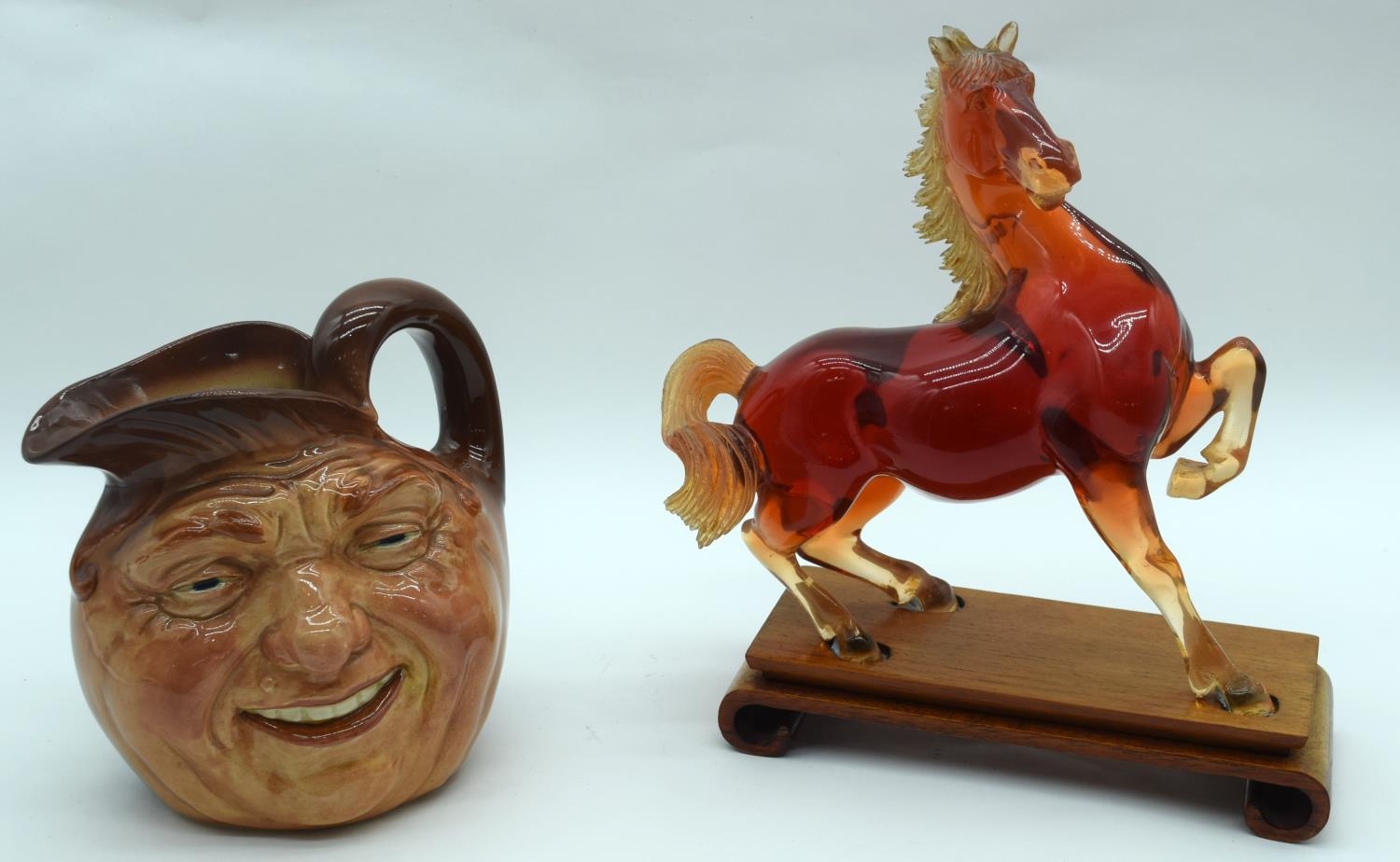 A figure of a horse on a stand together with a Character jug of John Barleycorn . 26 x23cm. (2).