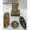 GILT BRASS CARRIAGE CLOCK, 2 FOSSIL SECTIONS, ETC.