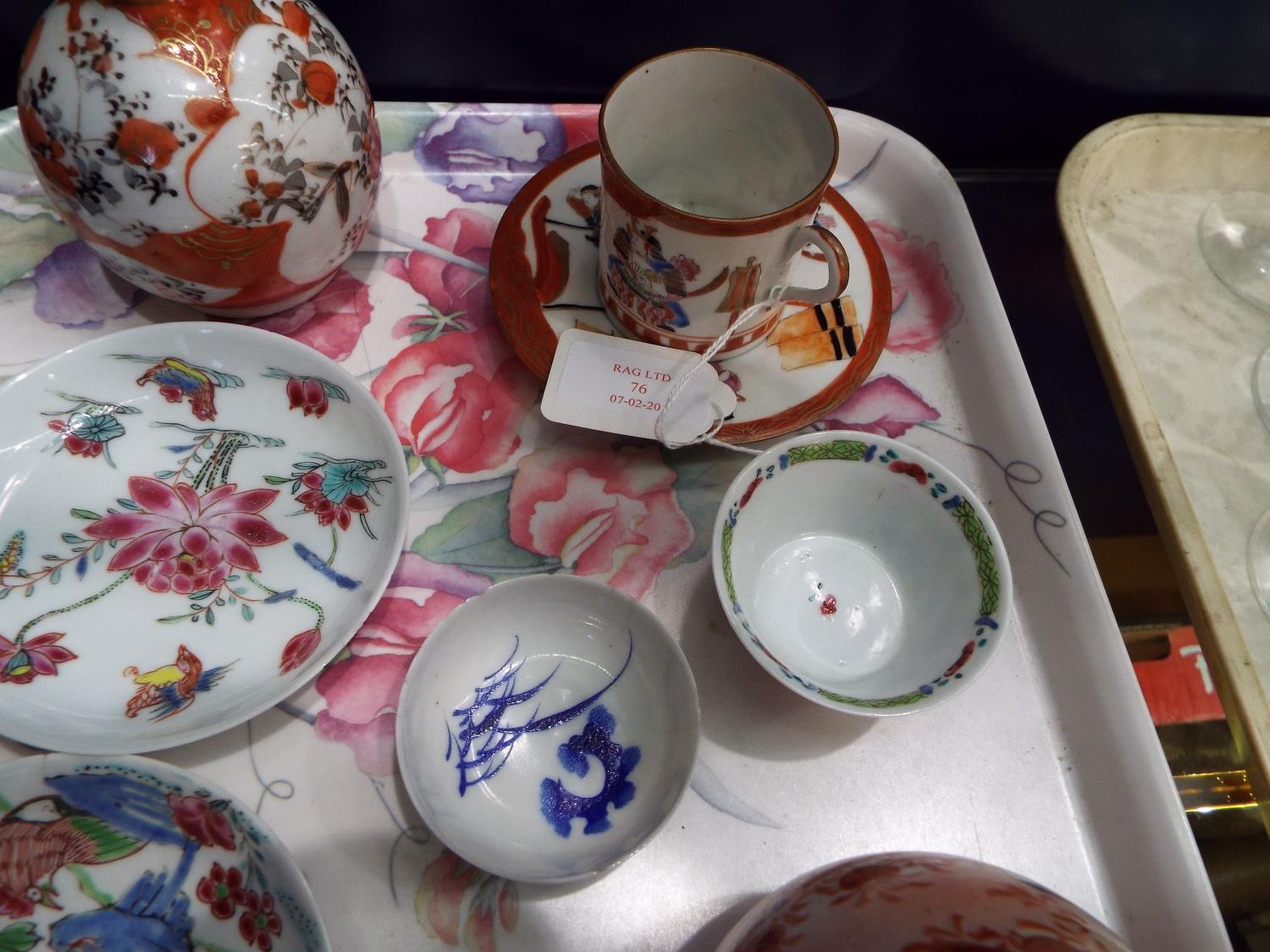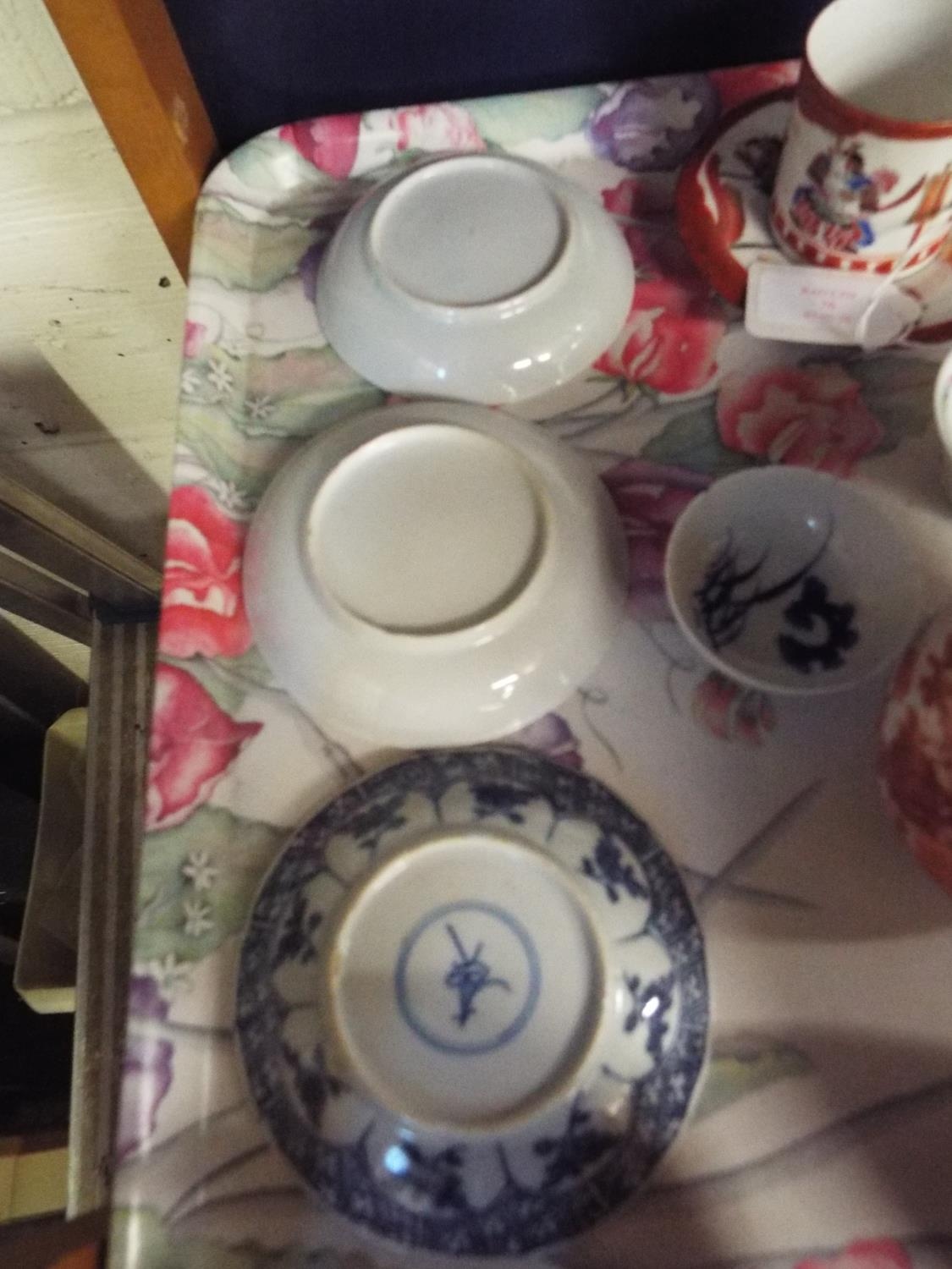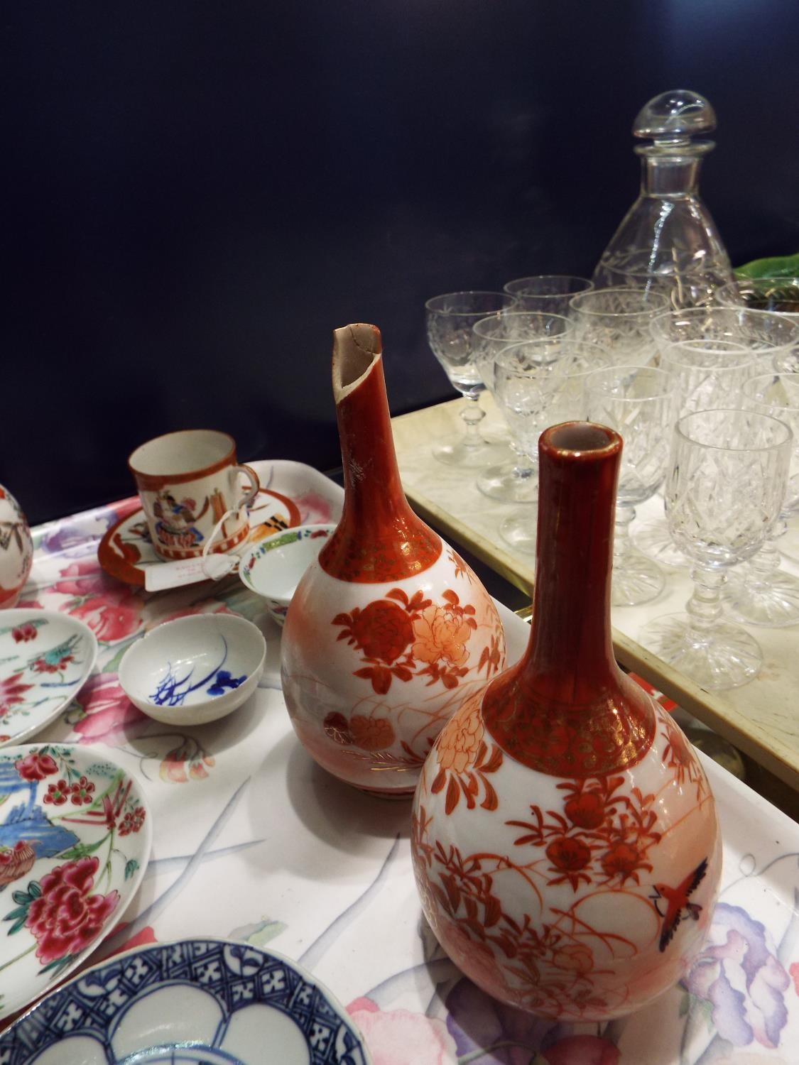 A mixed selection of Oriental ware to include Kutani vases, cup, saucer, tea and rice bowls etc