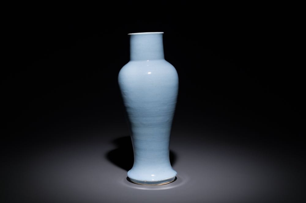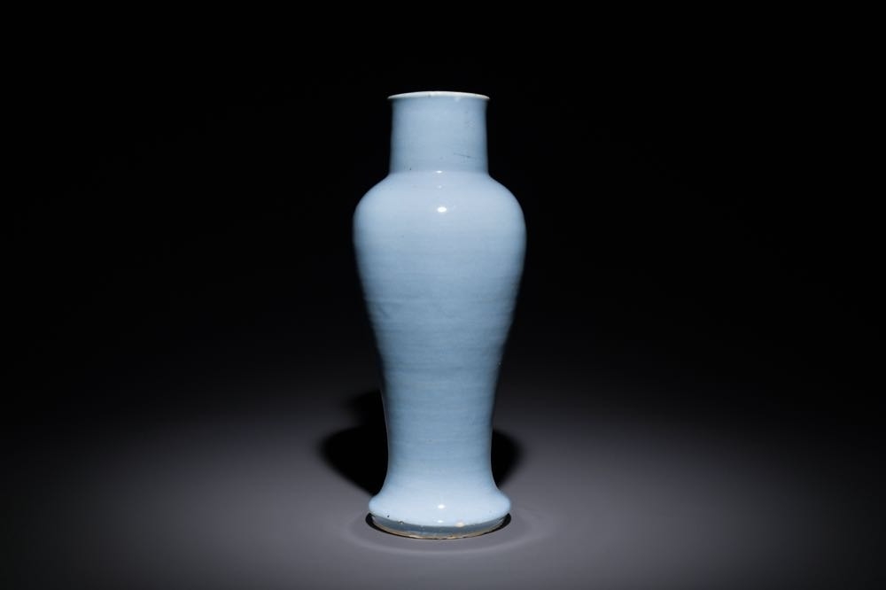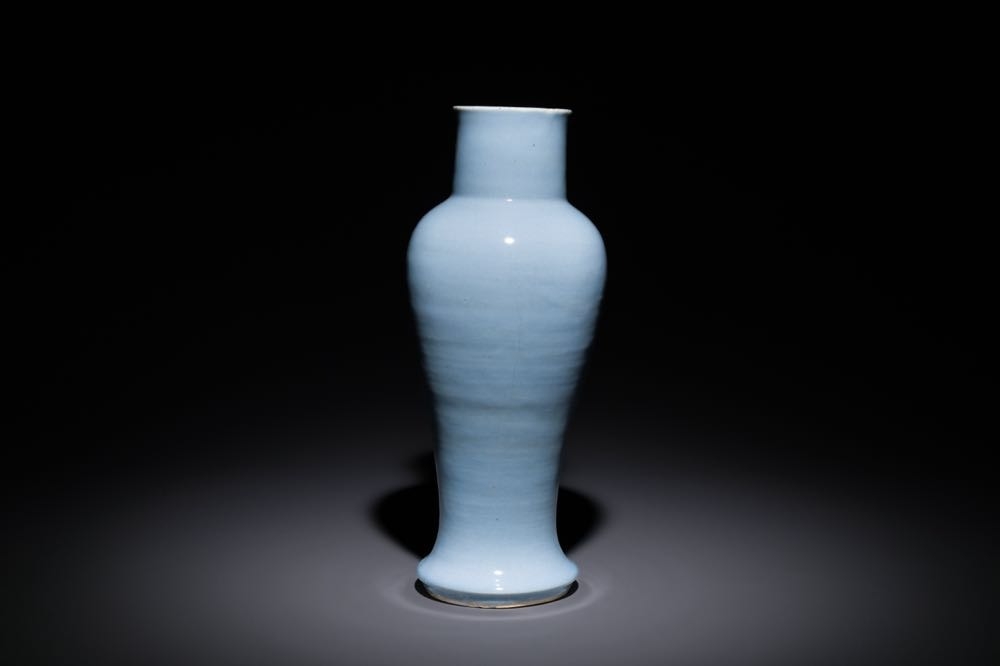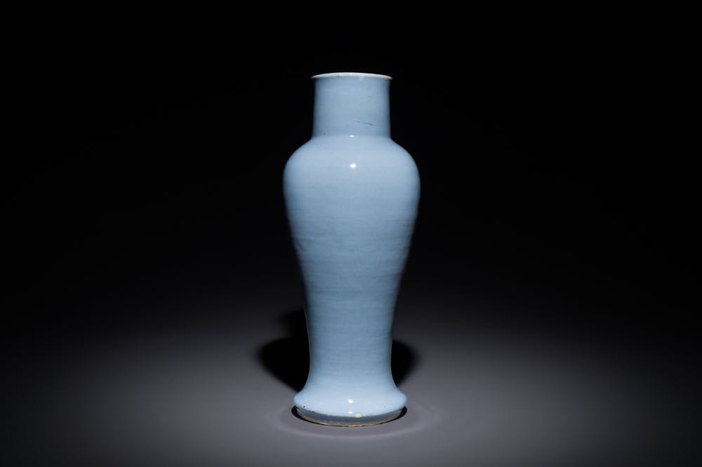 A Chinese monochrome clair-de-lune-glazed 'guanyin zun' vase, Kangxi