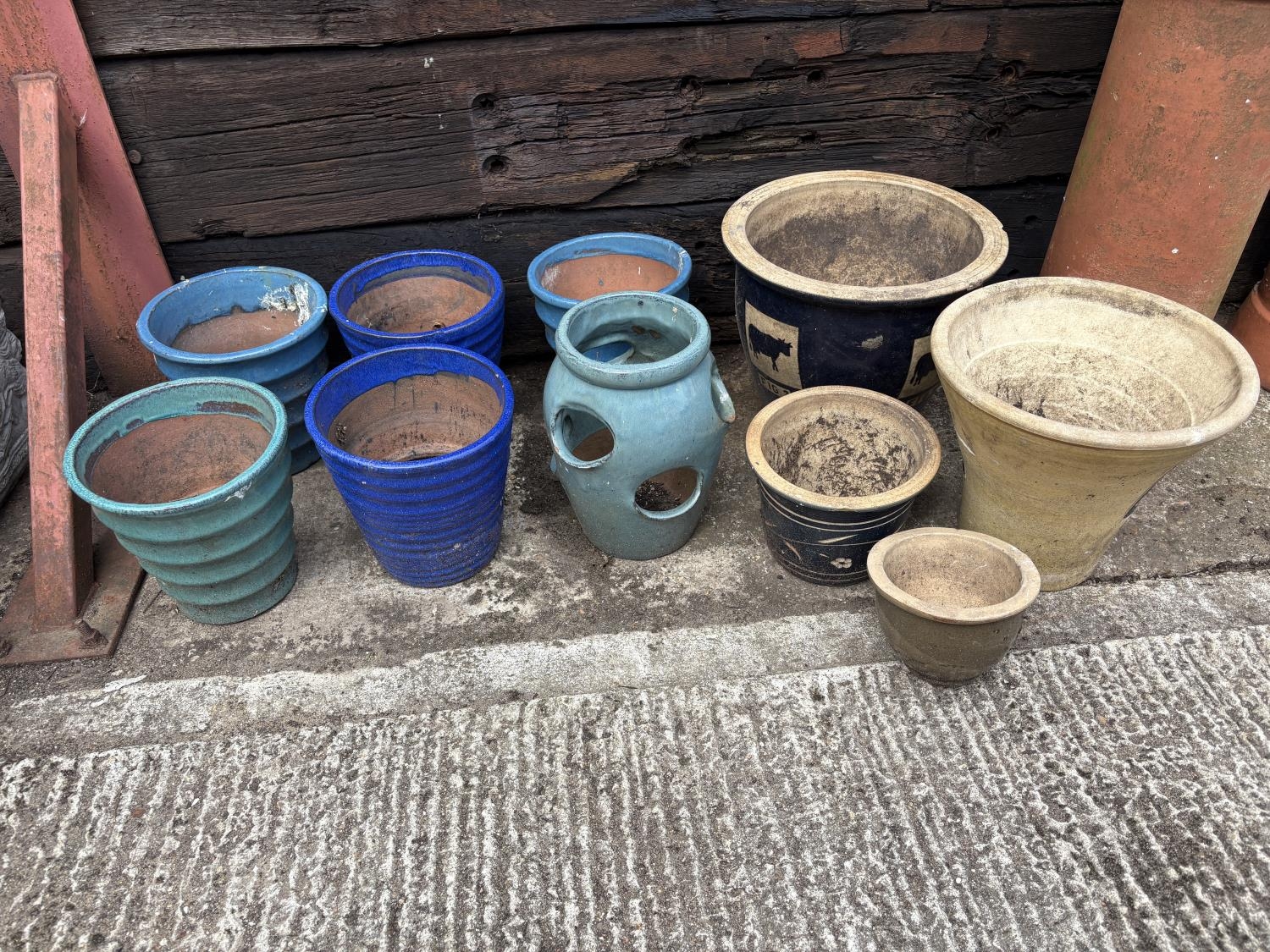 A collection of 10 assorted glazed garden pots