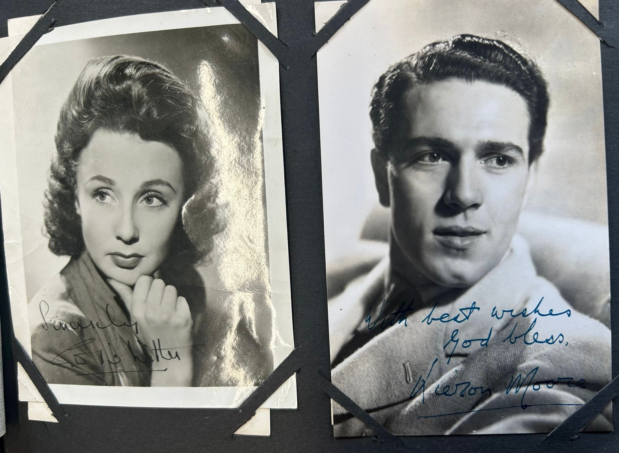 An album containing 74 publicity photographs, mostly from the 1950s of actors, actresses and personalities, many signed, including Gary Cooper, Clarke Gable, Gene Kelly, James Mason, Ronald Reagan, Bob Hope, etc. Generally GC the album slightly worn.