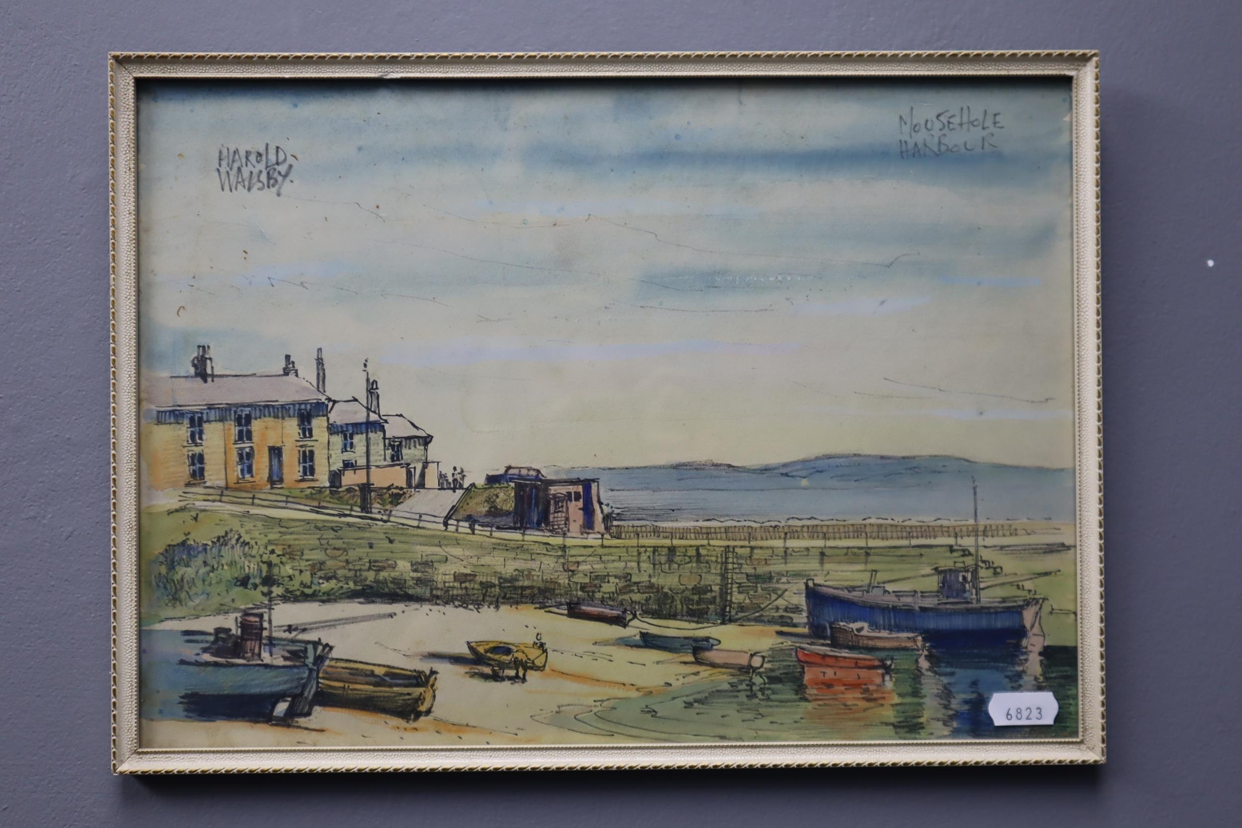 Signed Mid Century Framed and Glazed Harold Walsby Watercolour Painting Entitled Mousehole Harbour Famous Author of "Systamatic Ideology of Historically Important Unions" approx 14"x 10"