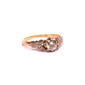 The single round cut diamond in an 18ct gold shank flanked by platinum shoulders.