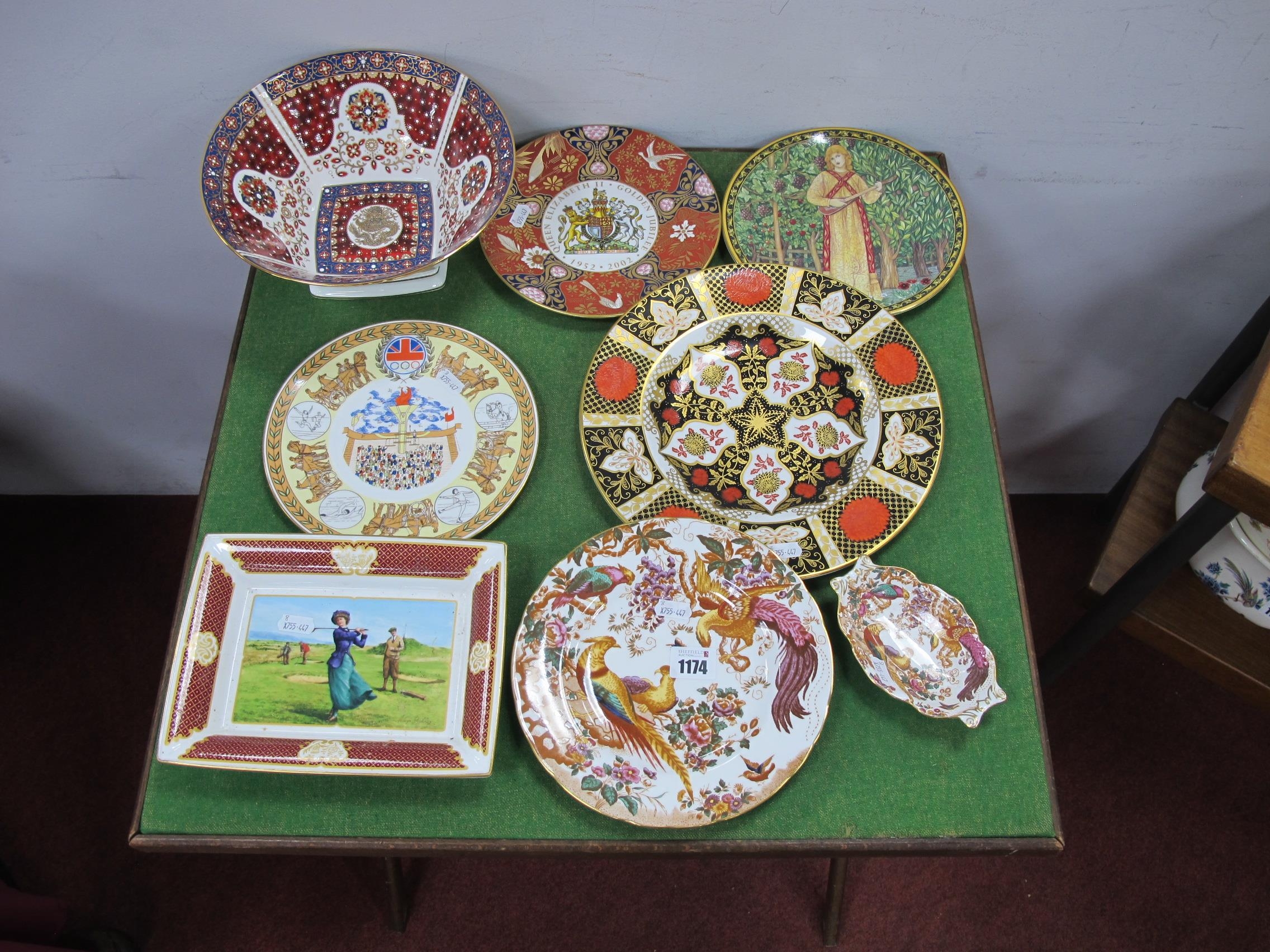 William Edwards from The Royal Armouries Collection Bowl, 10cm high, Abbeydale 'Chrysanthemum' plate, Royal Crown Derby 'Olde Avesbury' plate and pin dish, and a Royal Worcester golfing rectangular dish (8).