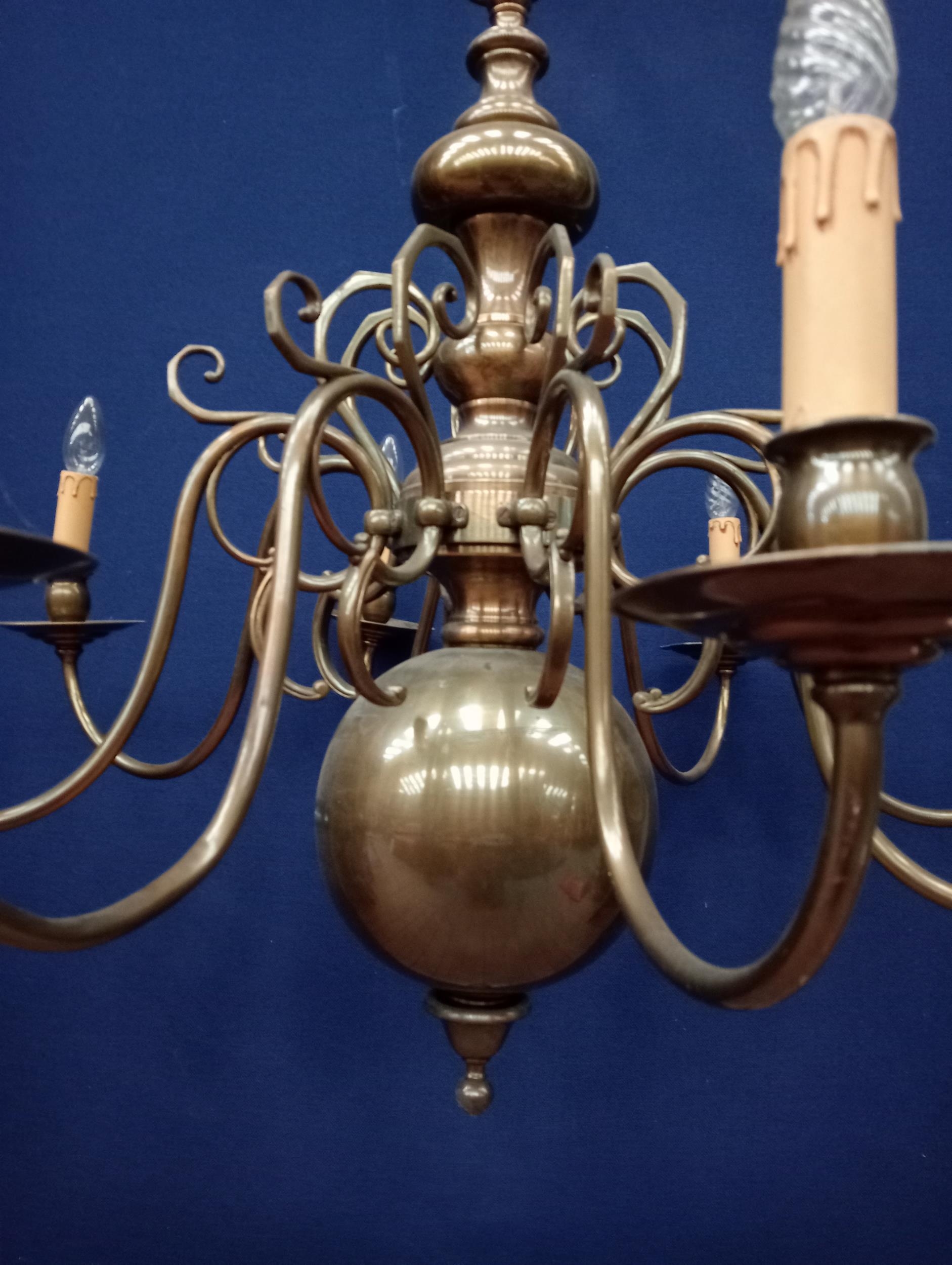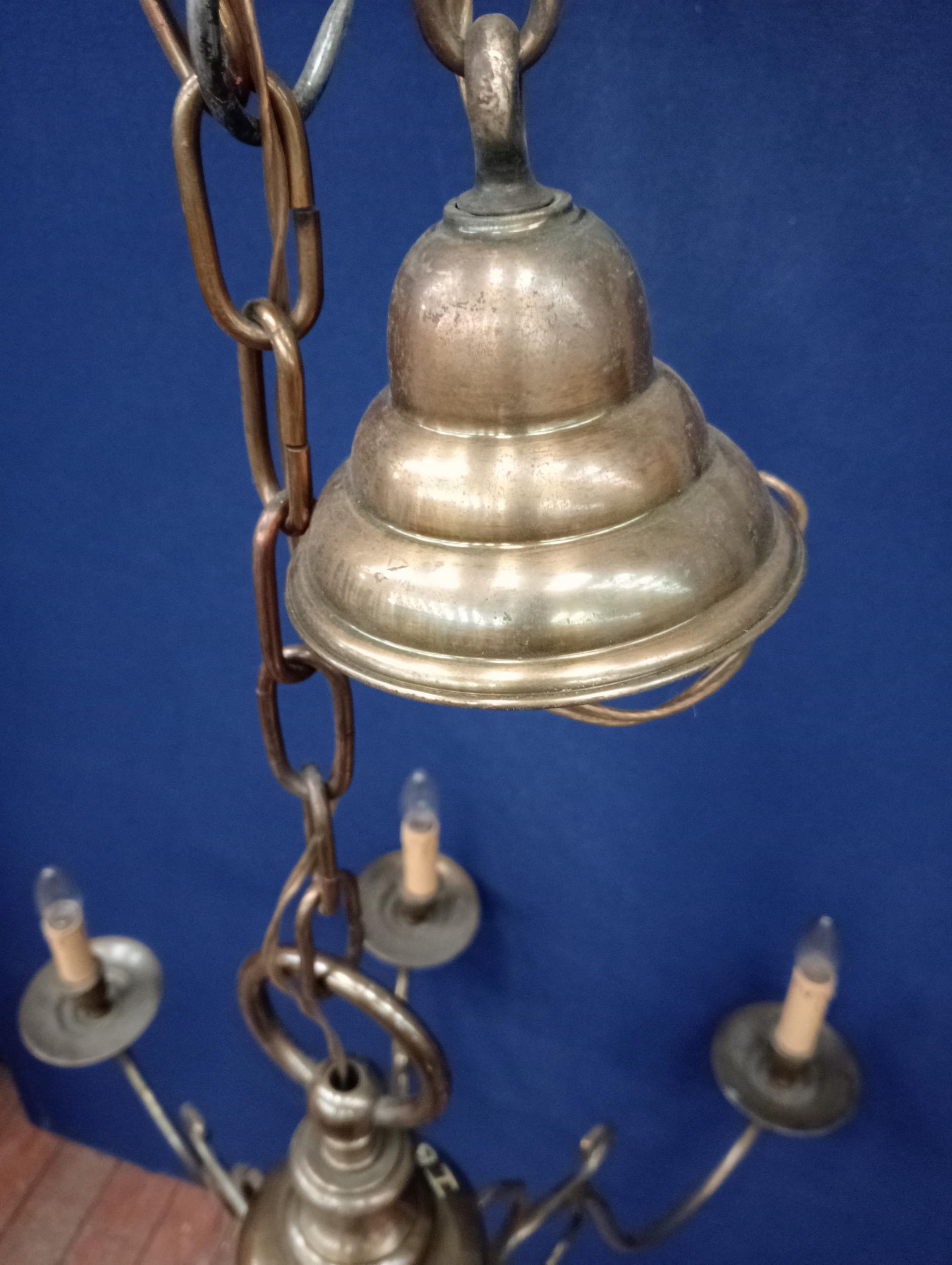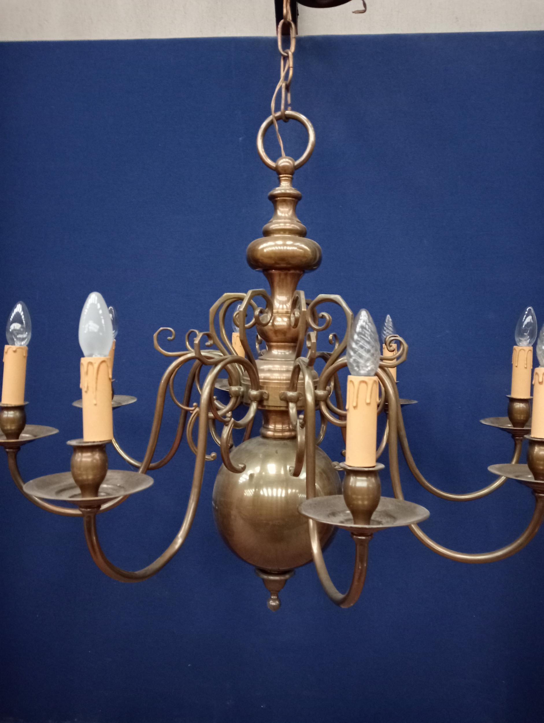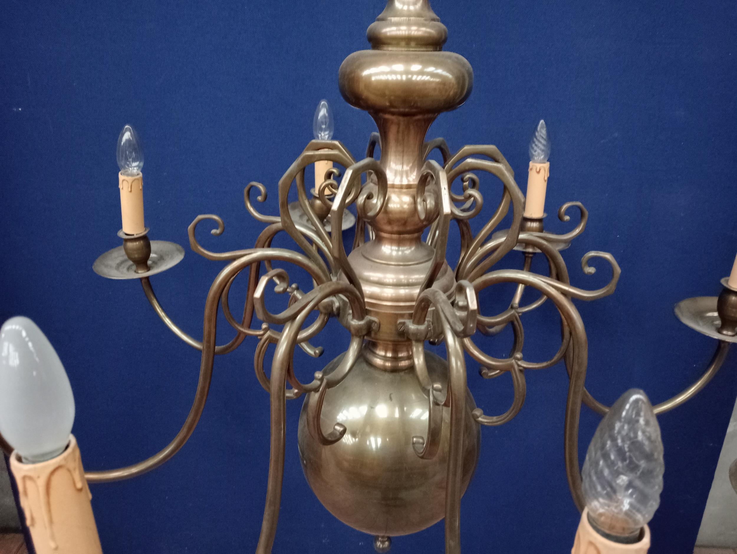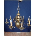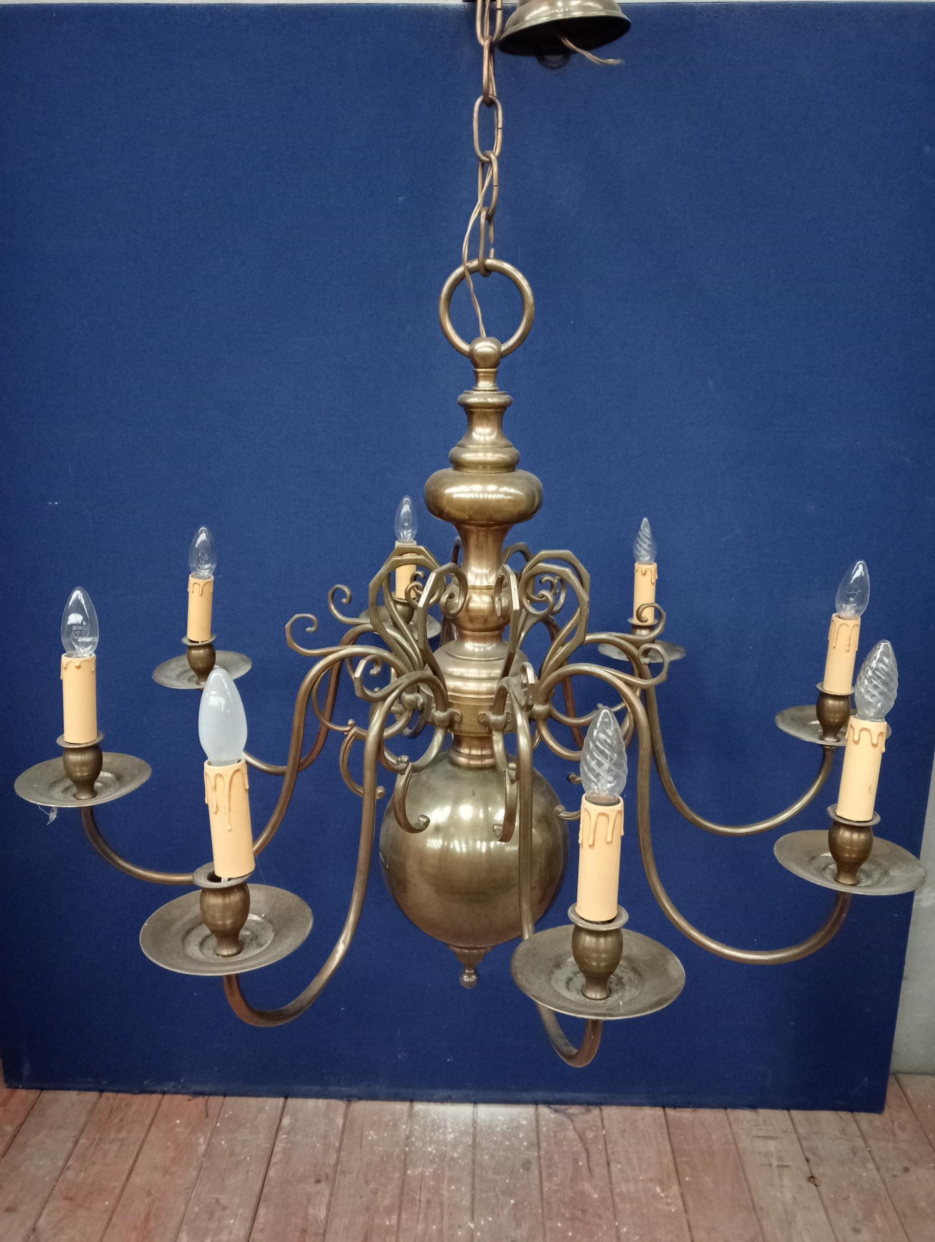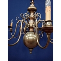 Eight branch bronze chandelier in the colonial style {Hanging H 136cm x Dia 100cm }. - NOT AVAILABLE TO VIEW IN PERSON