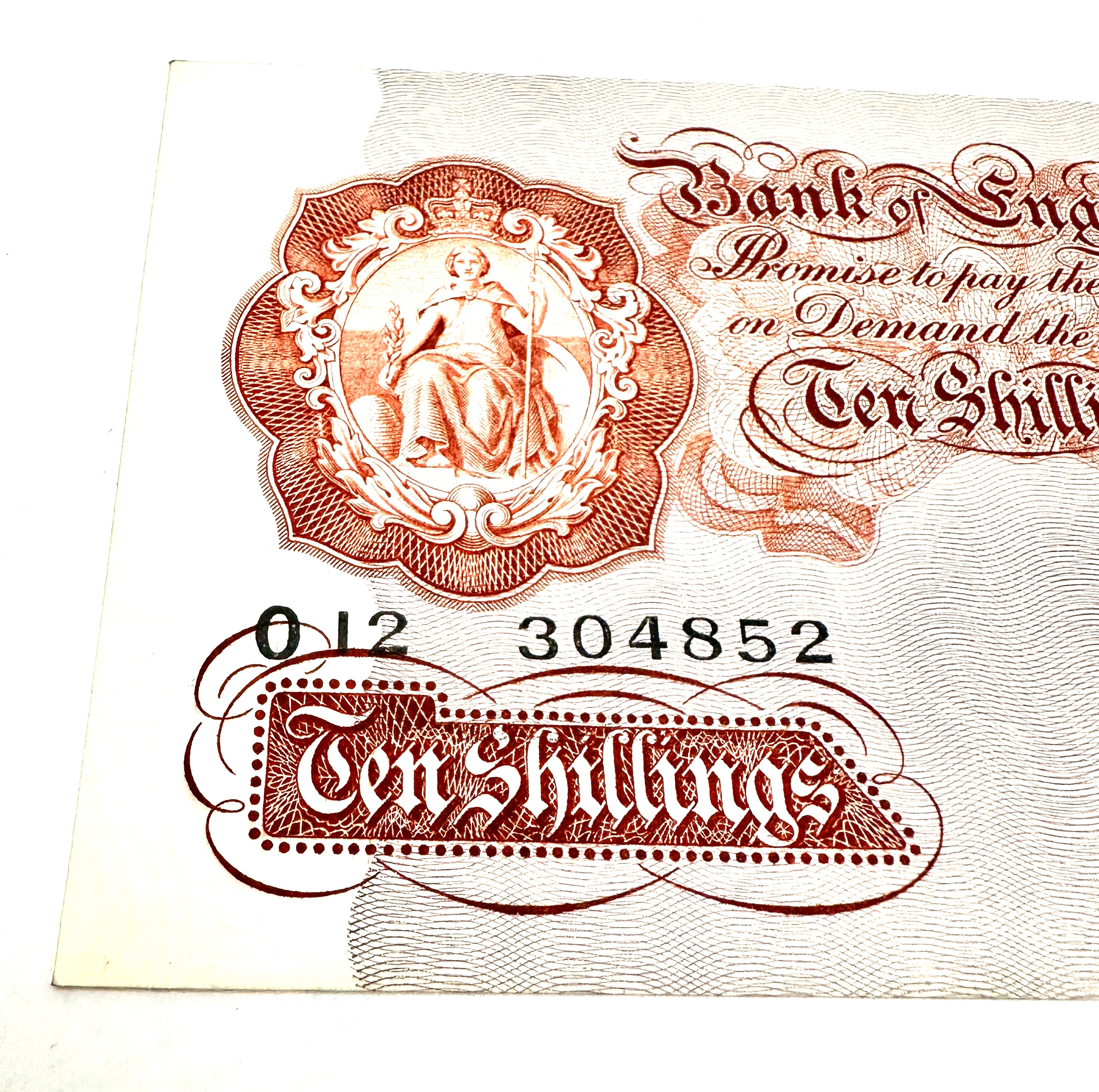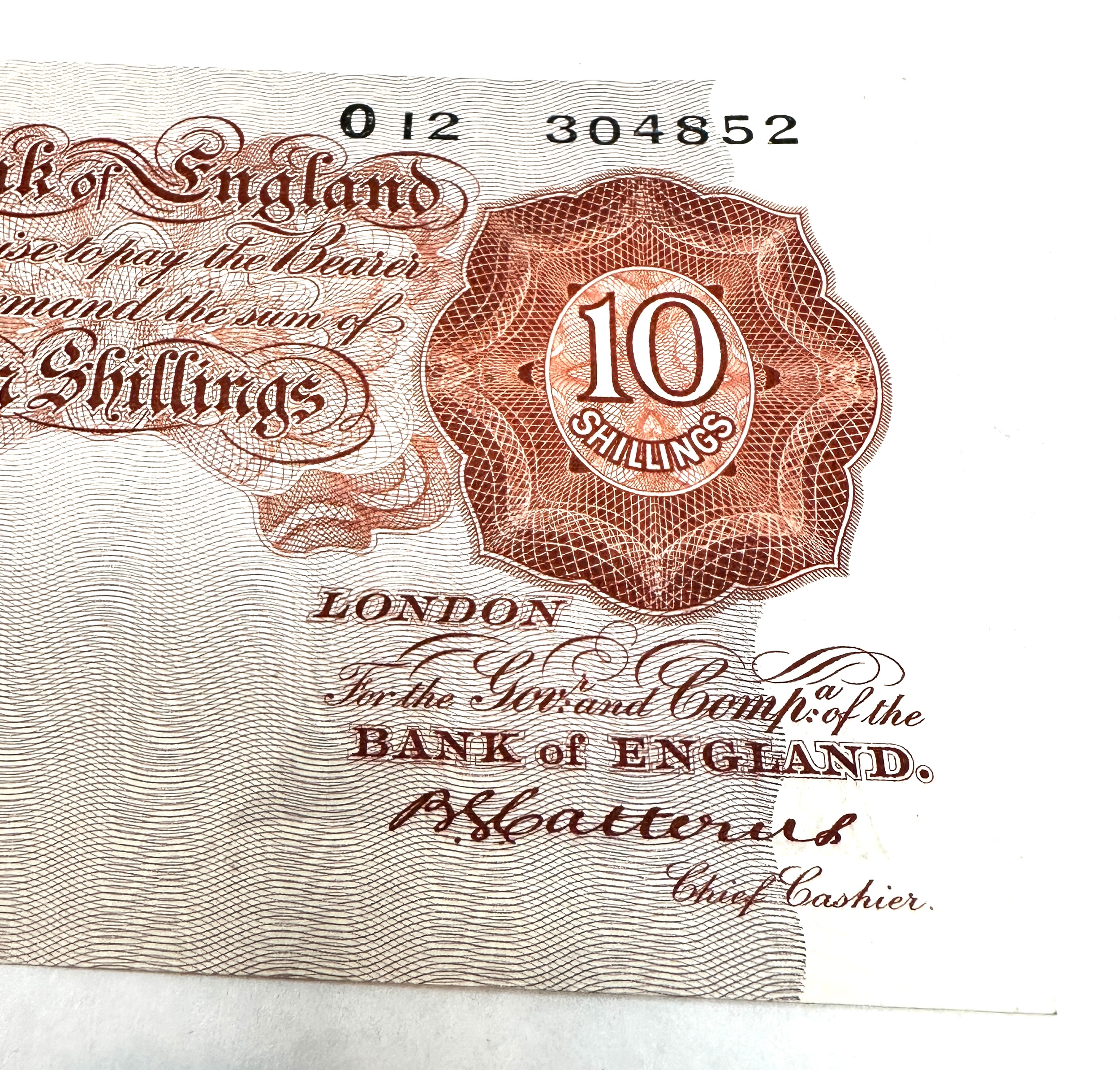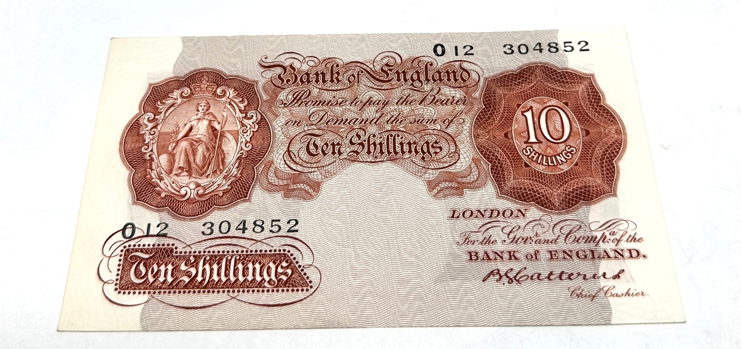 Rare Catterns ten shilling - 1930 to 34 English Banknote. O12 304852 look in unc condition