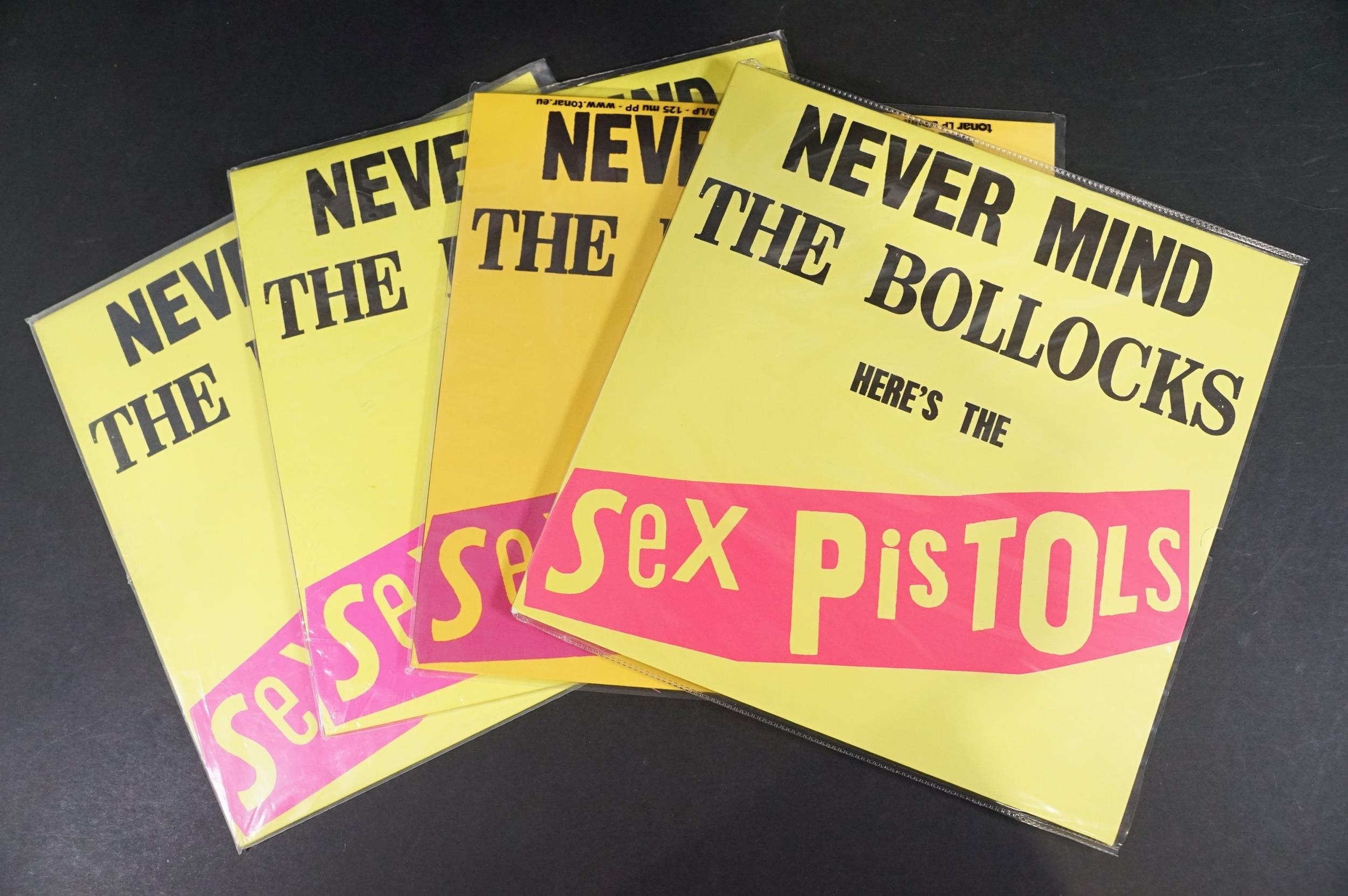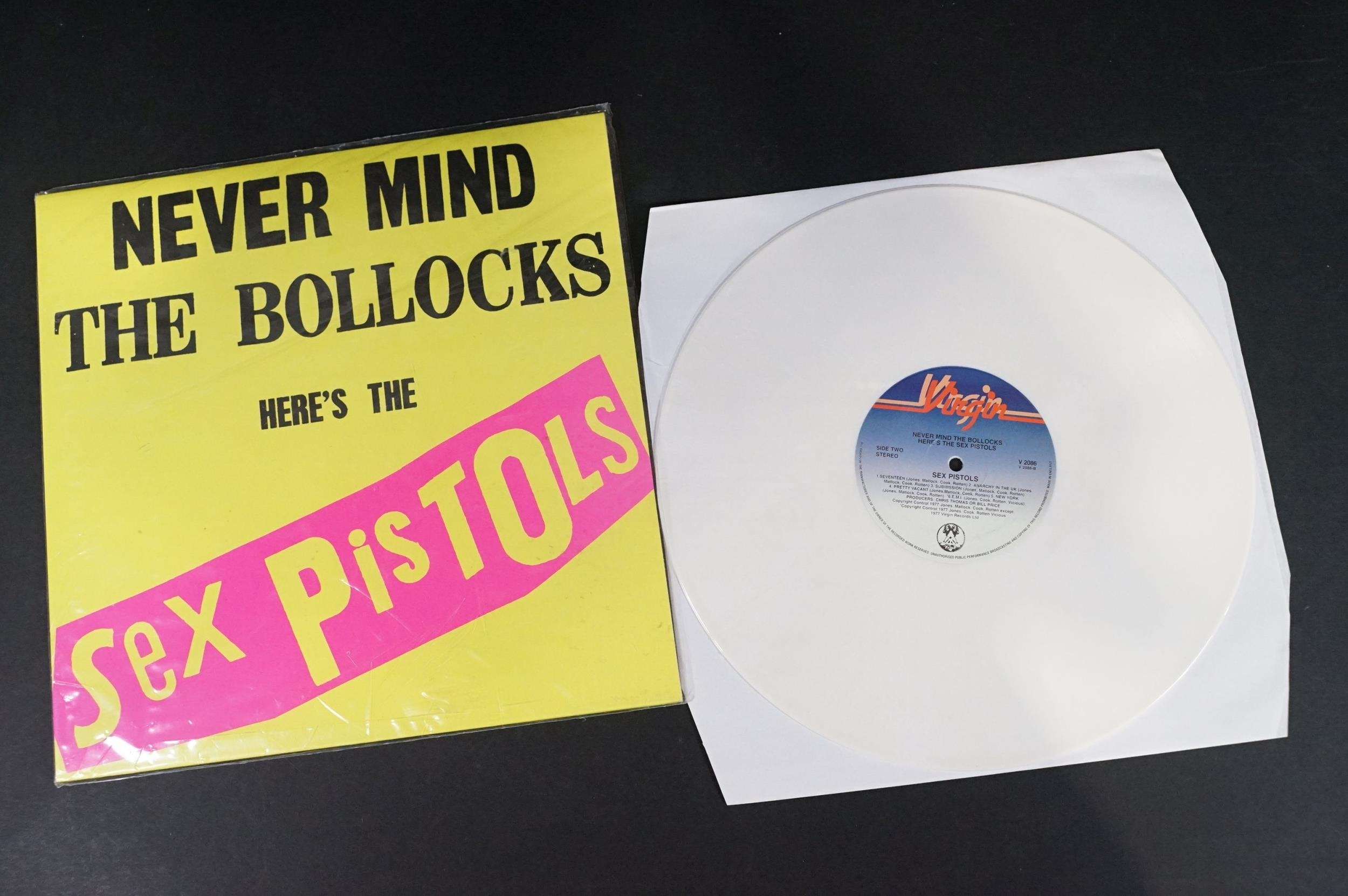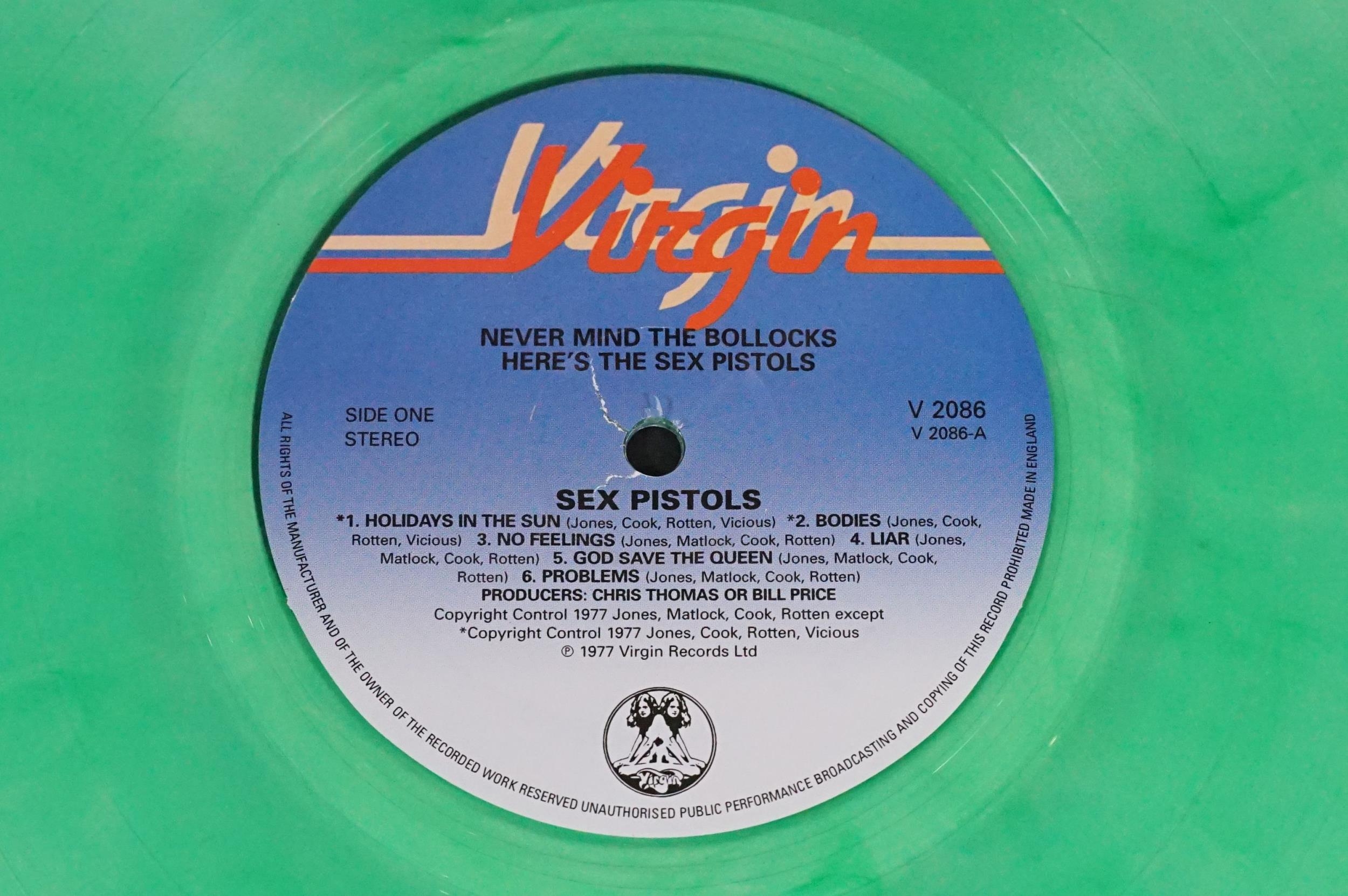 Vinyl - 4 Sex Pistols limited edition UK coloured vinyl re-issue LP’s of Never Mind The Bo****ks Here's The Sex Pistols, Virgin – V-2086, 2014 green, 2010 dark purple marbled, 2010 white vinyl, 2014 purple marbled. Condition EX+