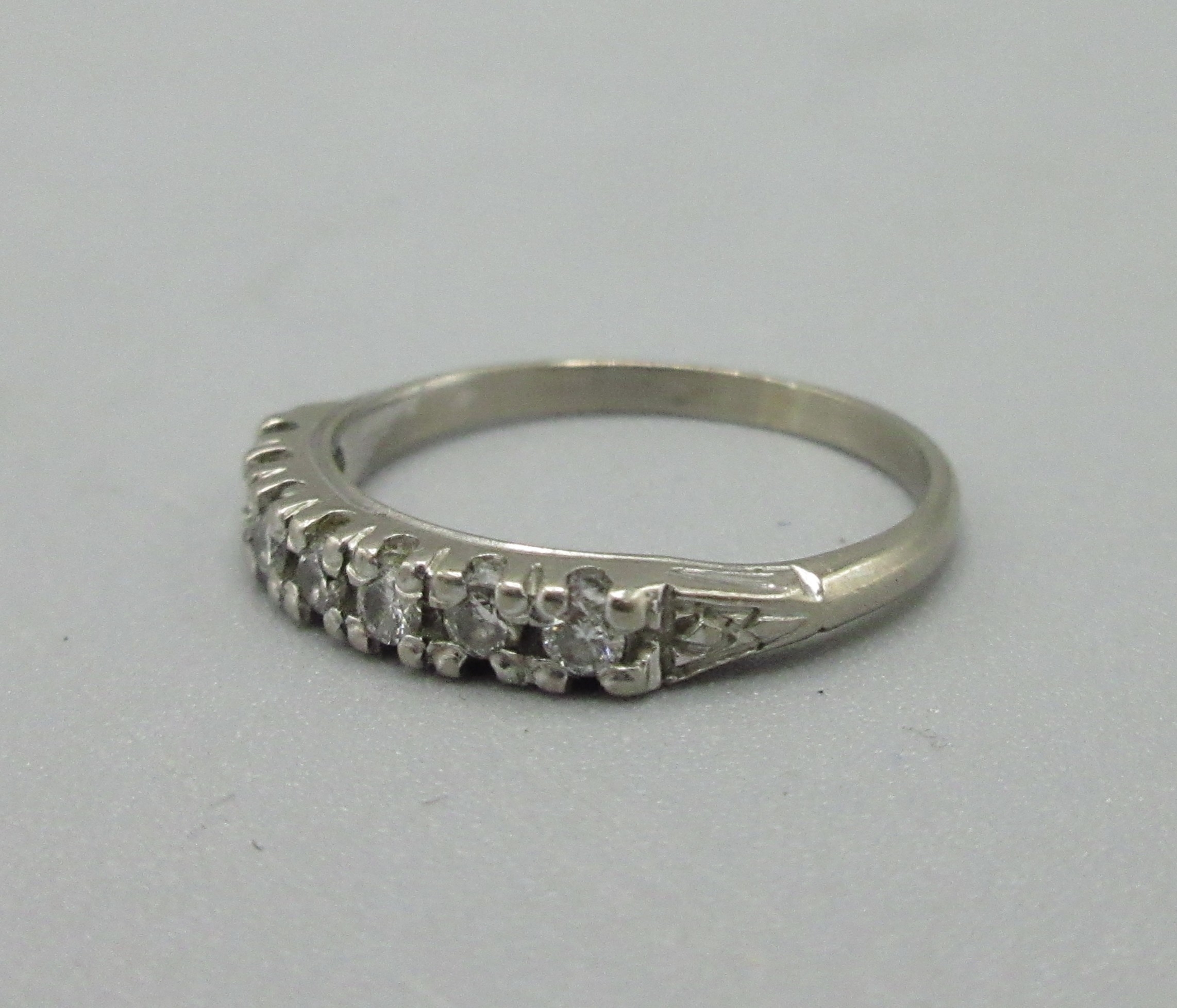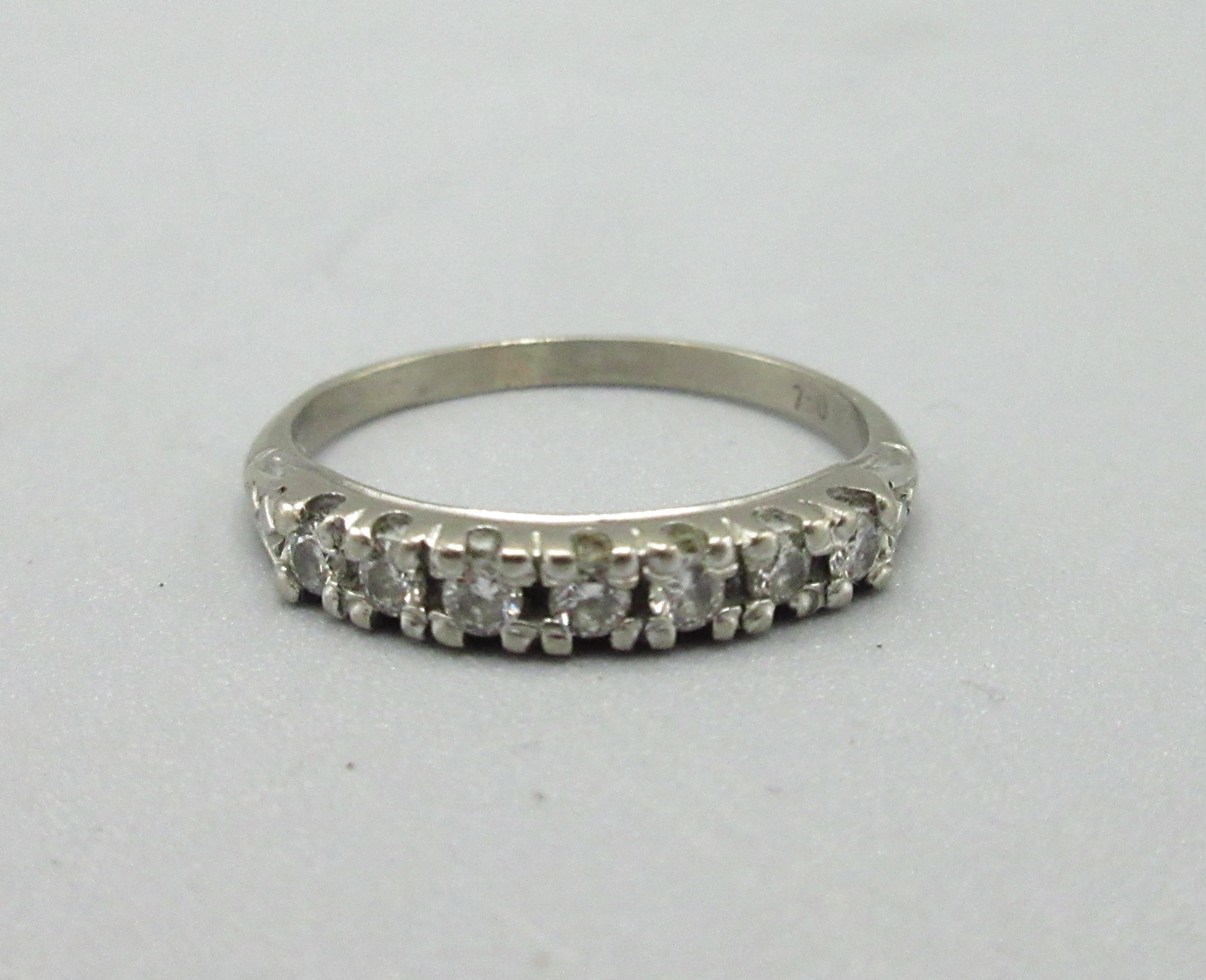 18ct white gold half eternity ring set with diamonds, stamped 750, size L, 2.2g