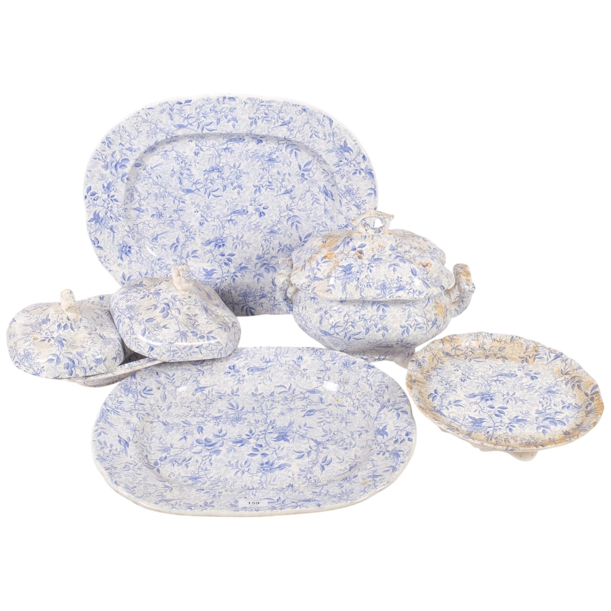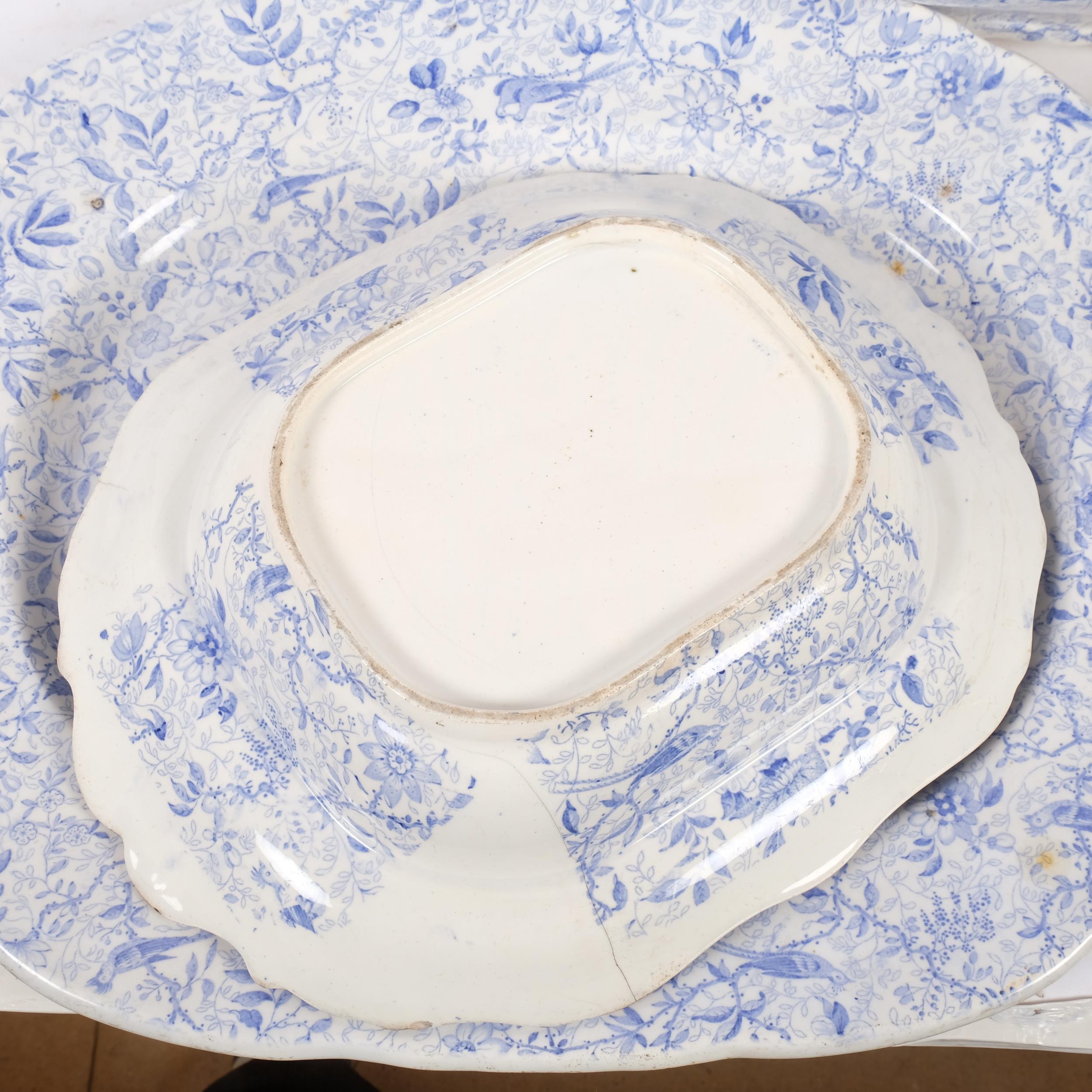 A group of 19th century Burleigh blue and white transfer decorated dinnerware, including pair of large meat platters