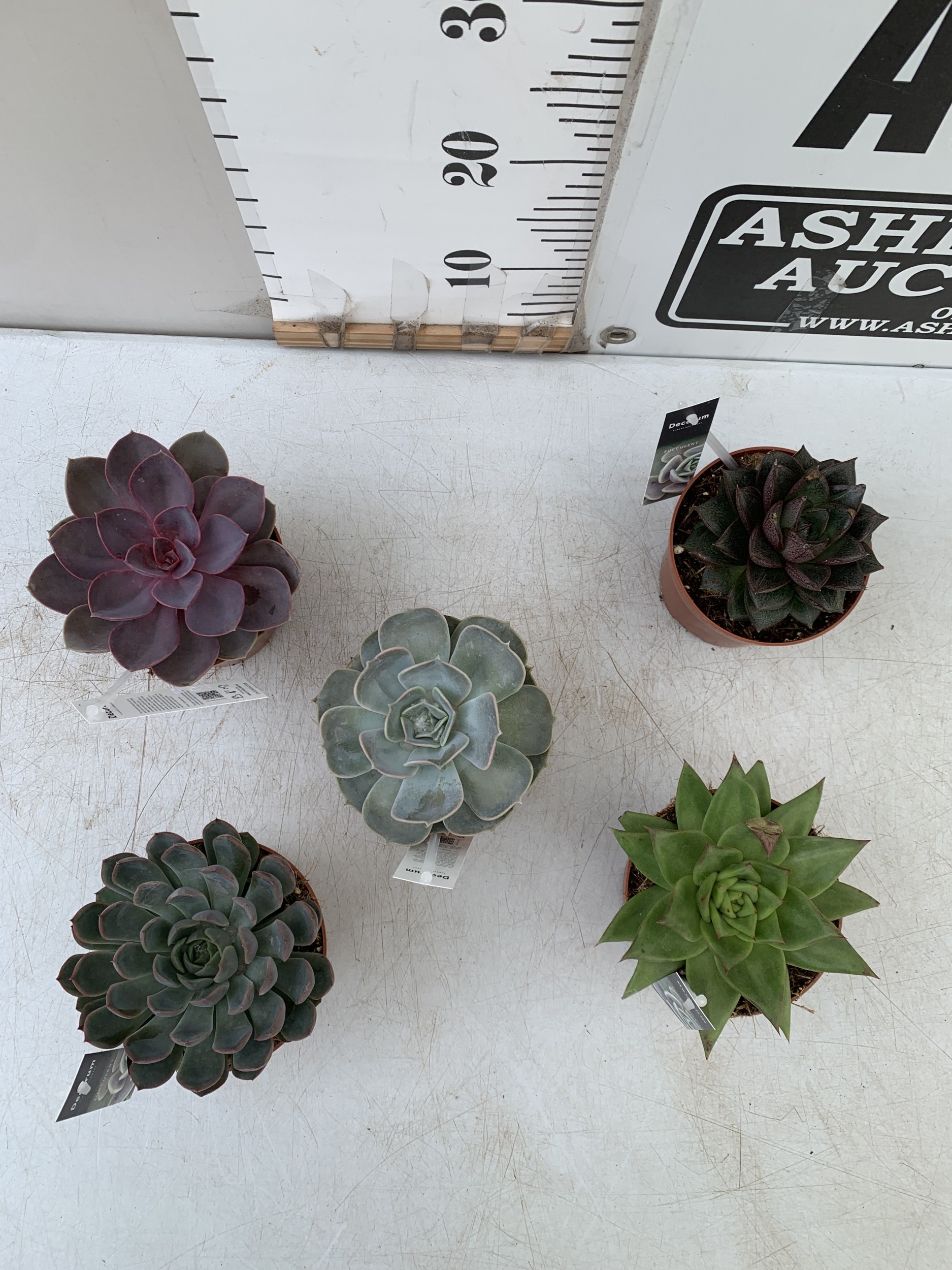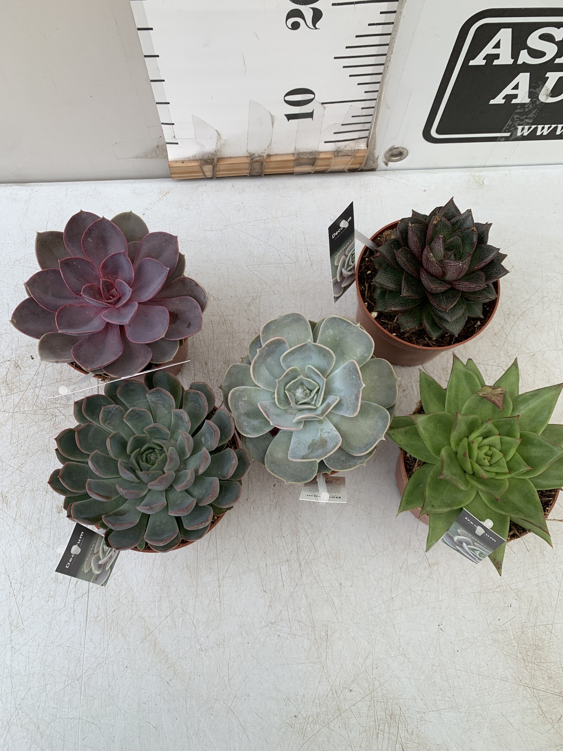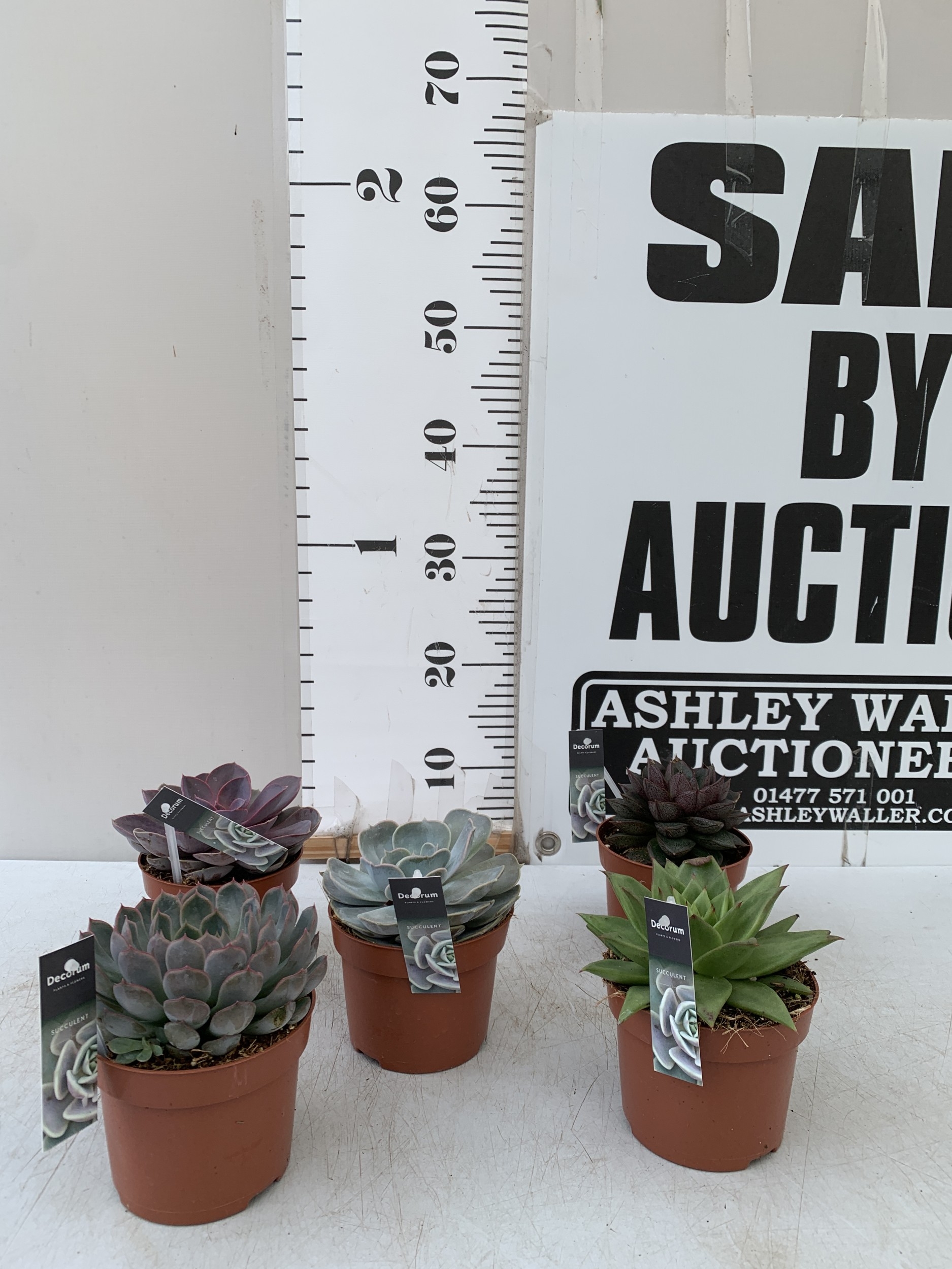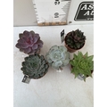 FIVE VARIETIES OF ECHEVERIA SUCCULENTS IN 0.75 LTR POTS. BETWEEN 10-20CM TALL, TO BE SOLD FOR THE FIVE