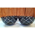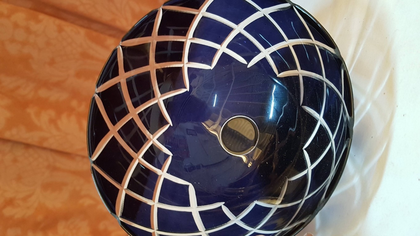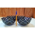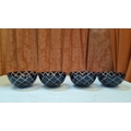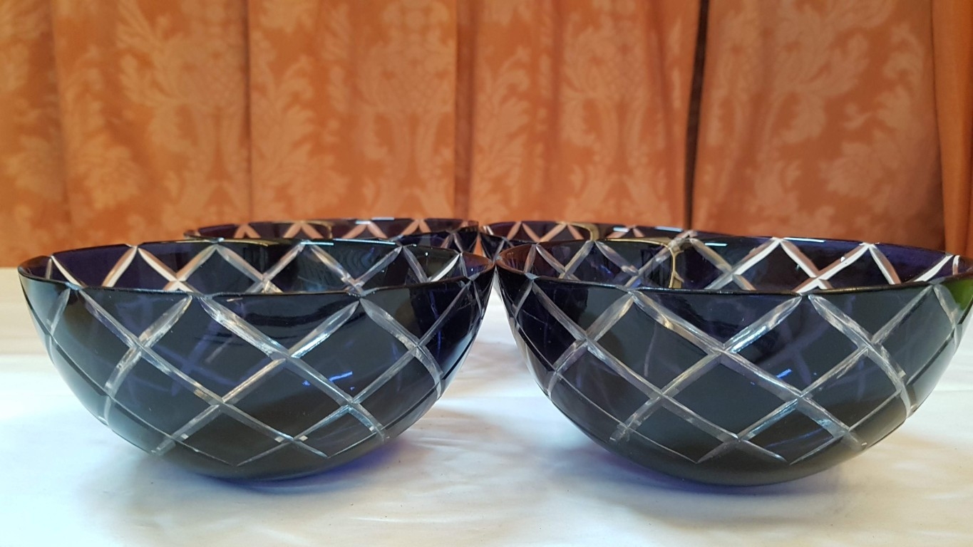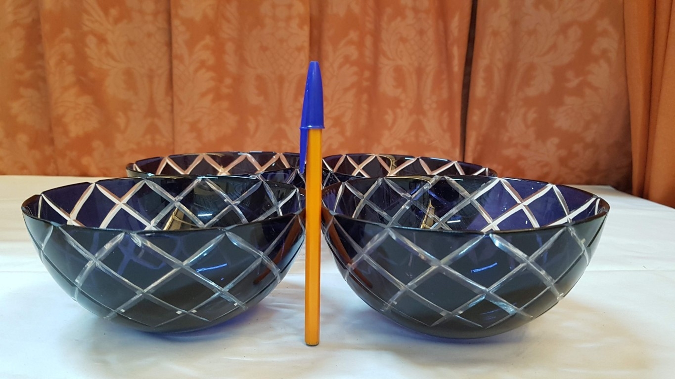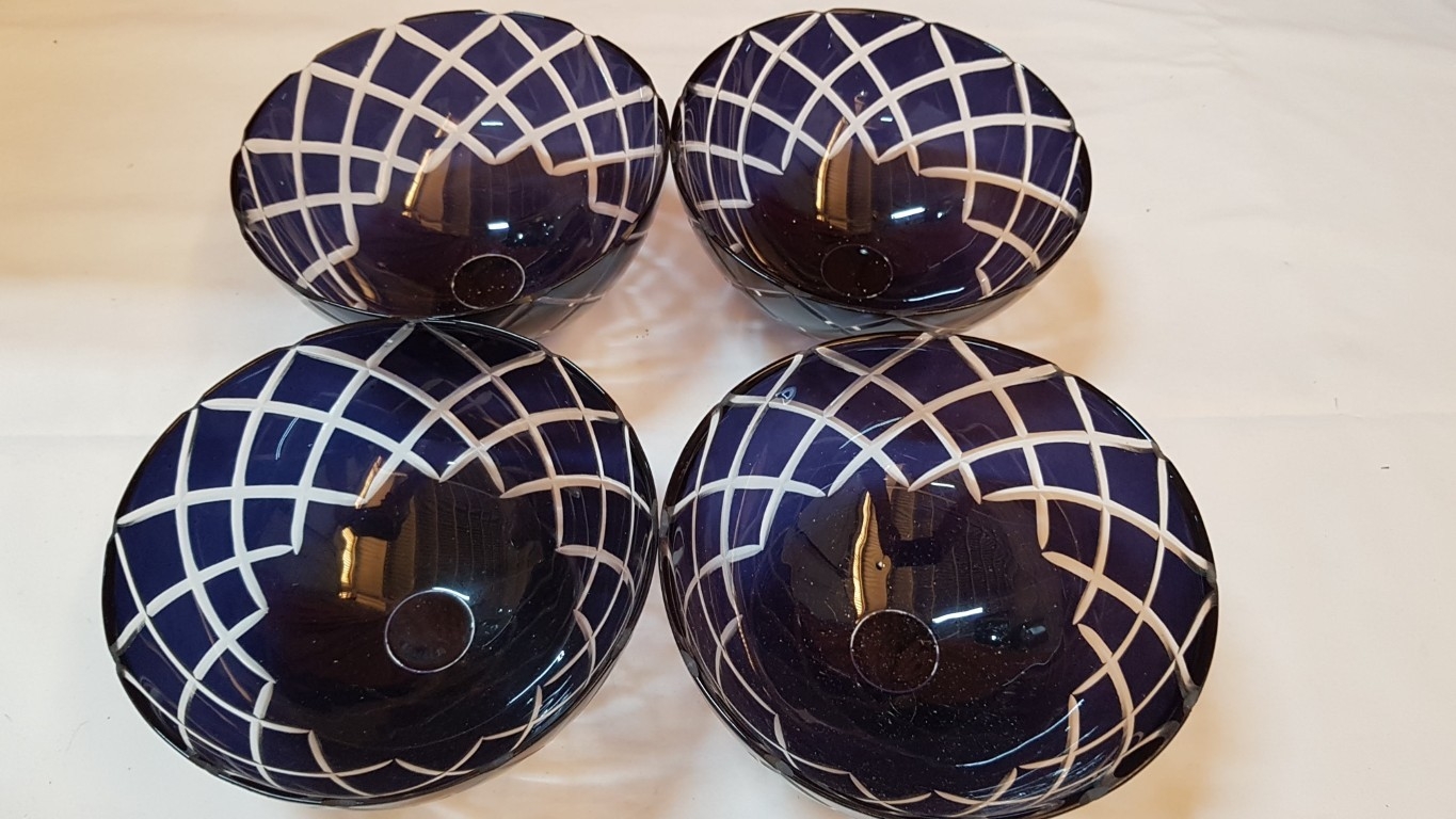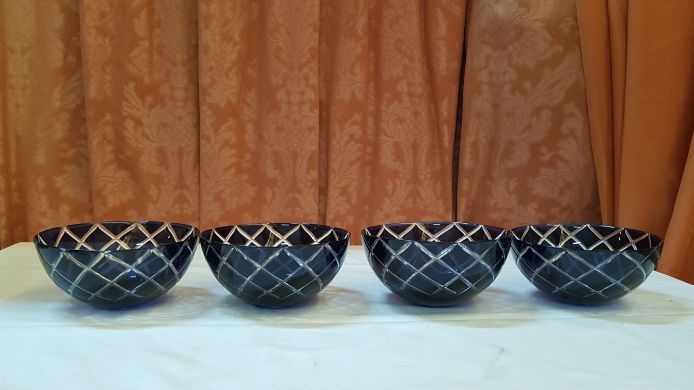 4 x Navy Blue Crystal Cut Bowls, 'Diamond Pattern', Approx. Ø: 15.5cm H: 7.5cm Each. (4)