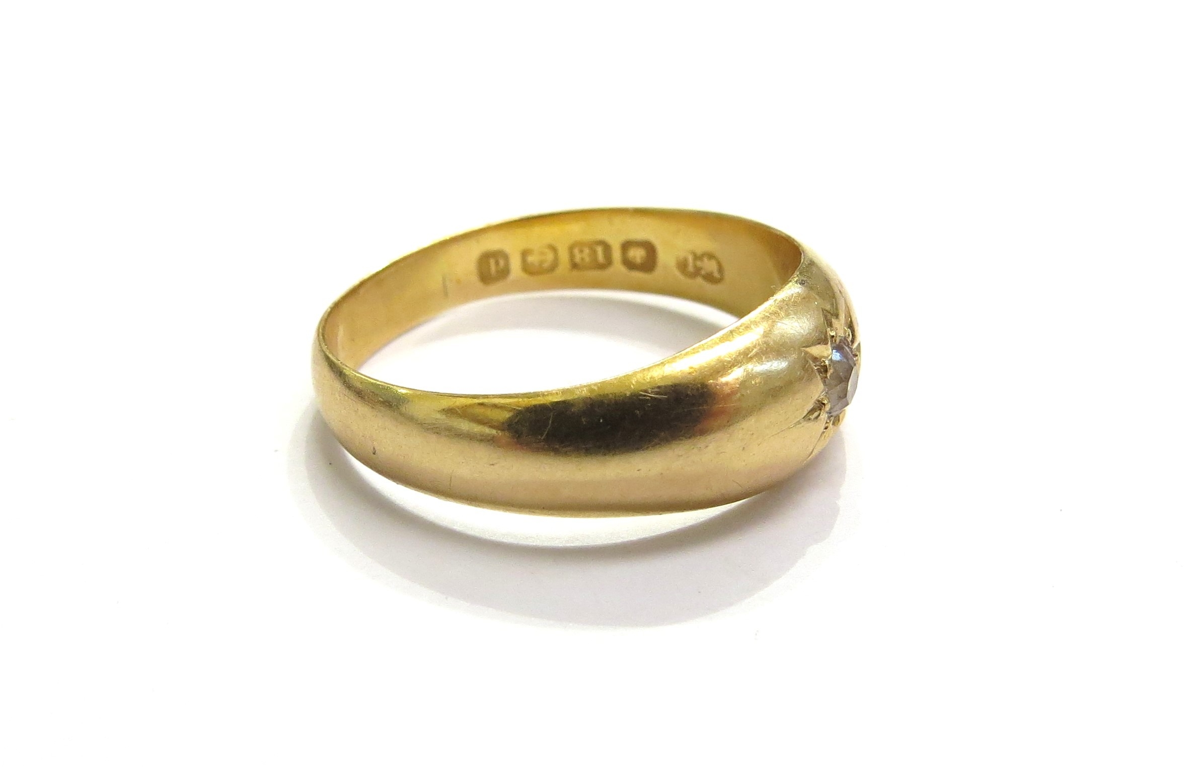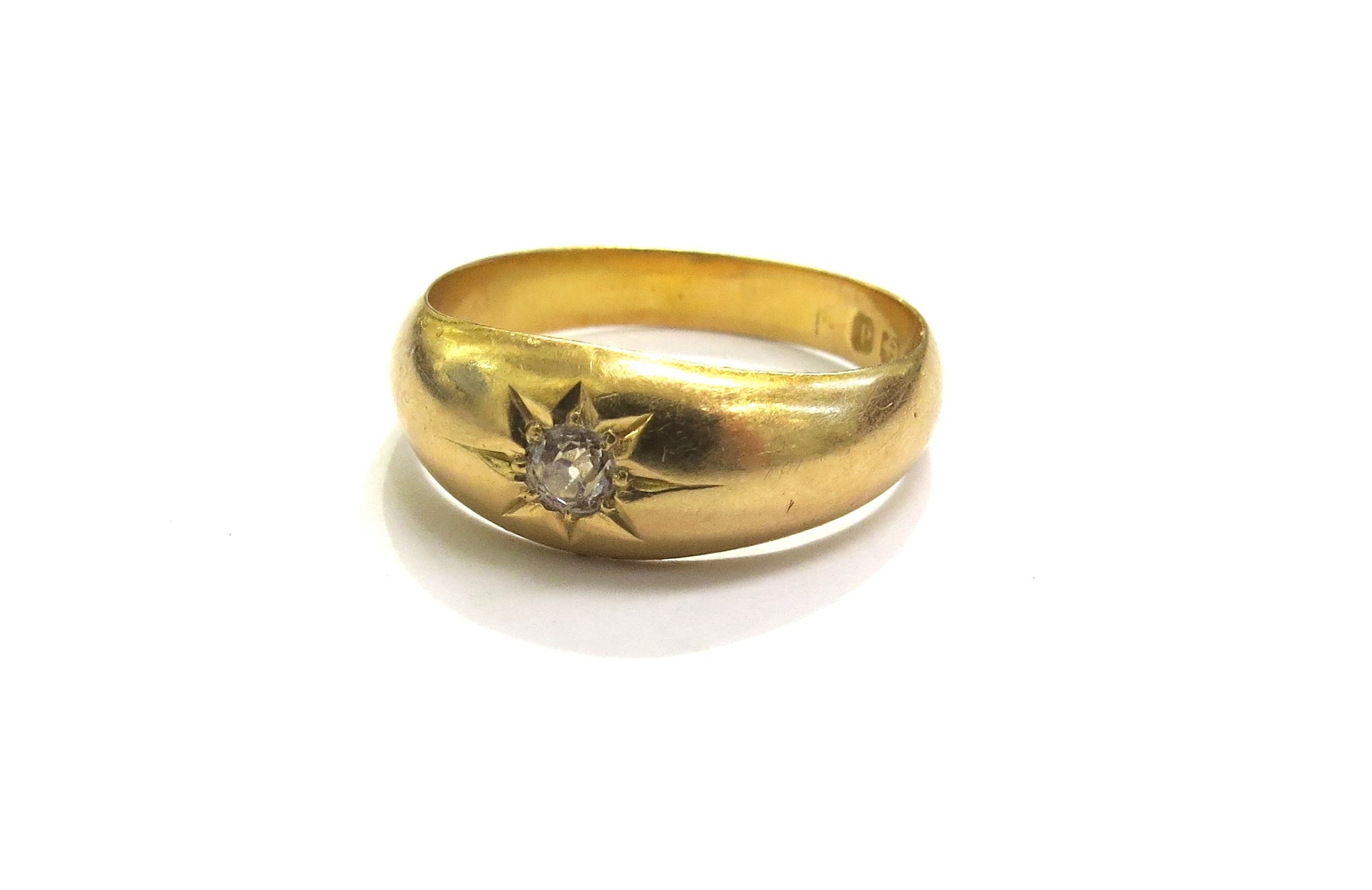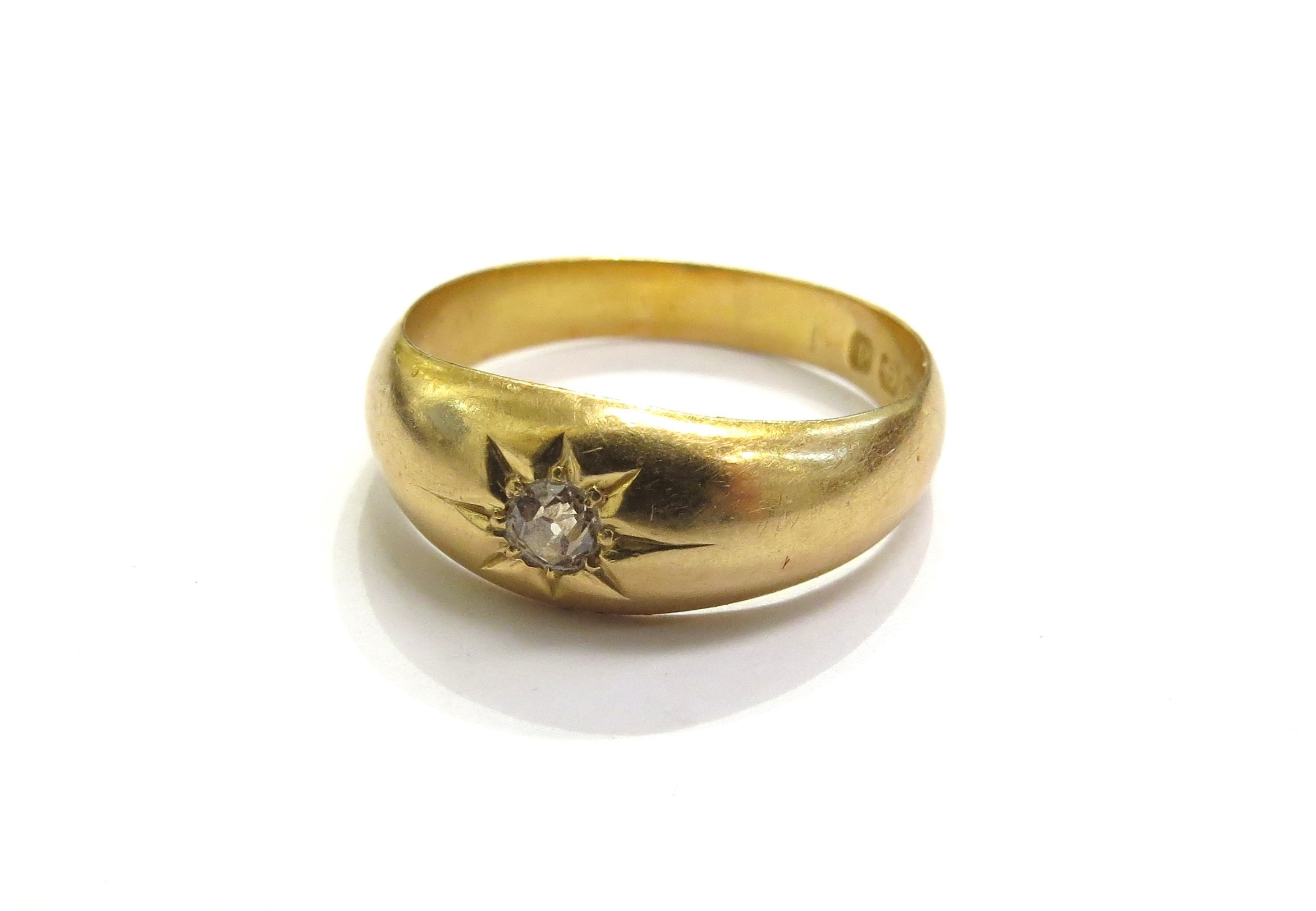 An 18ct gold ring set with a single diamond 0.10ct approx in star setting. Size U/V, 3.6g