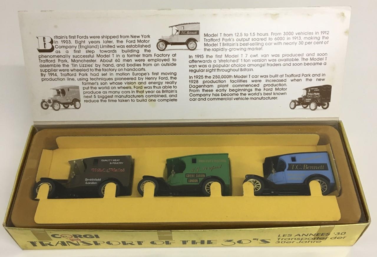 Corgi transport of the 30's Set (French Markets). Includes 3 Model T Ford vans.