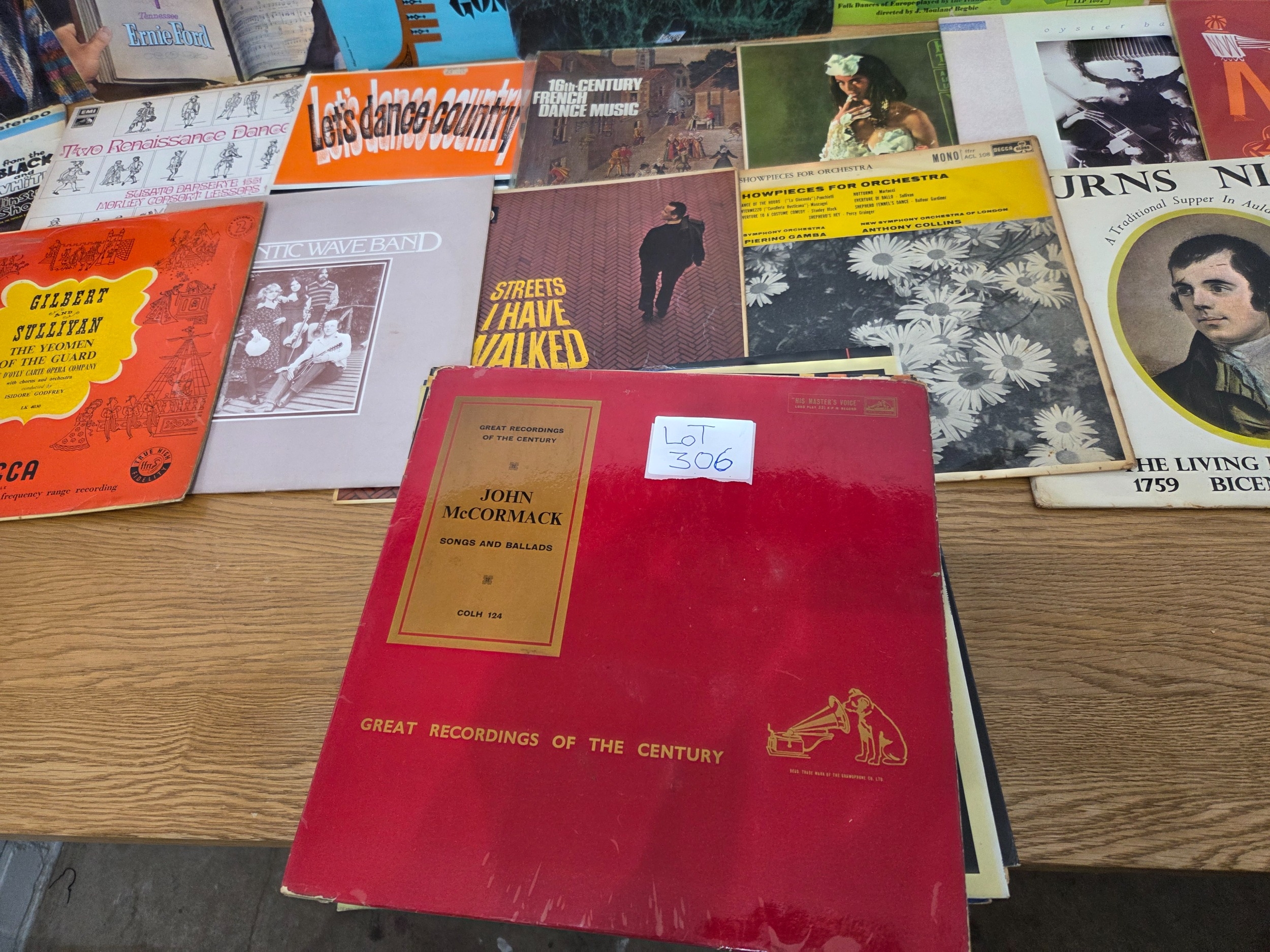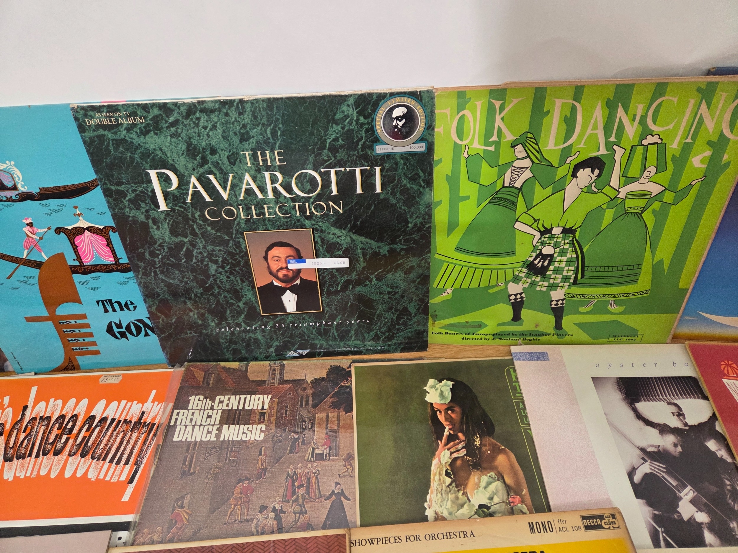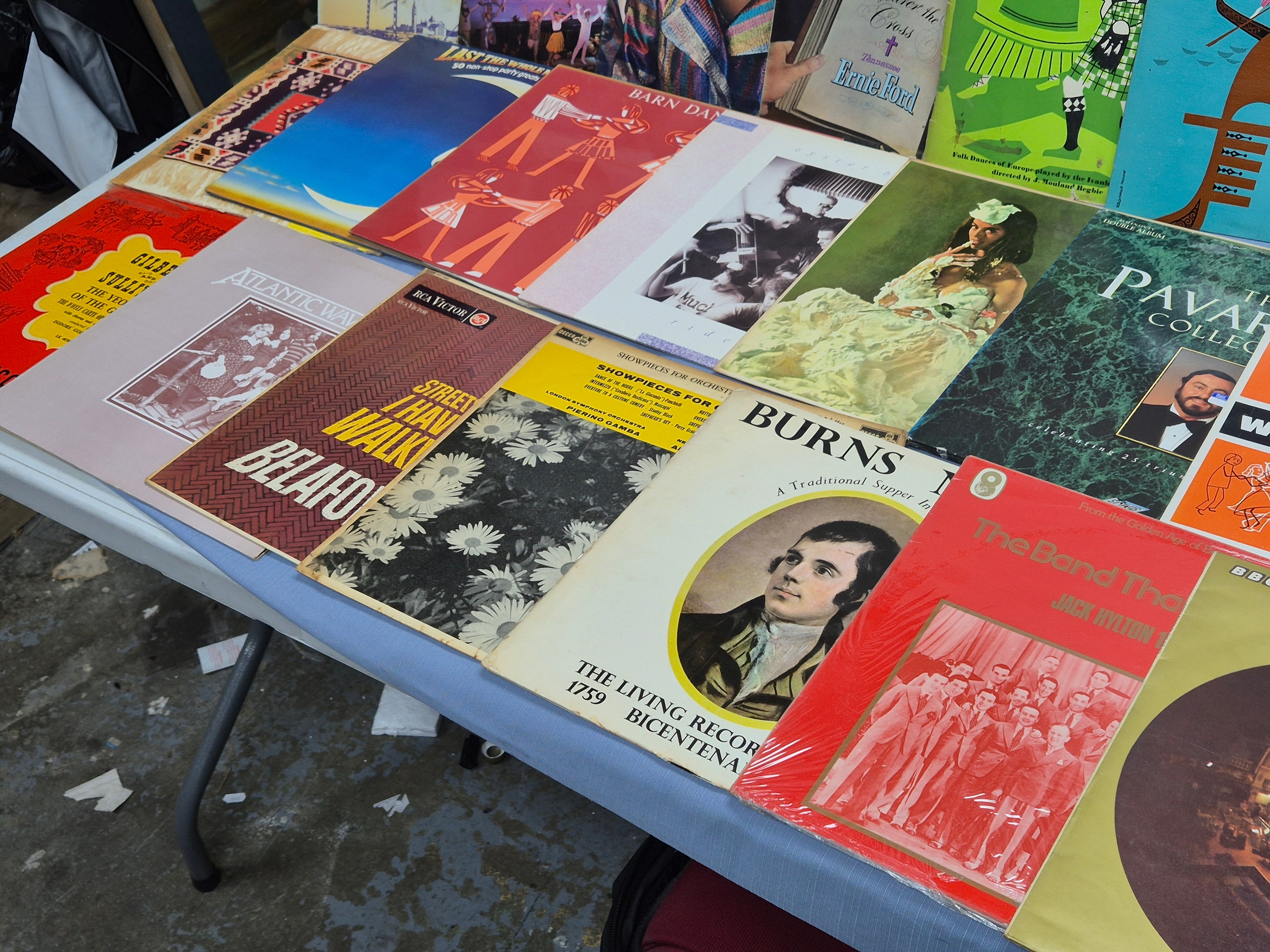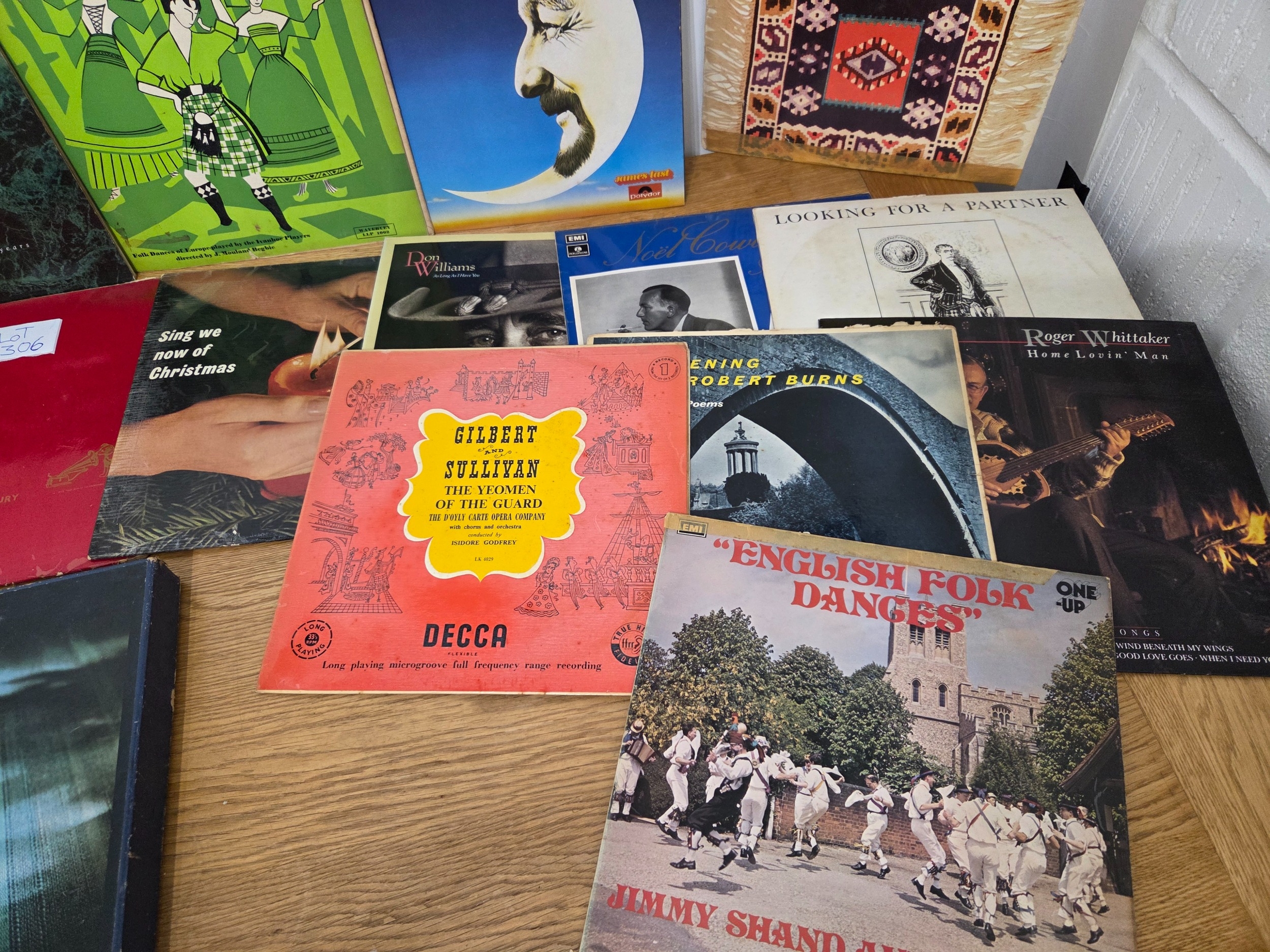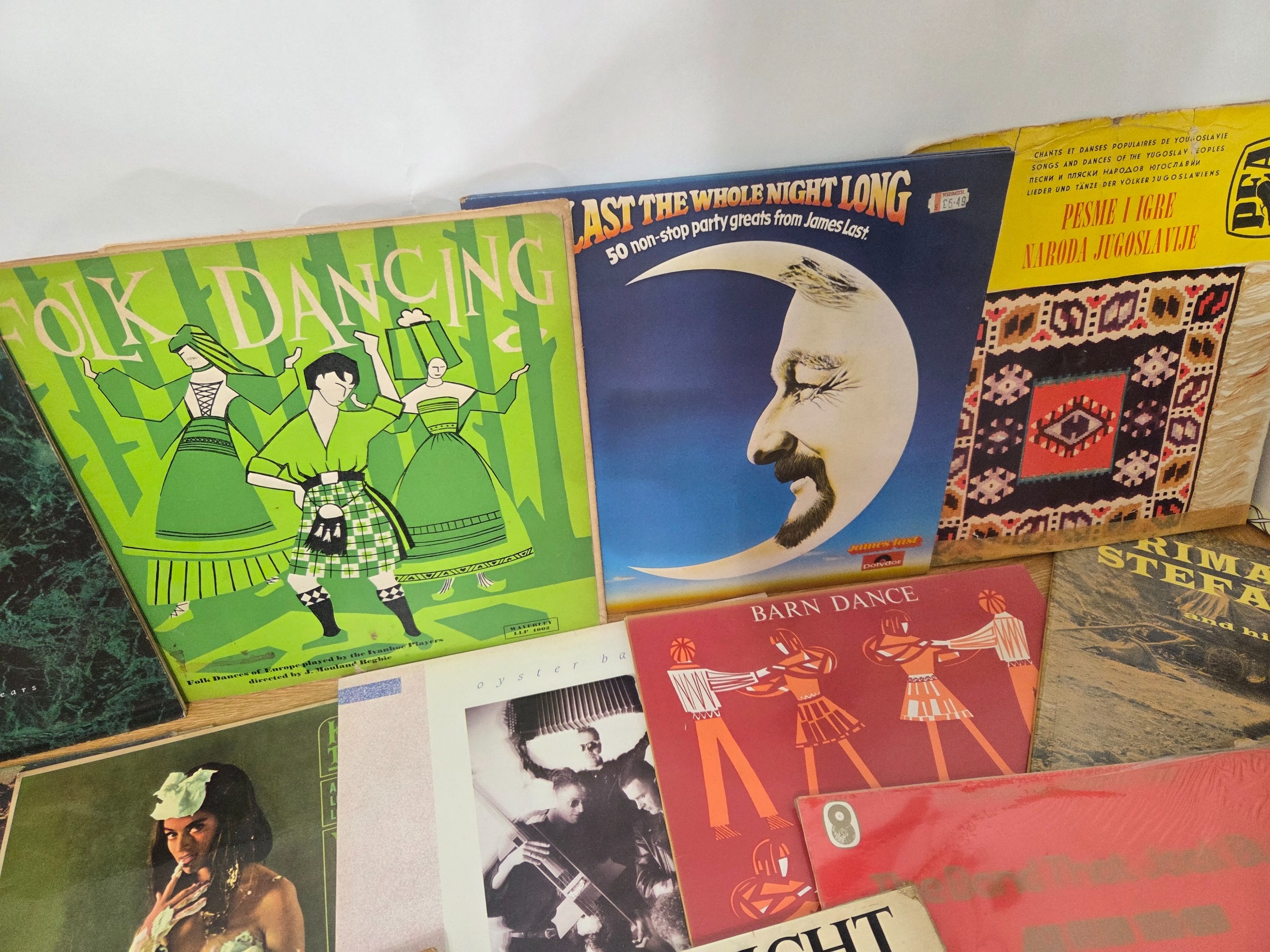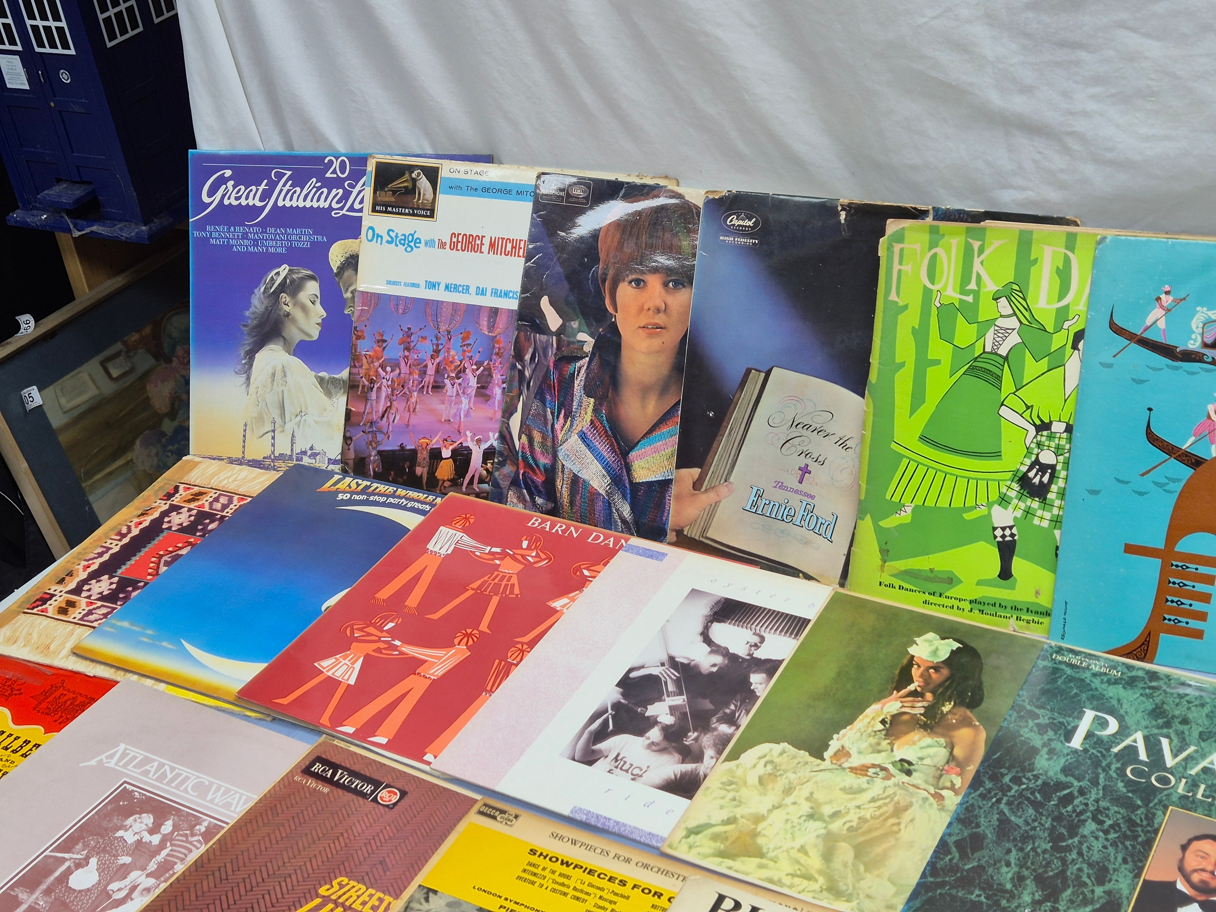 Collection of vinyl records including Kenny Rogers, Primas Stefan, and various folk music albums.