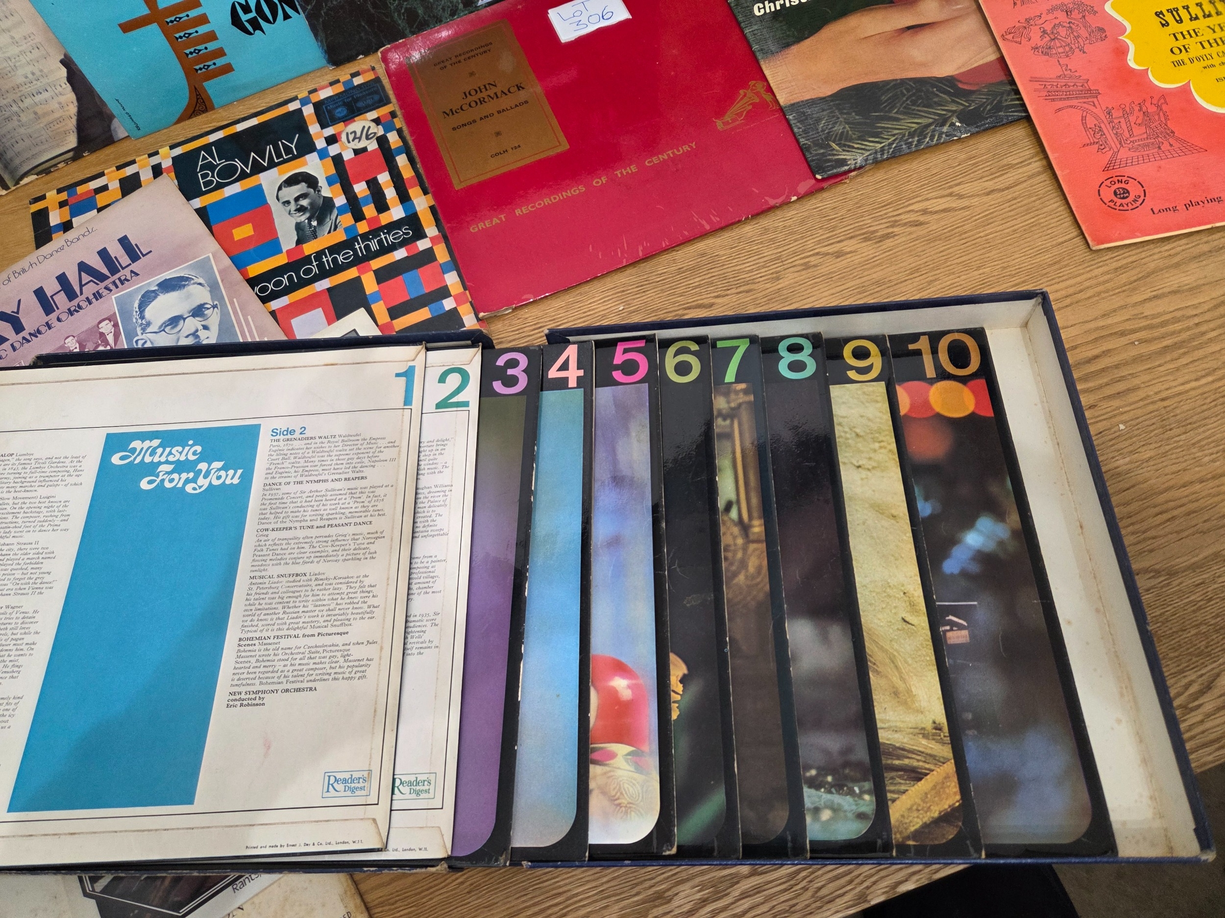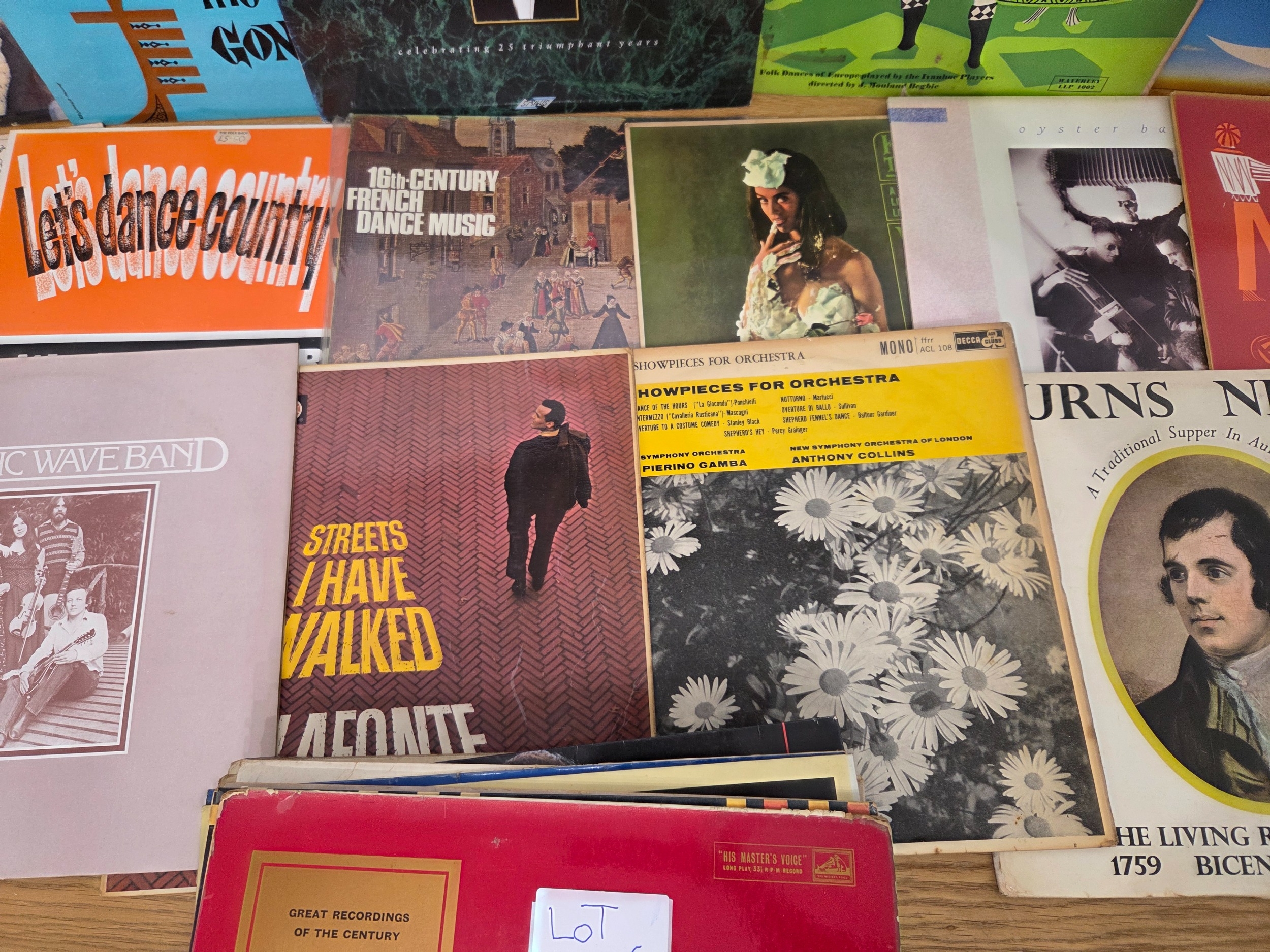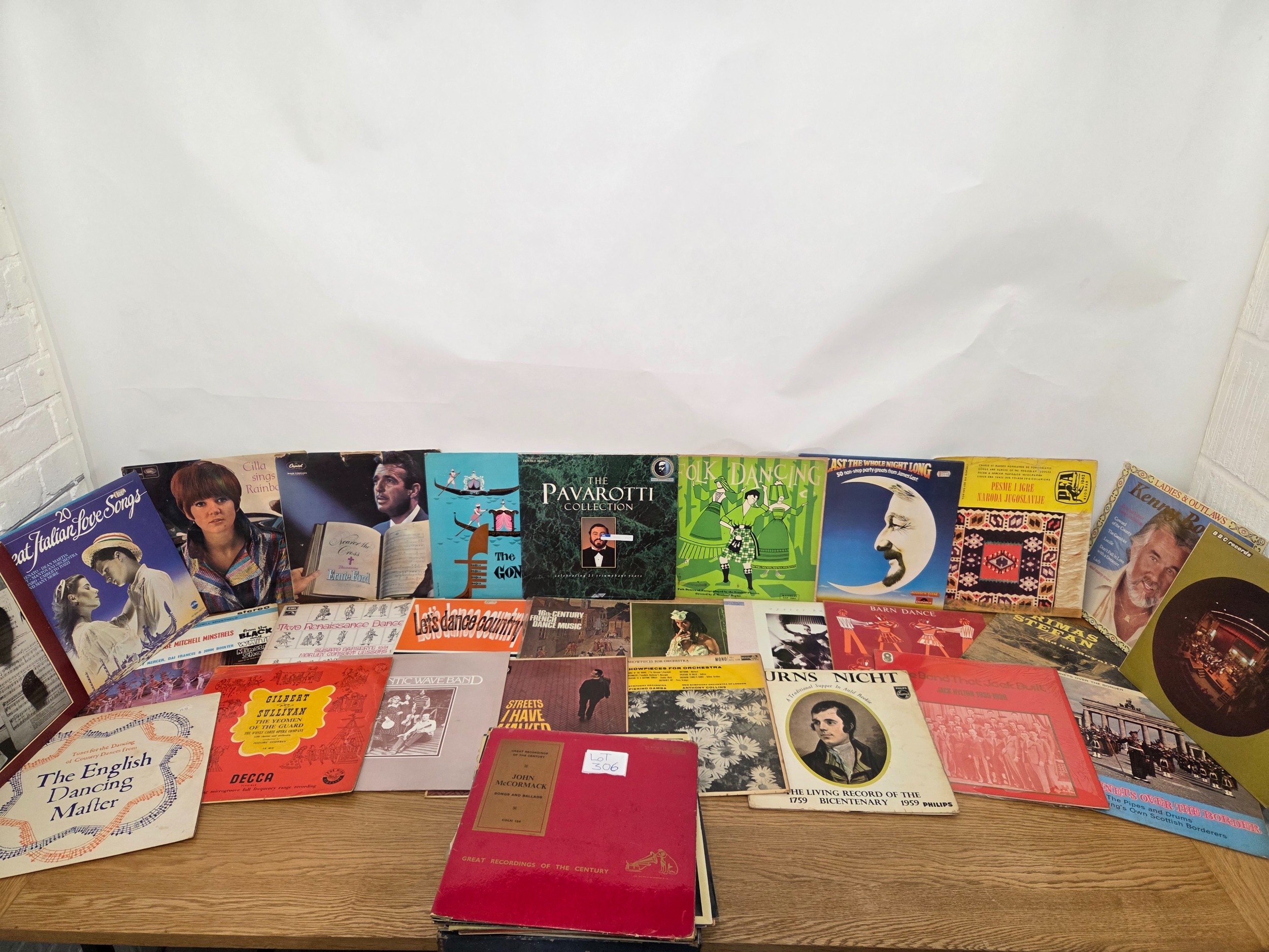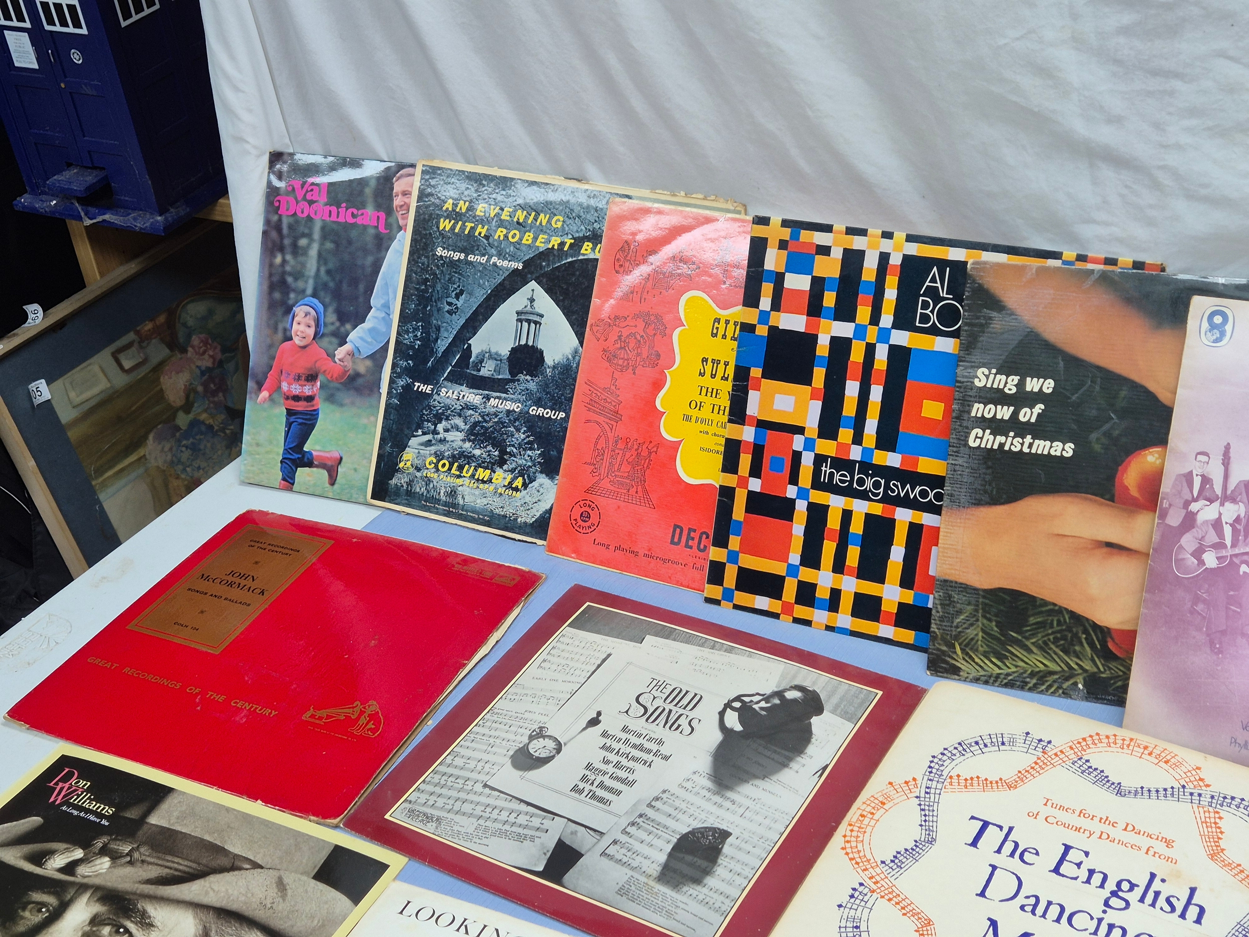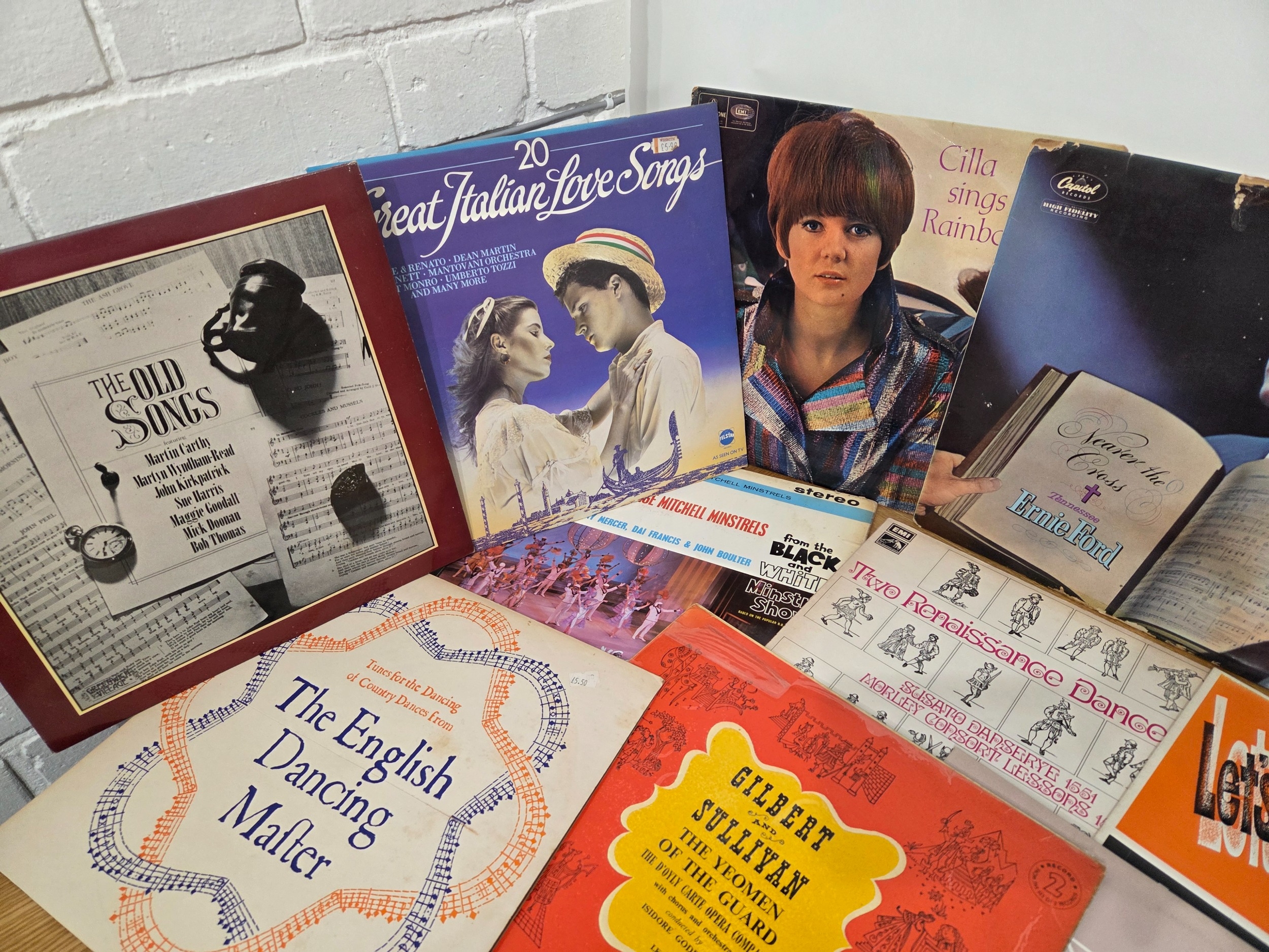 Collection of vinyl records including Kenny Rogers, Primas Stefan, and various folk music albums.