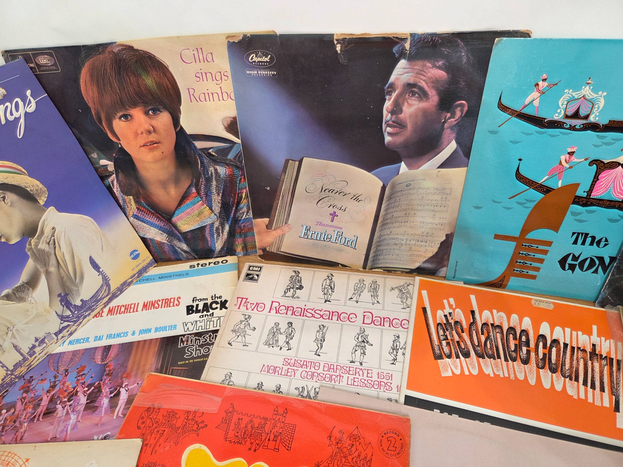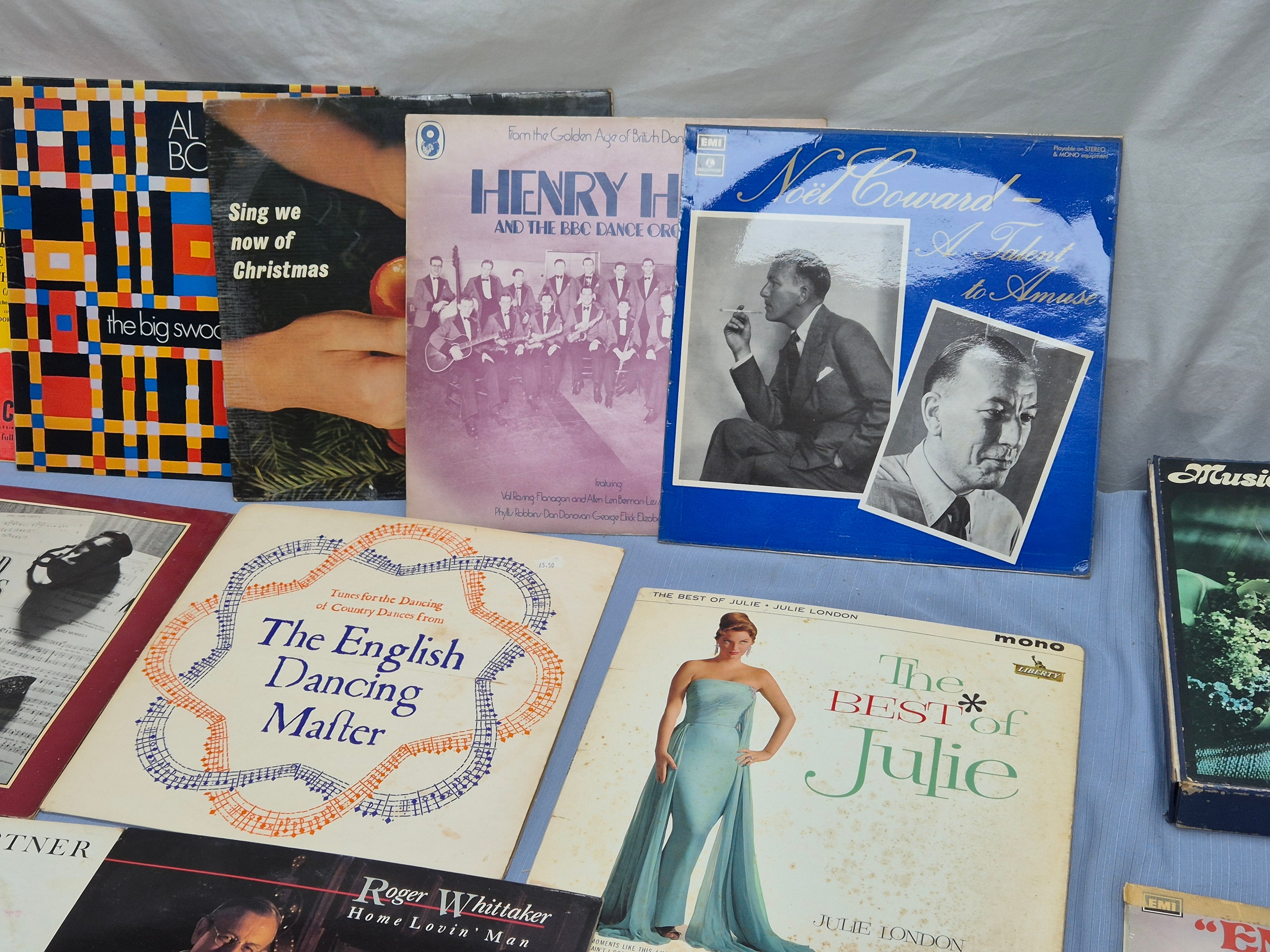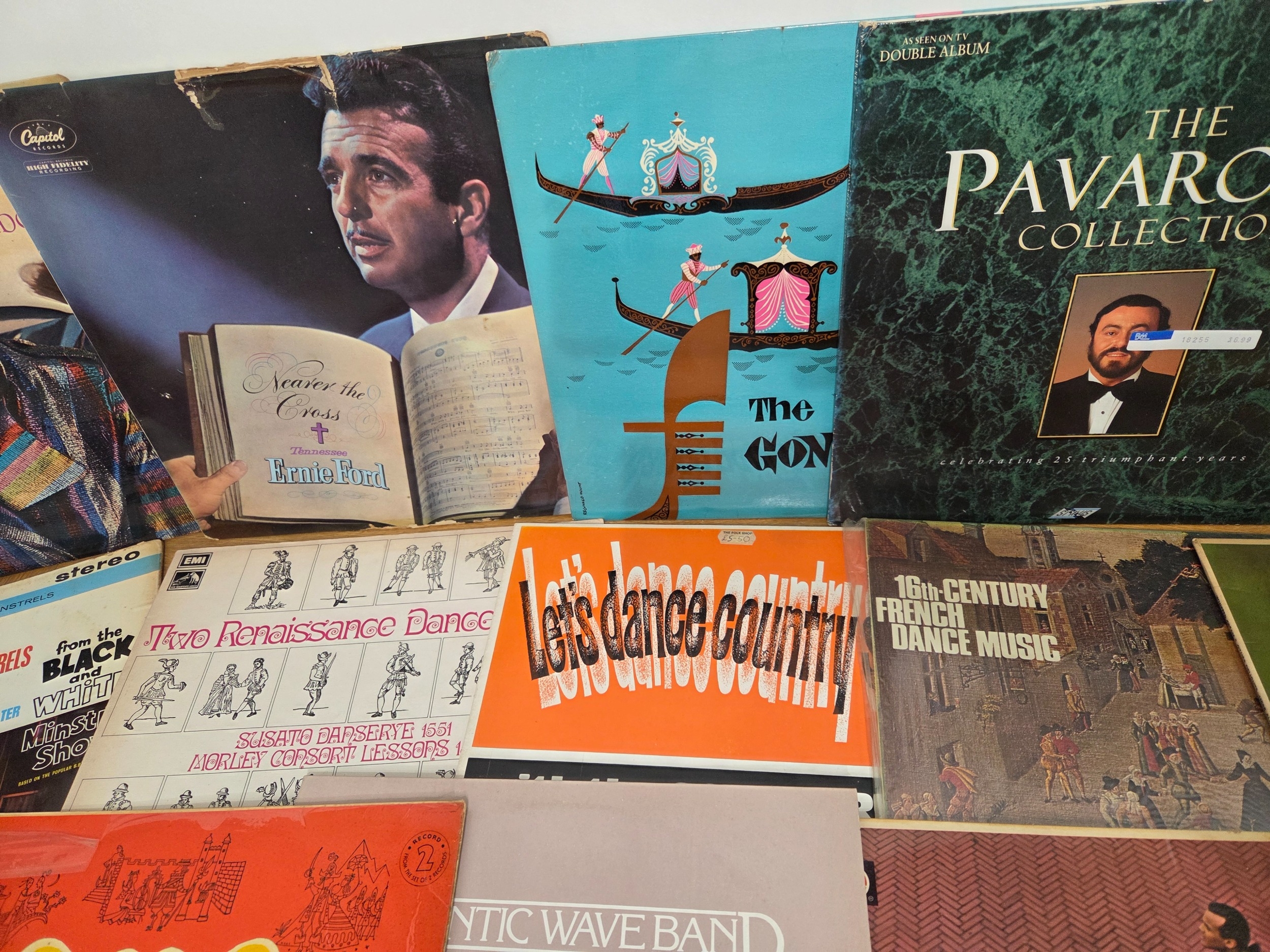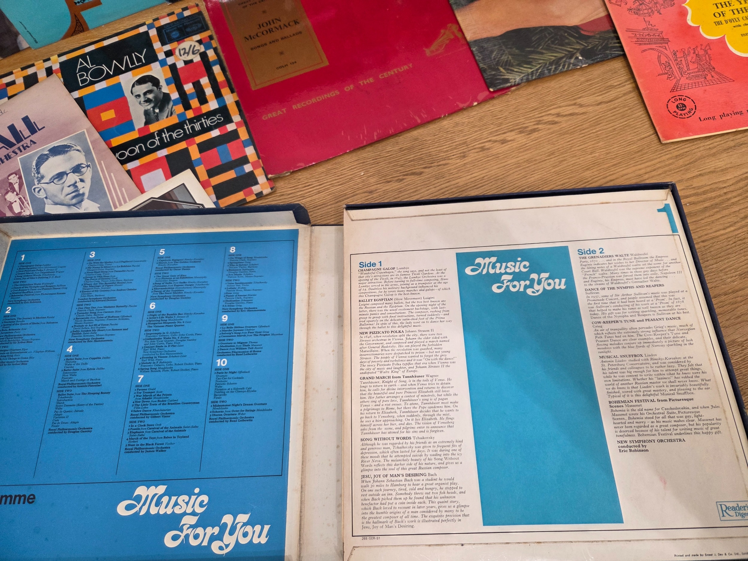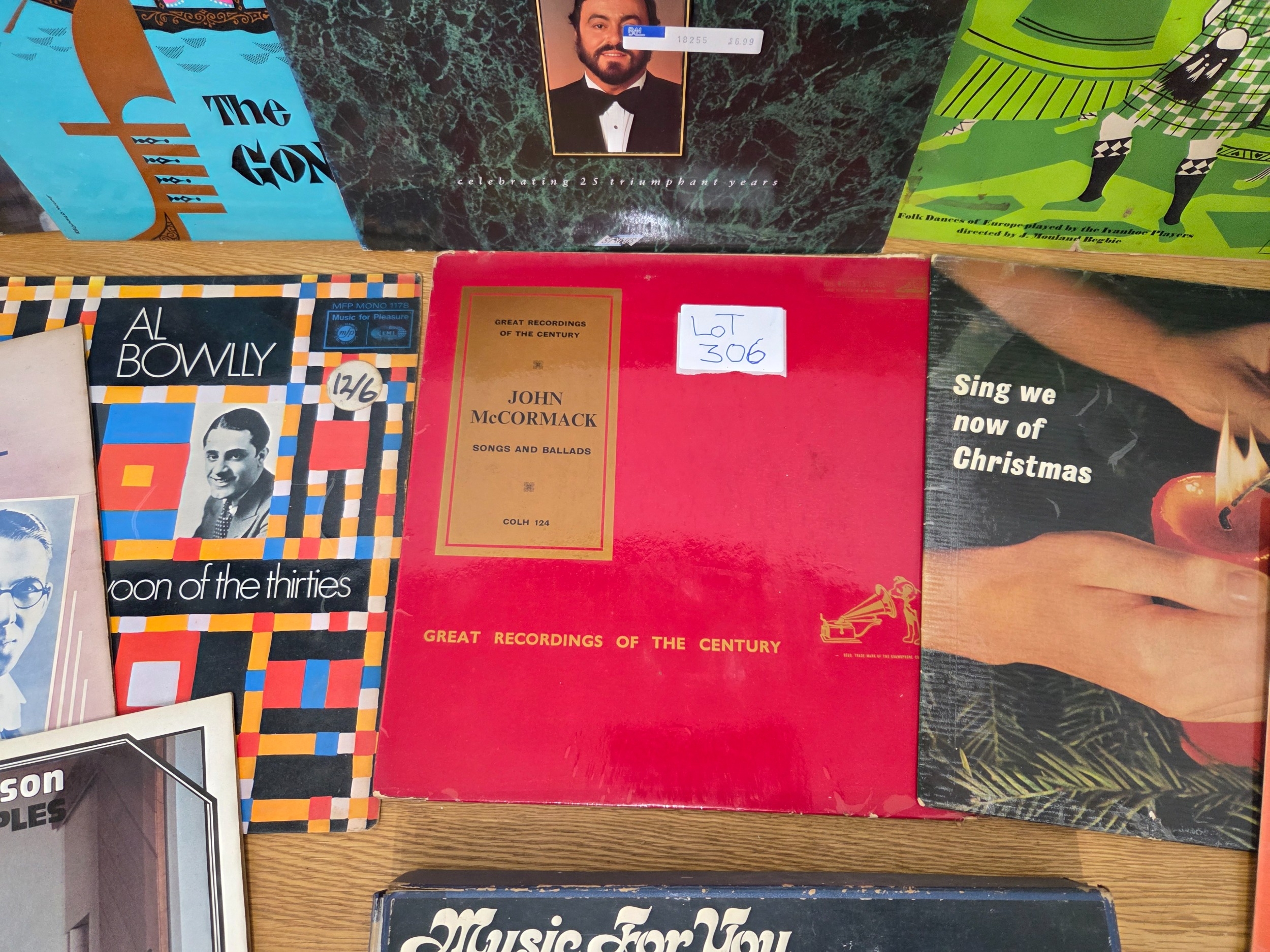 Collection of vinyl records including Kenny Rogers, Primas Stefan, and various folk music albums.
