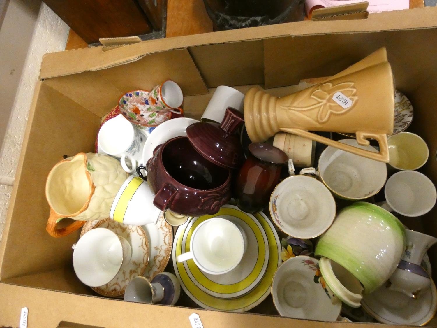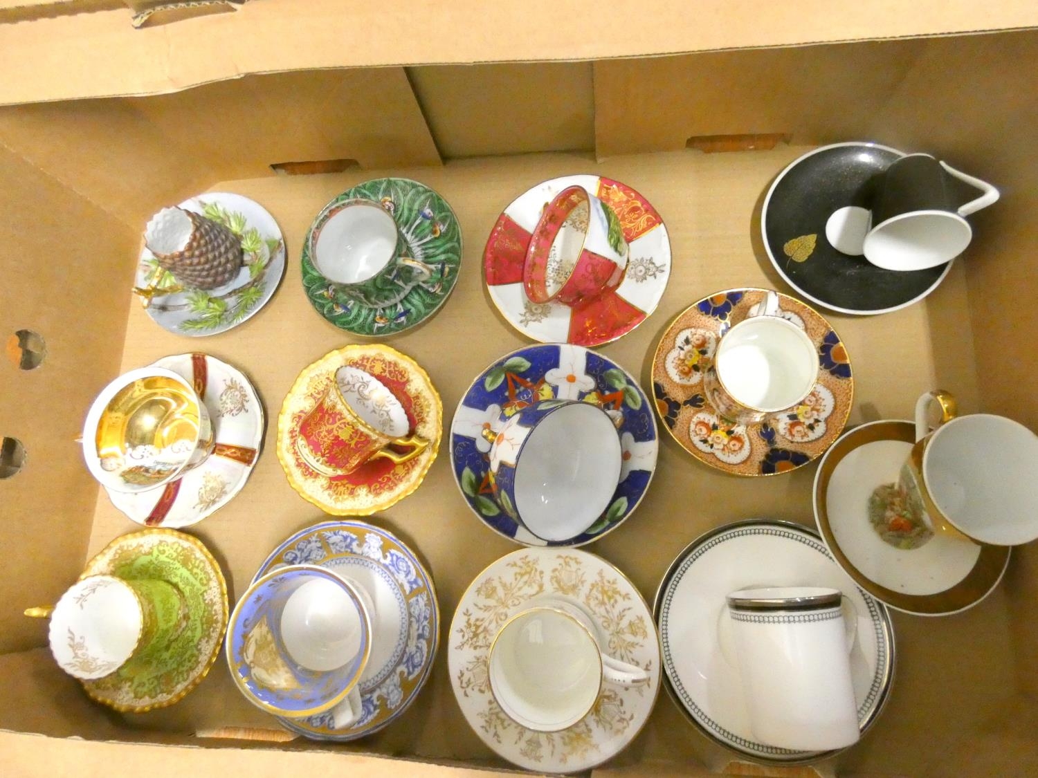 Two boxes of various teaware and cabinet cups.