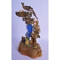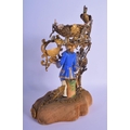 A RARE EARLY 19TH CENTURY FRENCH PARIS PORCELAIN AND GILT METAL FIGURE modelled as a male holding a pin cushion, fob watch holder etc. 30 cm x 15 cm.