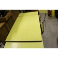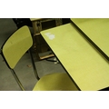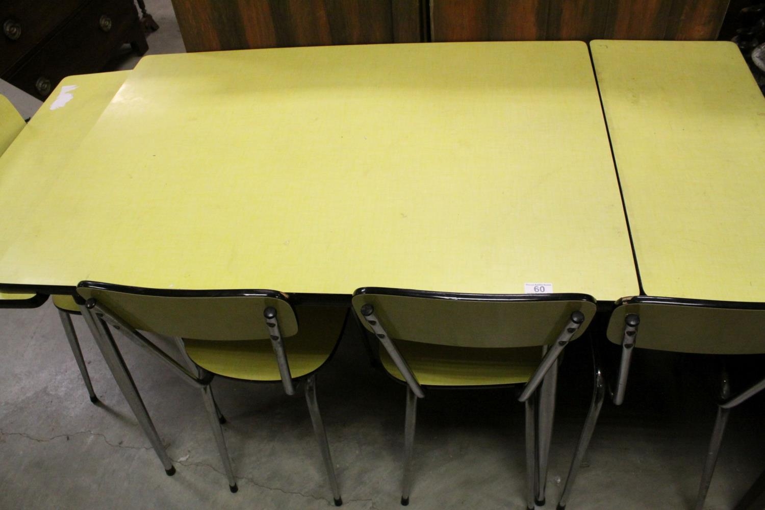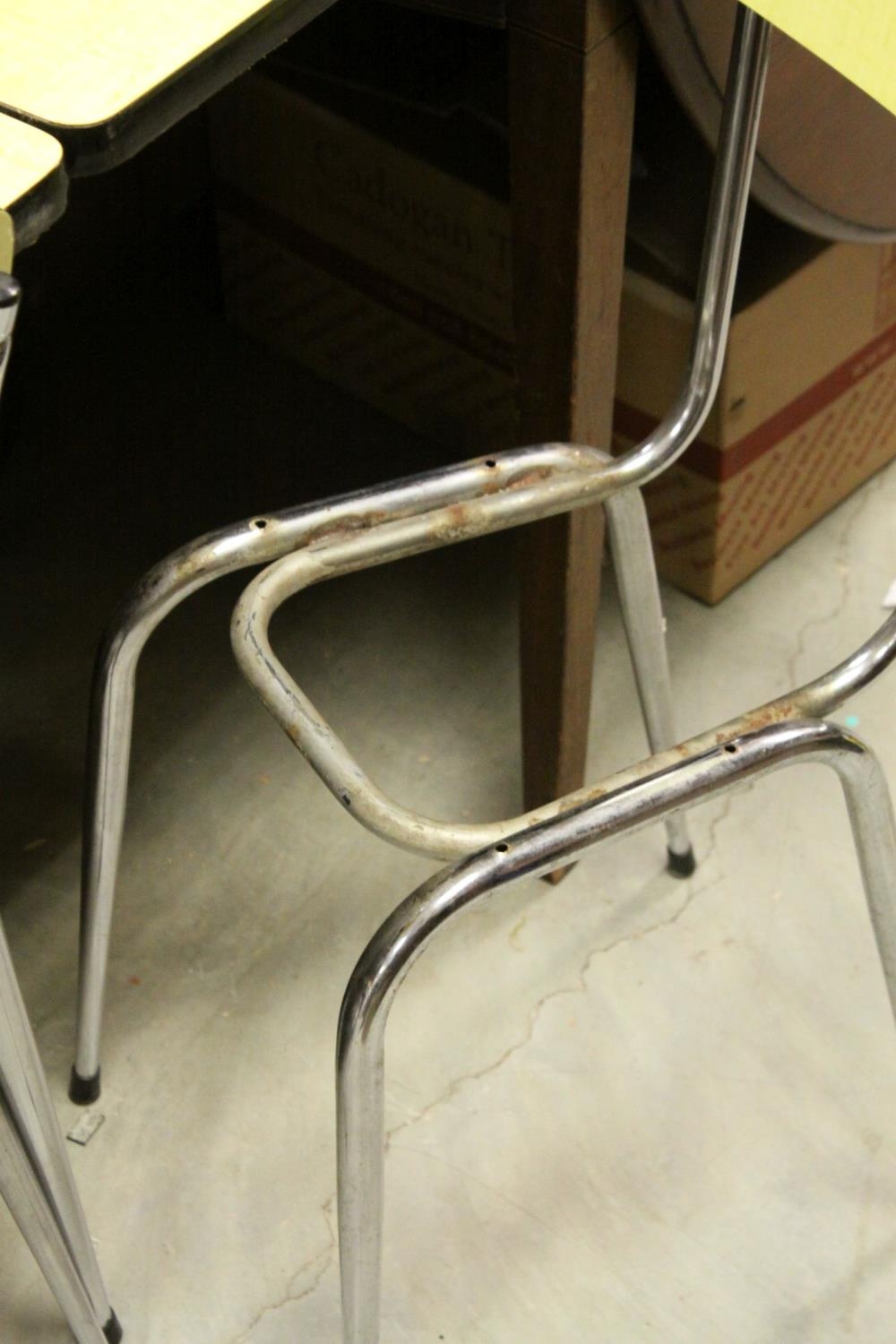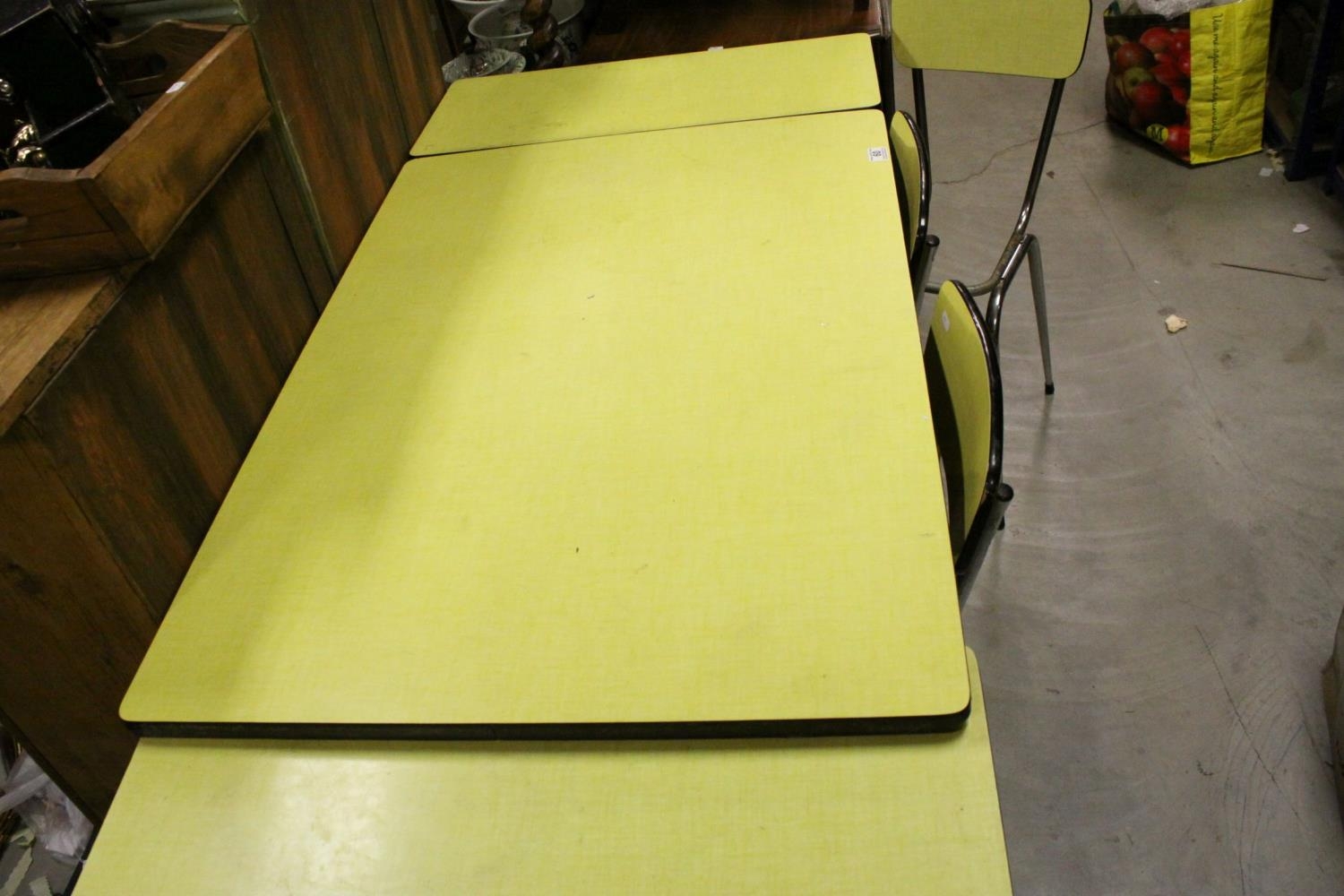 Mid 20th century Retro Draw-Leaf Kitchen Table with Yellow Formica Top and Tubular Chrome Supports (drawer fitted to one leaf), extended length 151cms together with a matching set of Four Kitchen Chairs