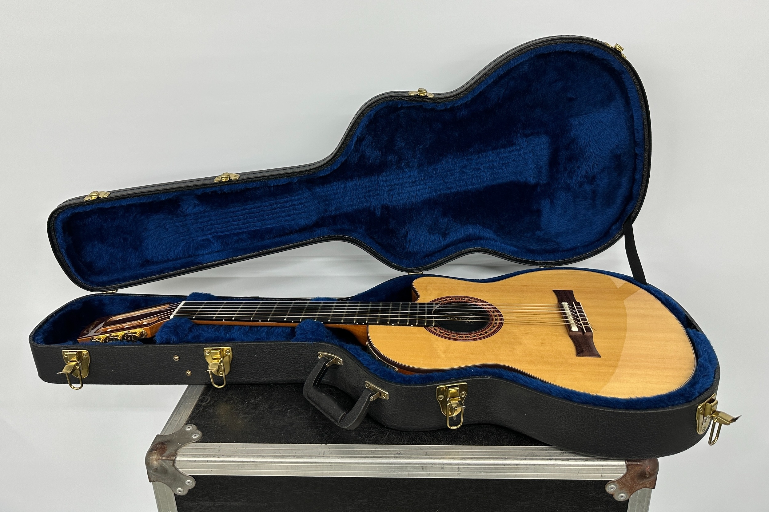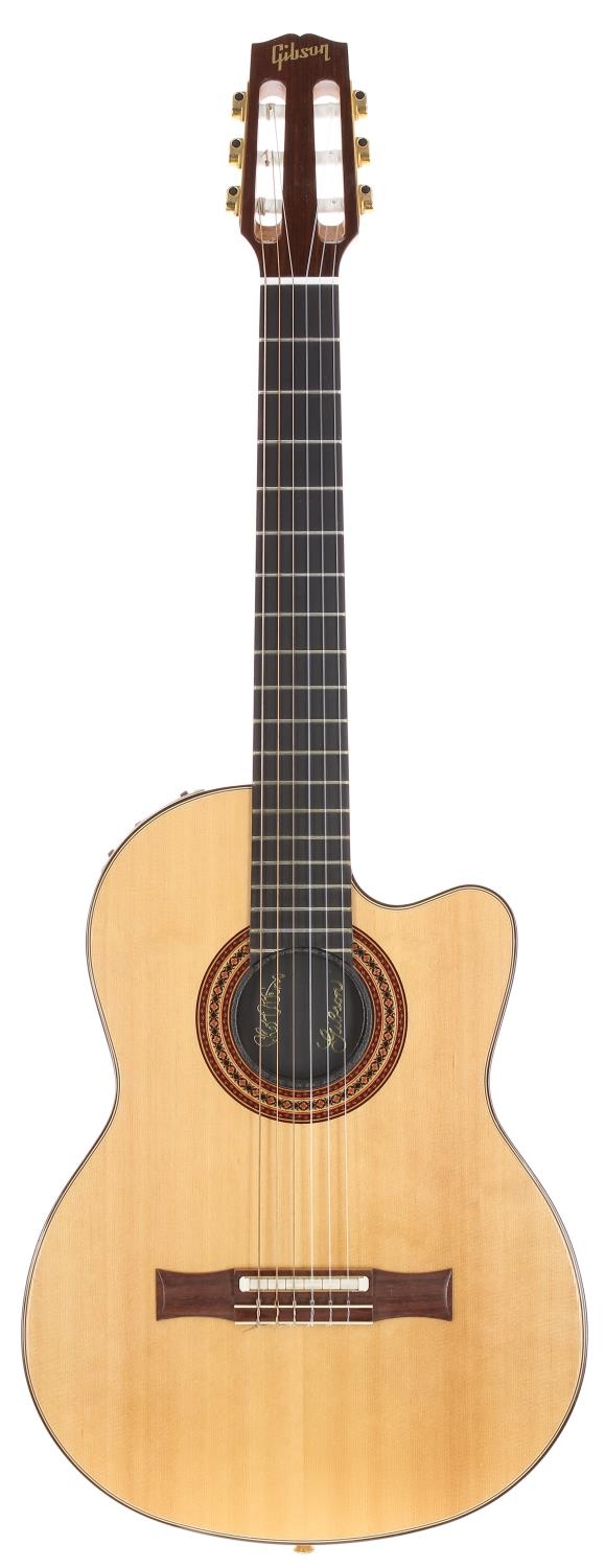 2005 Gibson Chet Atkins CEC nylon string electric guitar, made in USA; Body: spruce top upon mahogany back; Neck: mahogany; Fretboard: ebony; Frets: generally good, light tarnishing to upper frets; Electrics: working; Hardware: good; Case: original hard case; Weight: 4.15kg; Overall condition: very good