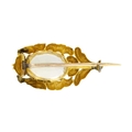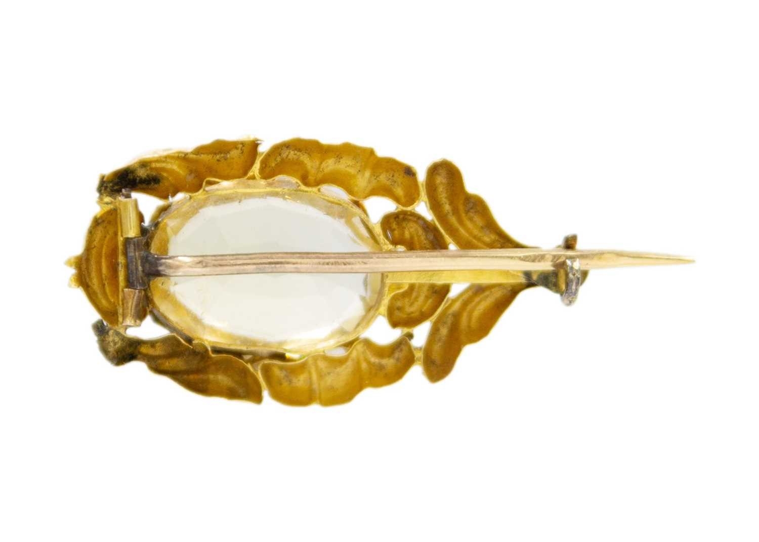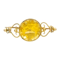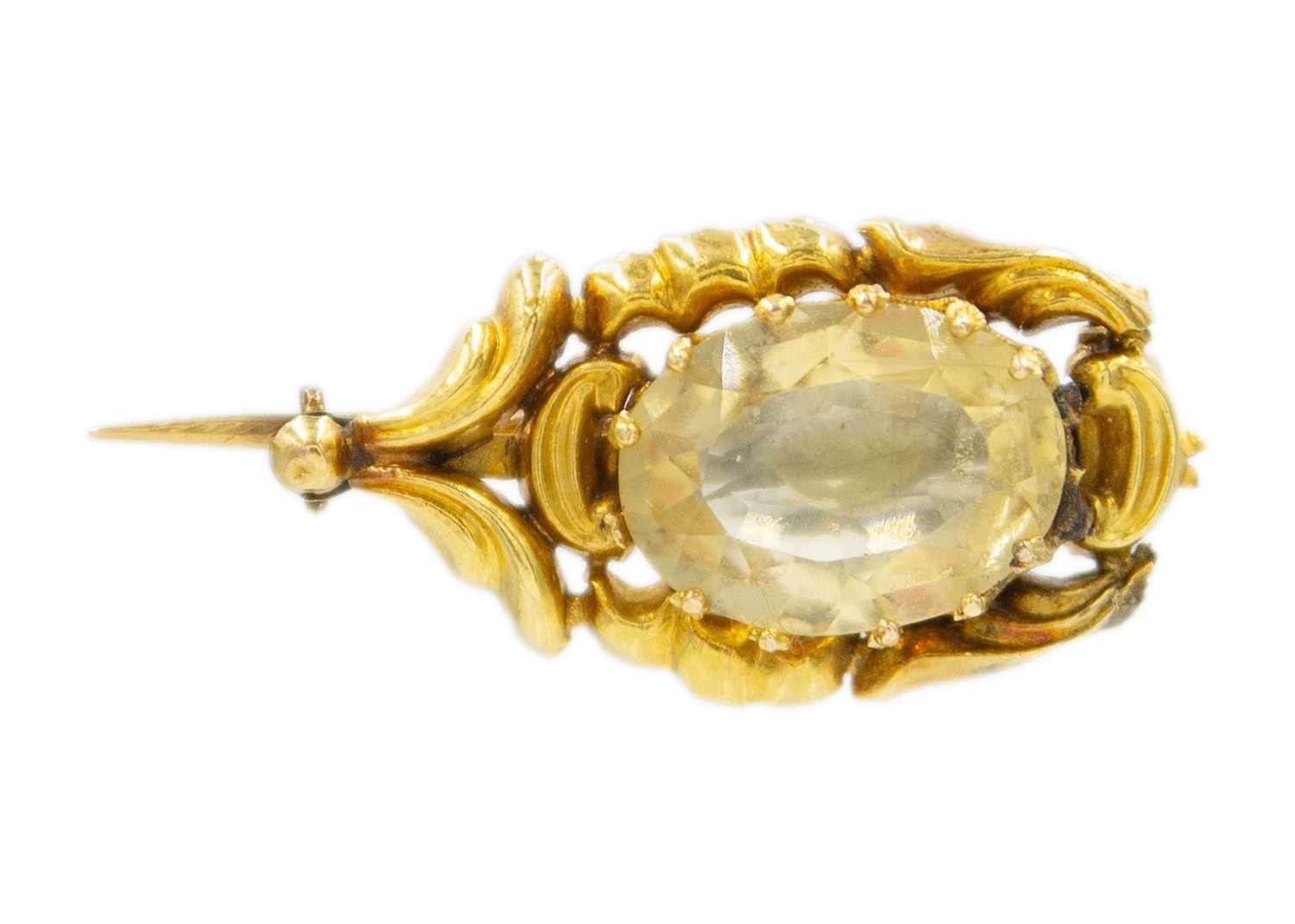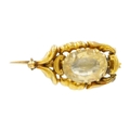 A Victorian high-purity citrine set brooch. Embossed decoration, height 2.7cm, width 1.4cm, the oval mixed-cut citrine is 13mm x 10mm, total weight 2.13g.