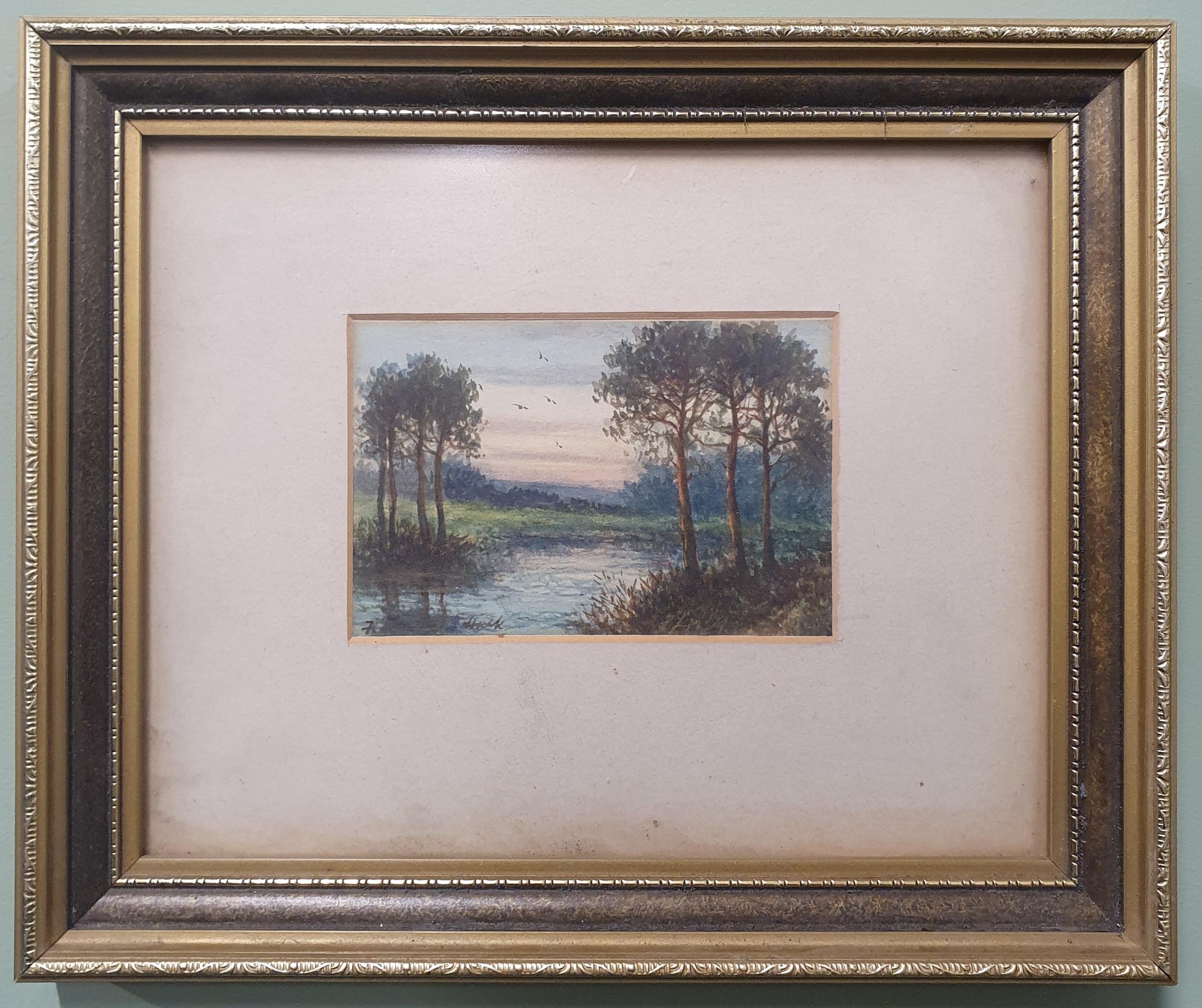 A 19th Century Watercolour of a lake scene with birds in flight. No apparent signature. H 10 x 16 cm approx.