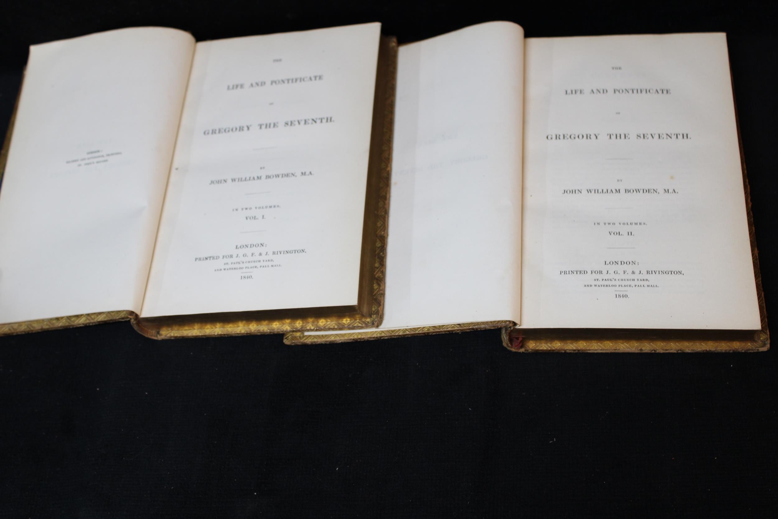 Life and Pontificate of Gregory 7th by J.W. Bowden 1st Ed 1841 In 2 Volumes "Complete" (Book-Plate For Townsend School, Kidderminster) School Prize: In Fine Gilt Lined Calf Binding "Good"