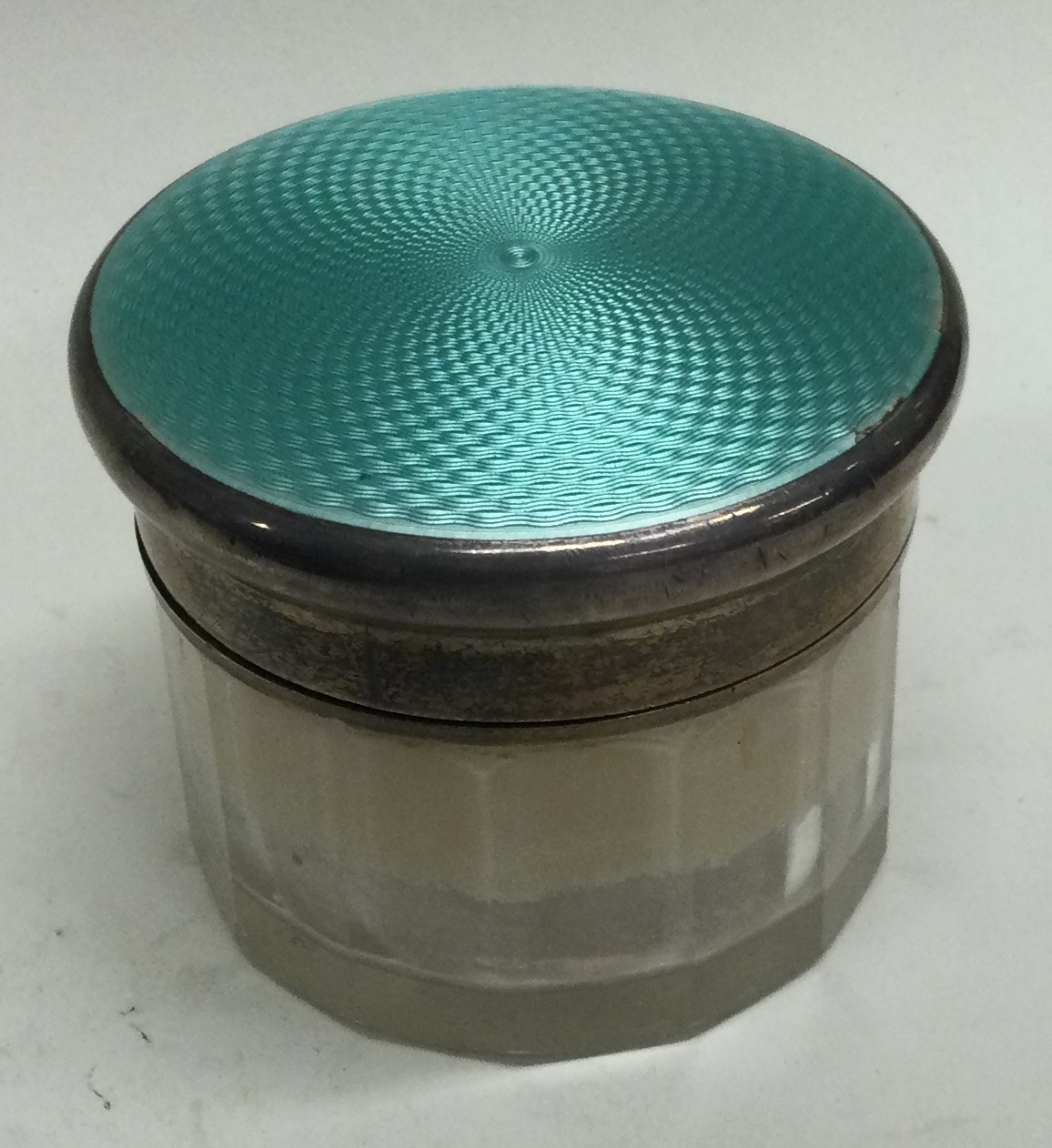 A good silver and enamelled dressing table jar of circular form. London. Est. £20 - £30.