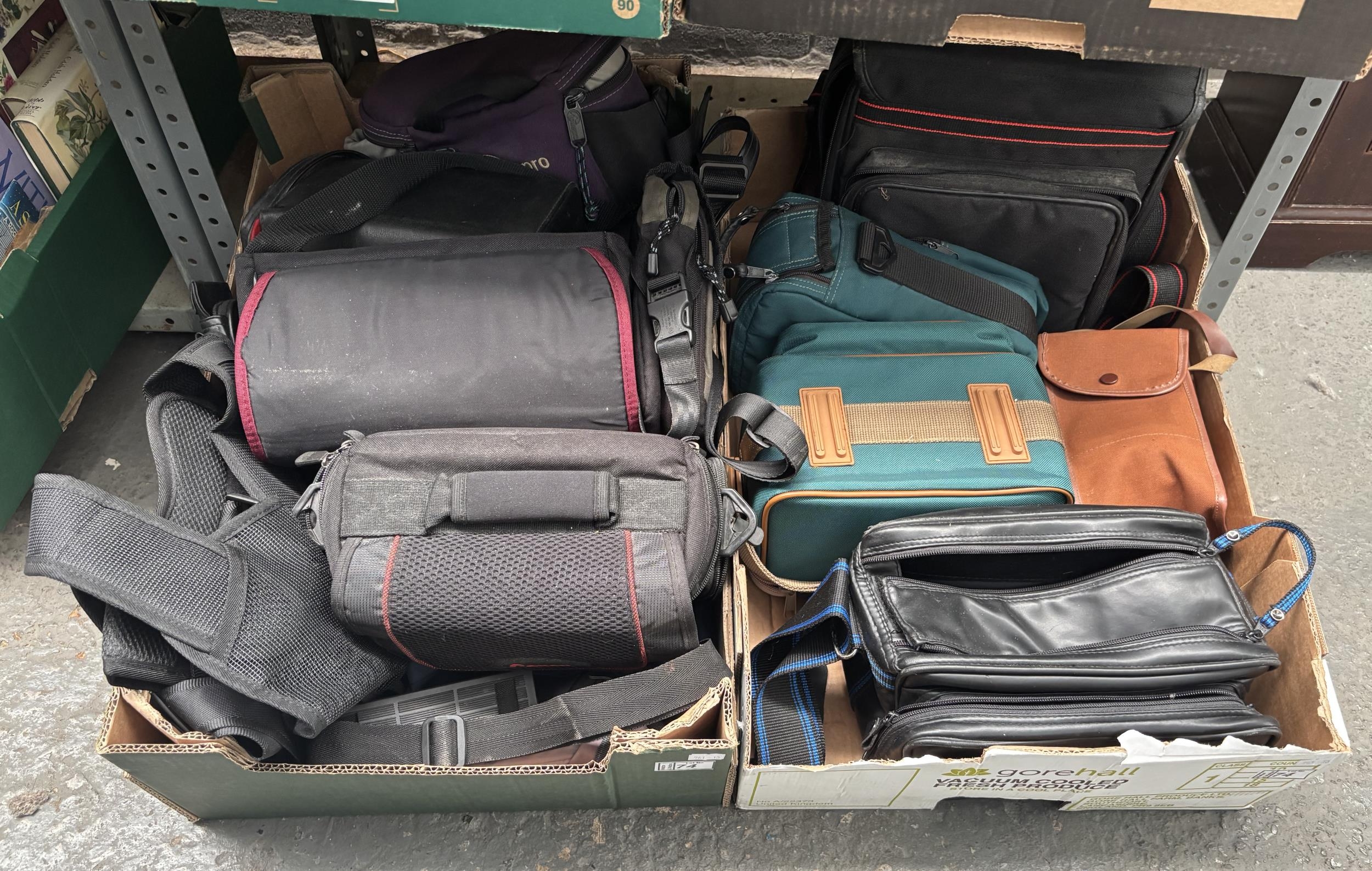 2 Boxes containing assorted camera bags