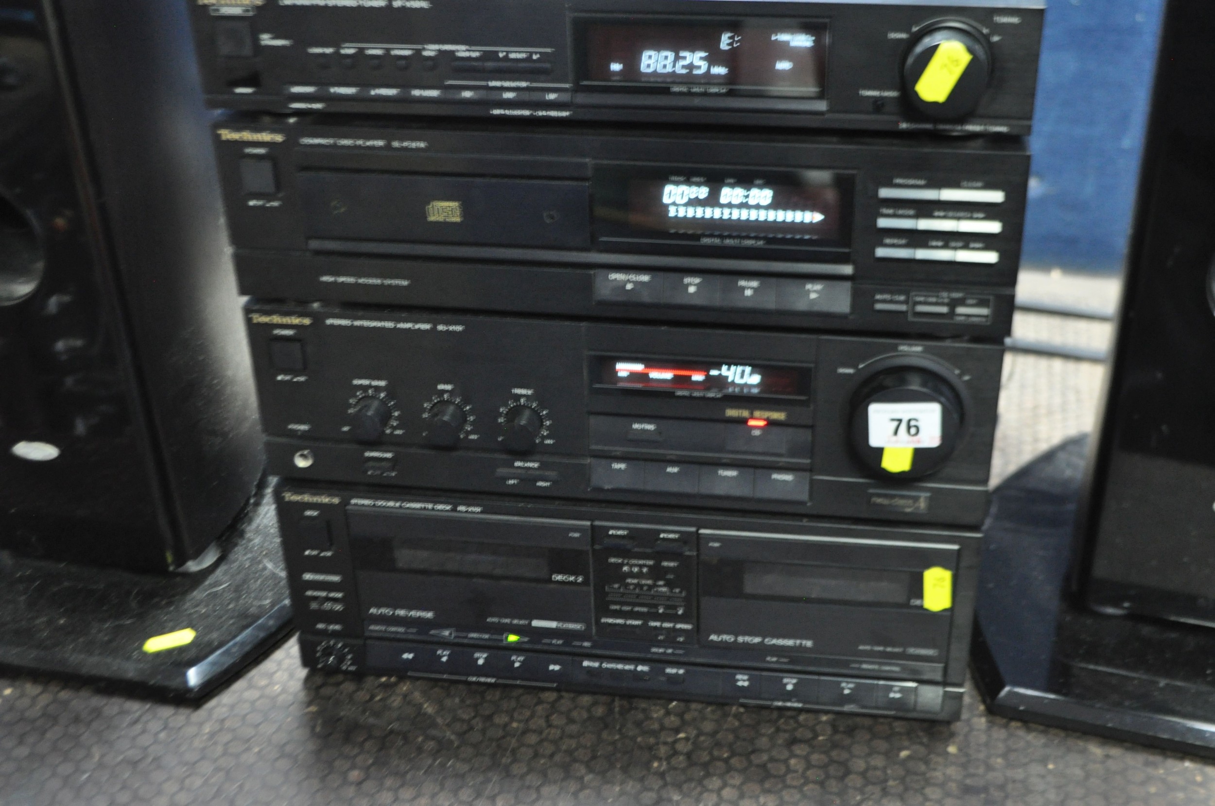 A TECHNICS COMPONENT HI FI comprising of a SU-X101 amp, a SL-PJ27A CD player, a ST-X301L Tuner, a RS-X101 dual tape deck and a pair of Goodmans floor standing speakers (PAT pass and working)