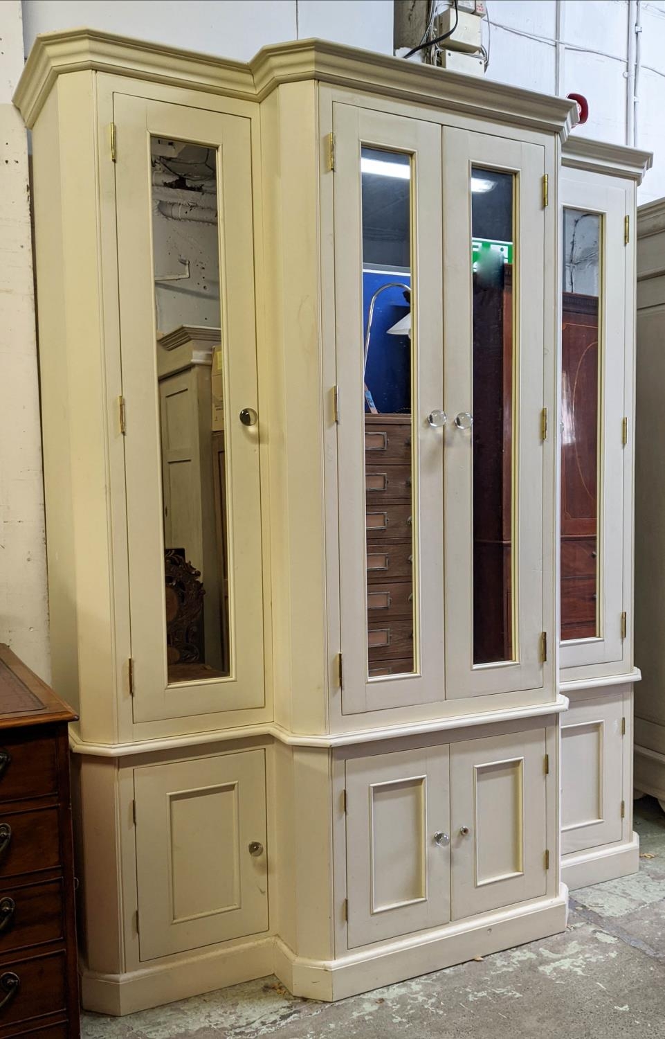 BREAKFRONT CABINET, 160cm x 60cm x 210cm approx, contemporary, white painted, mirrored doors.