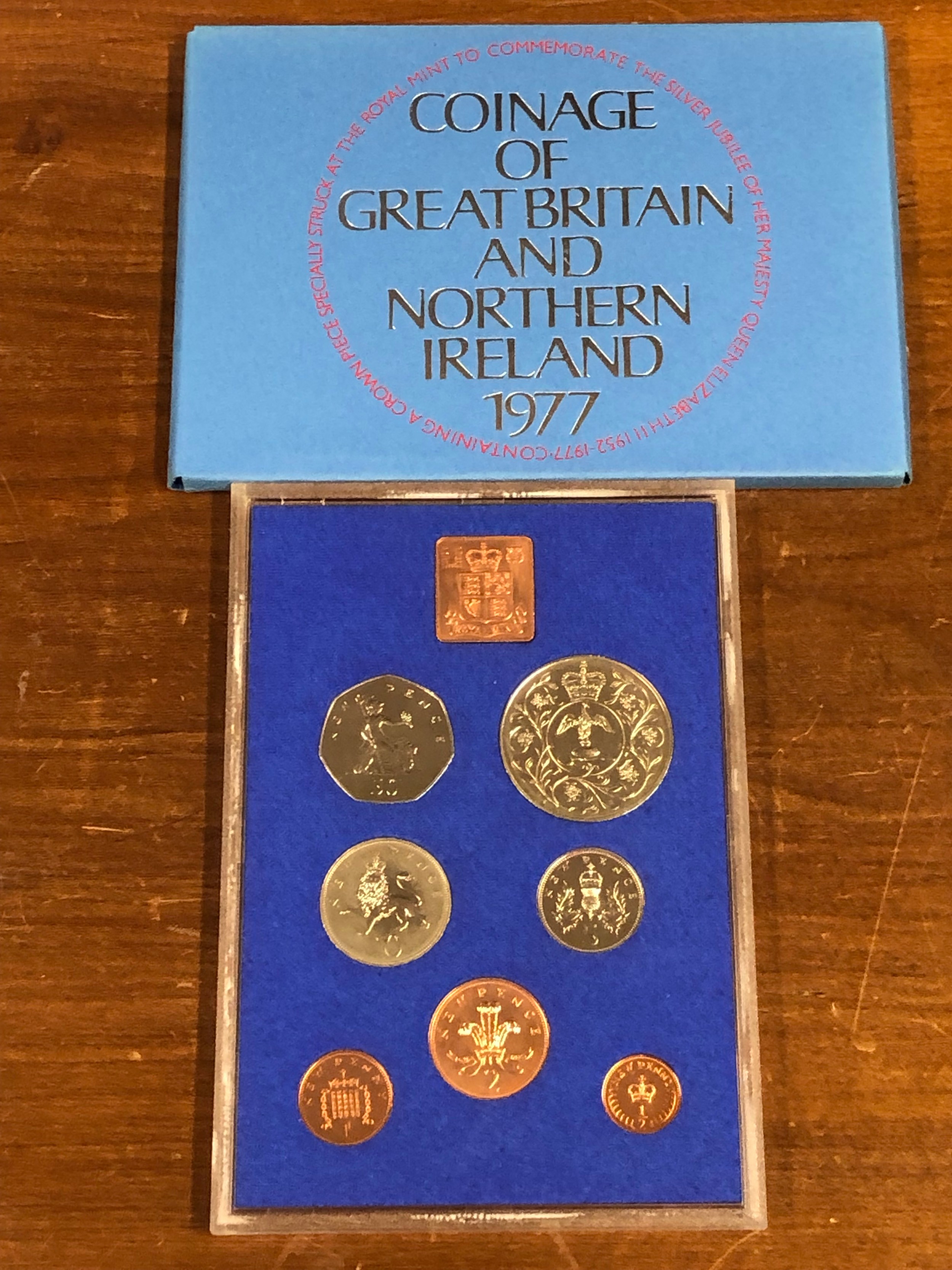 Coinage of Great Britain and Northern Ireland 1977. Uncirculated and plastic case and cover