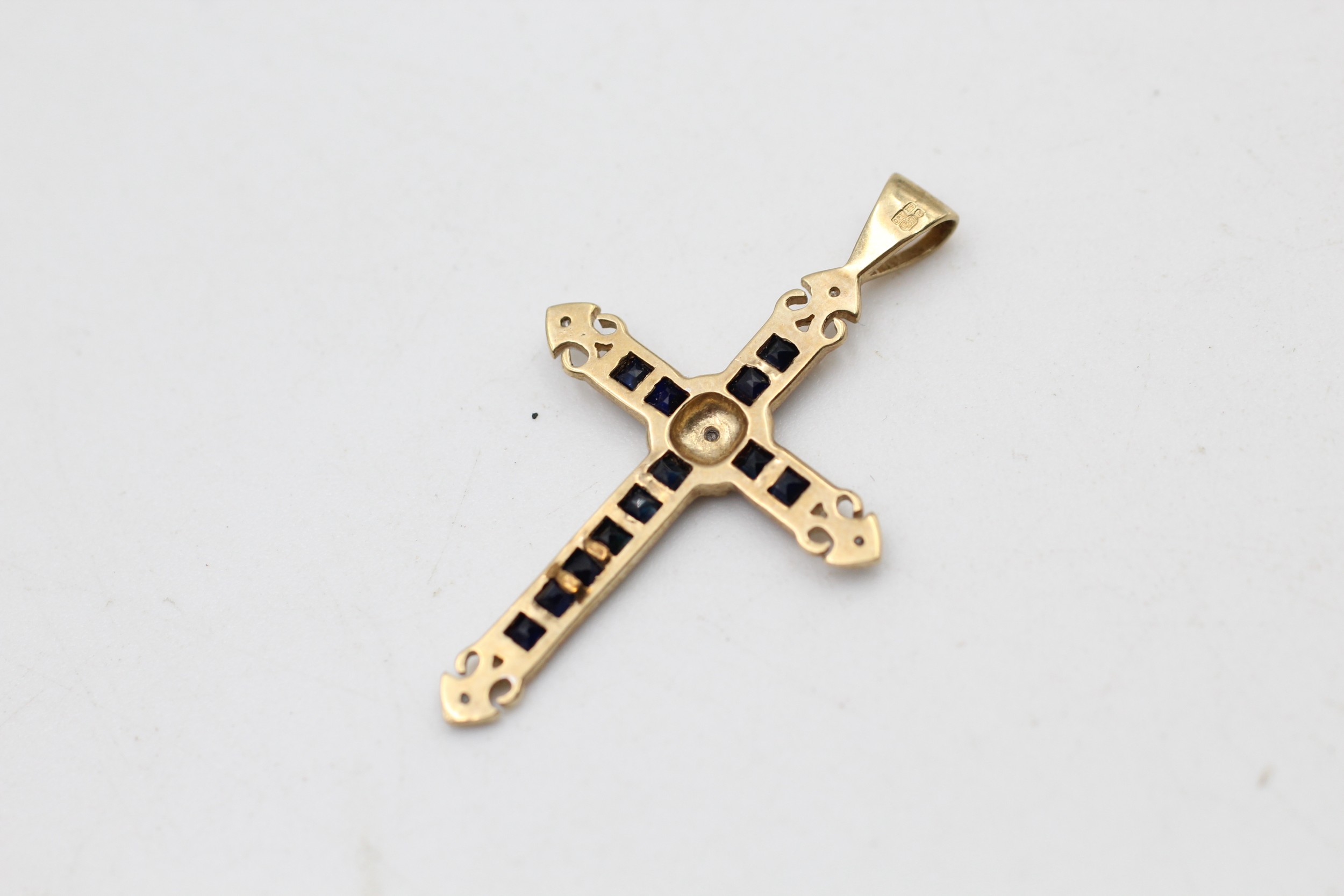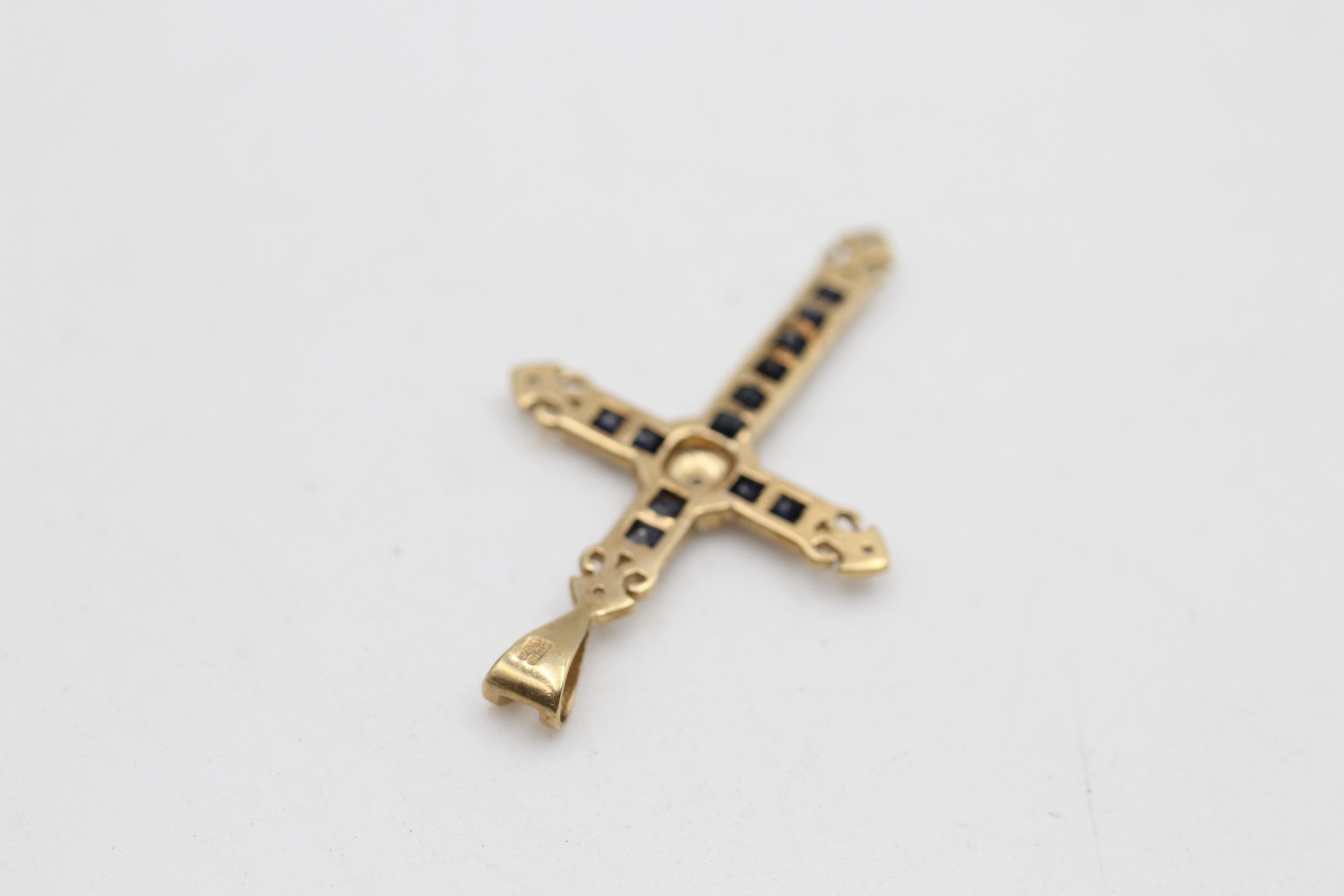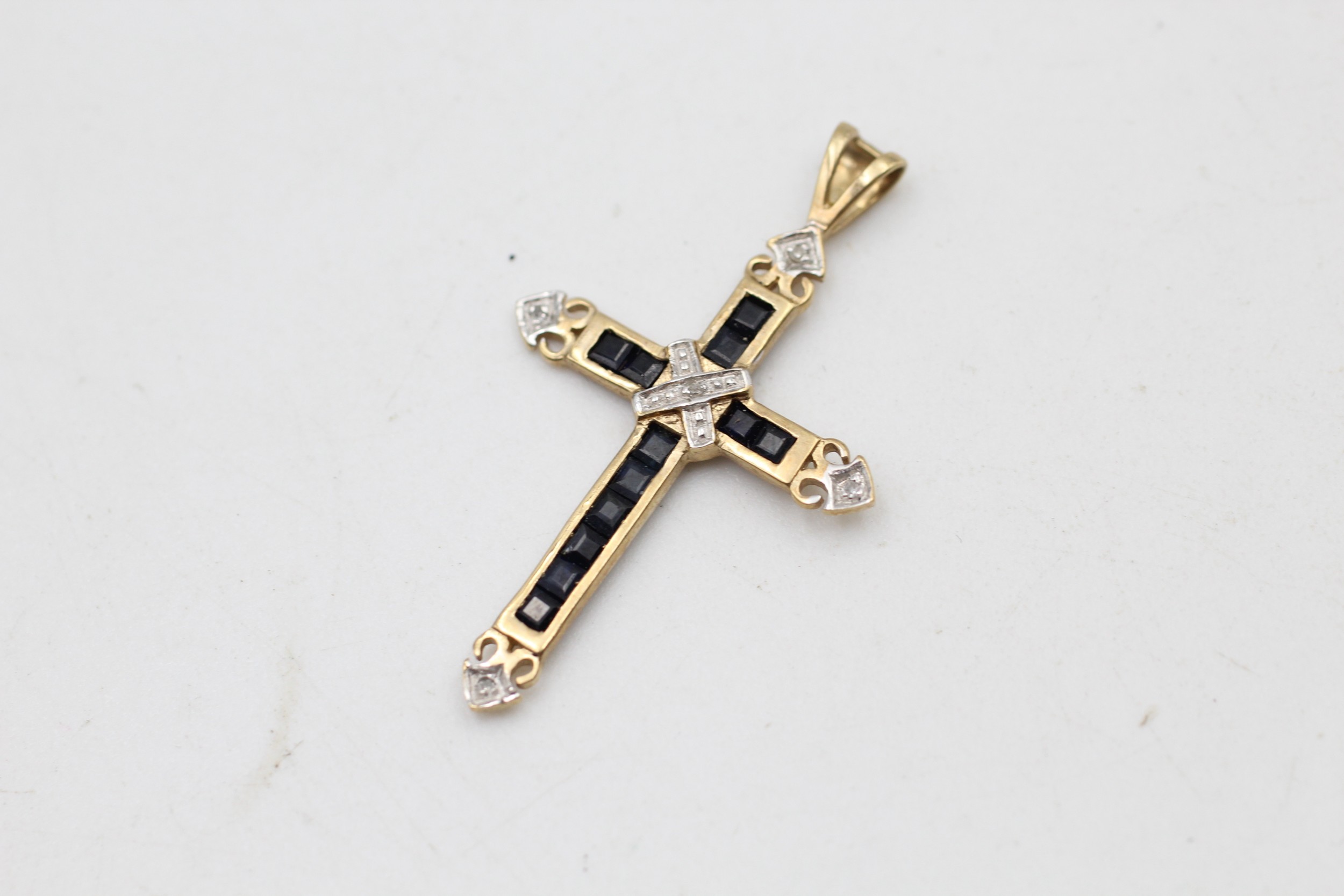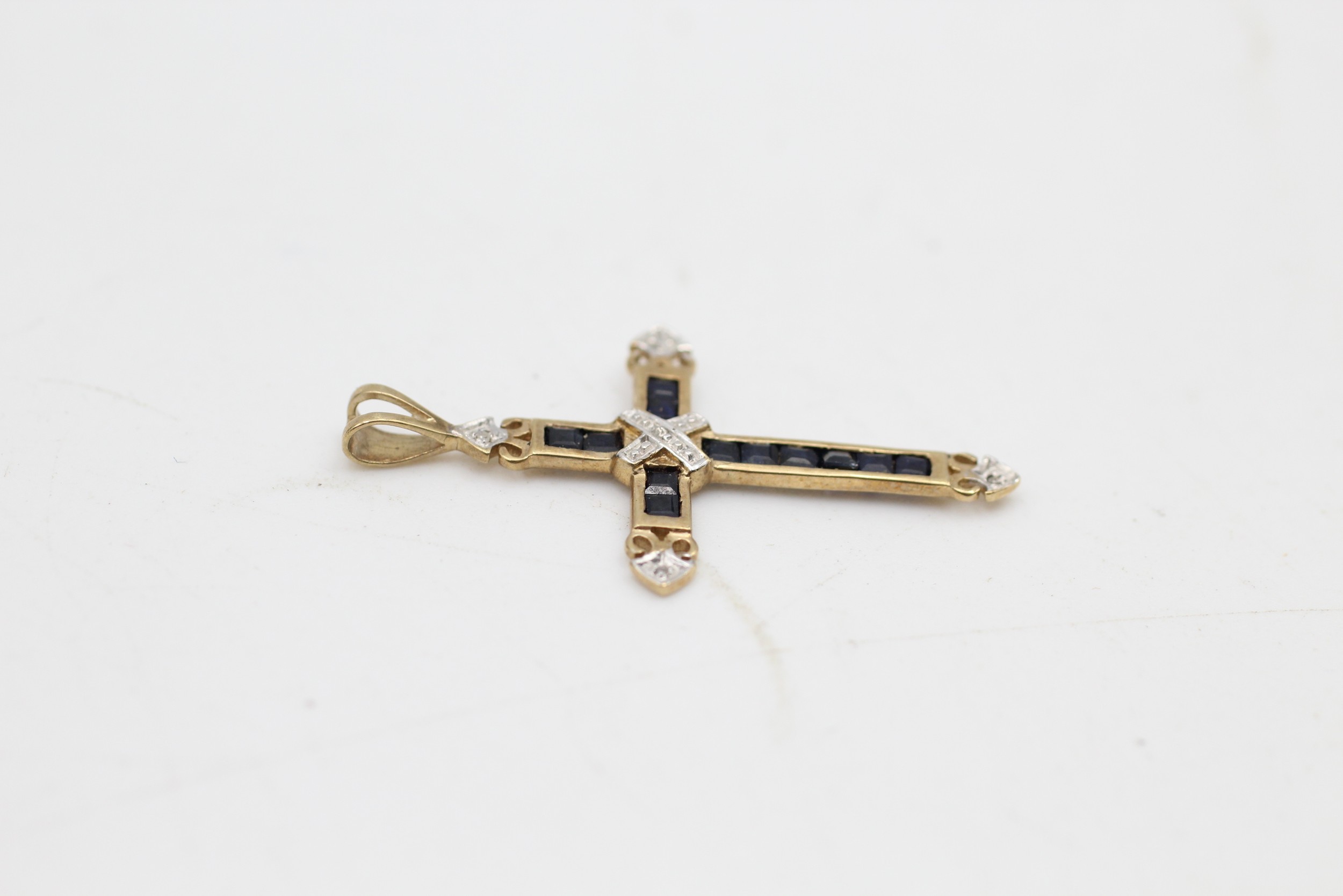 9ct gold diamond & sapphire cross pendant (1.3g)
