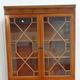 Reproduction Yew Wood Side Cabinet, pair cupboard doors on plinth base with cock beaded frieze drawers, open hutch with pair glazed doors over with dentil cornice