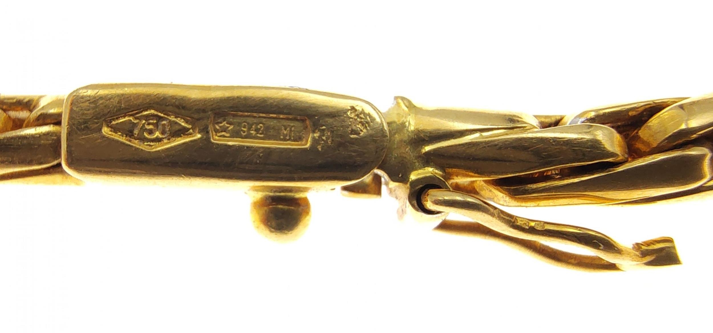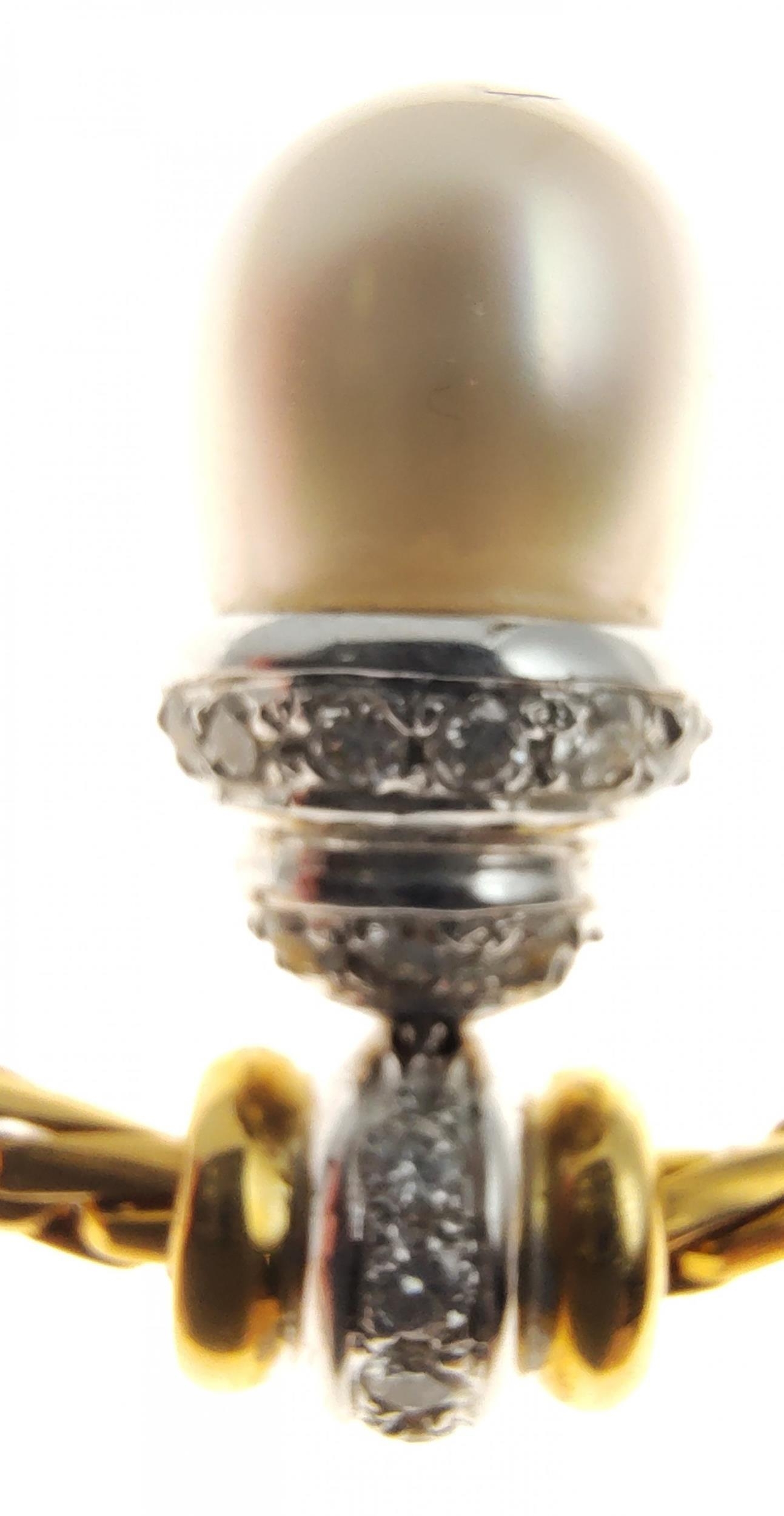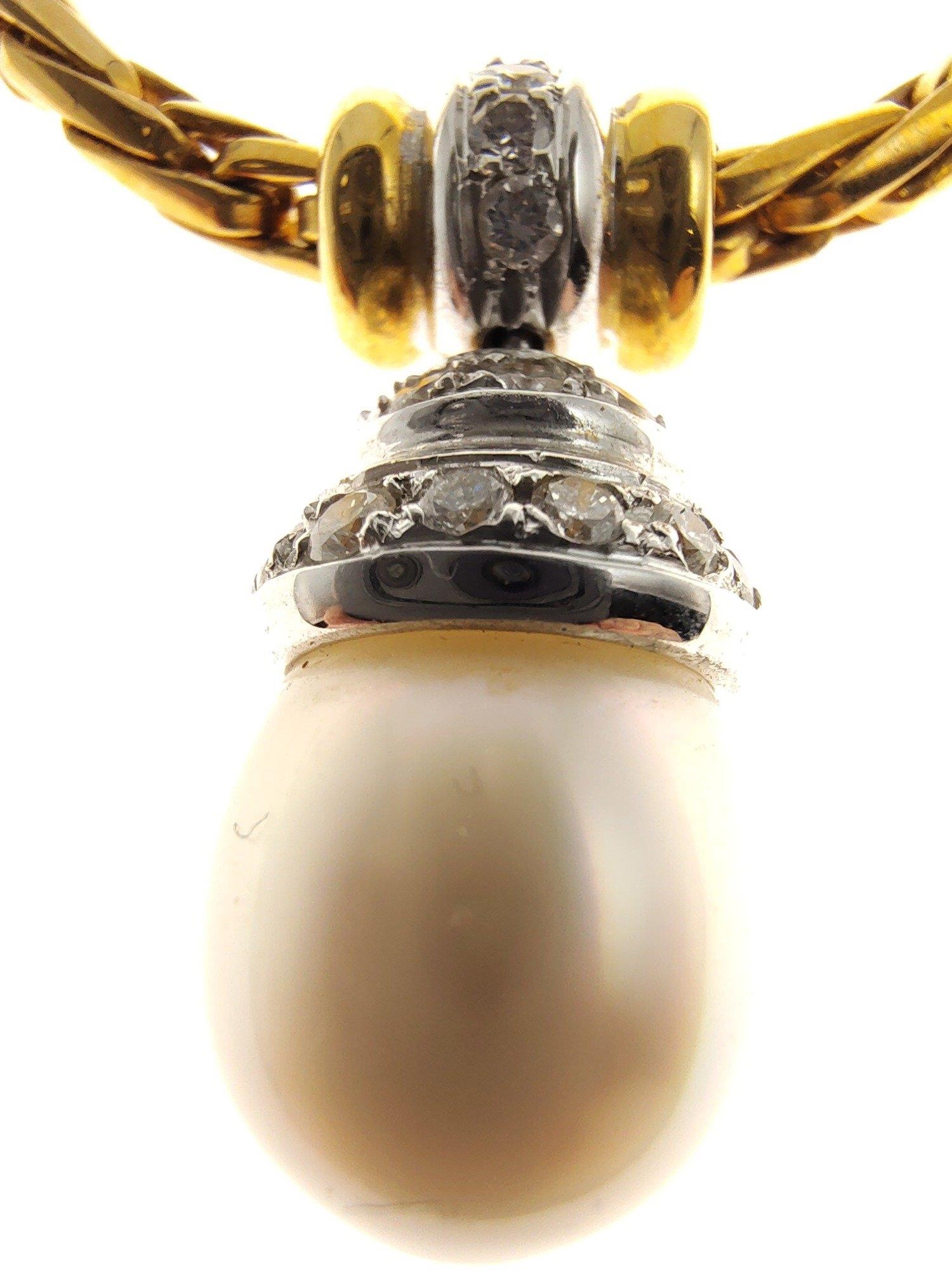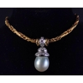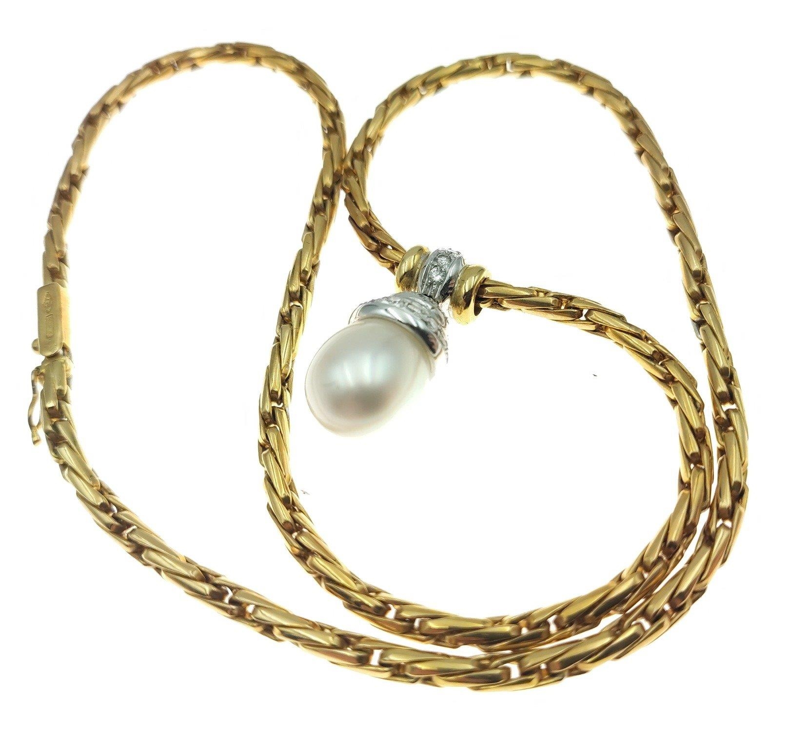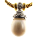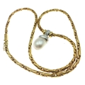 A 750 stamped yellow gold entwined link necklace with a single large tear-drop South Sea pearl pendant pave set with diamonds - 38g gross weight approx - purchased from HAMILTON & INCHES Edinburgh