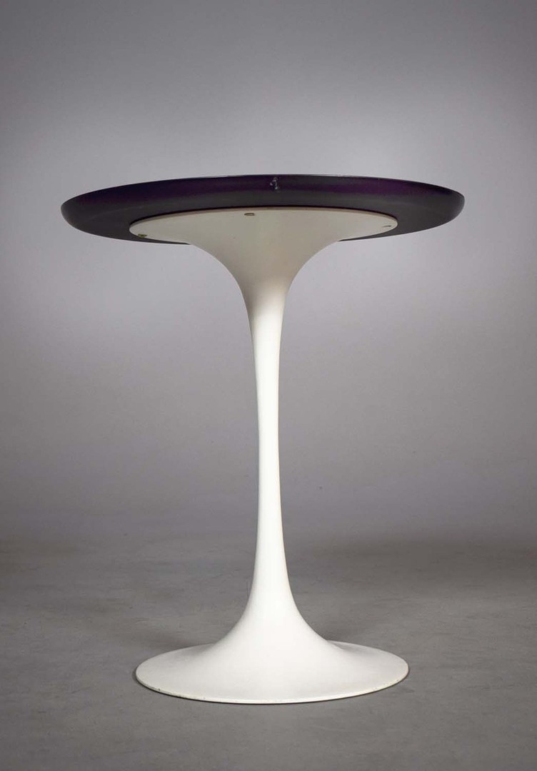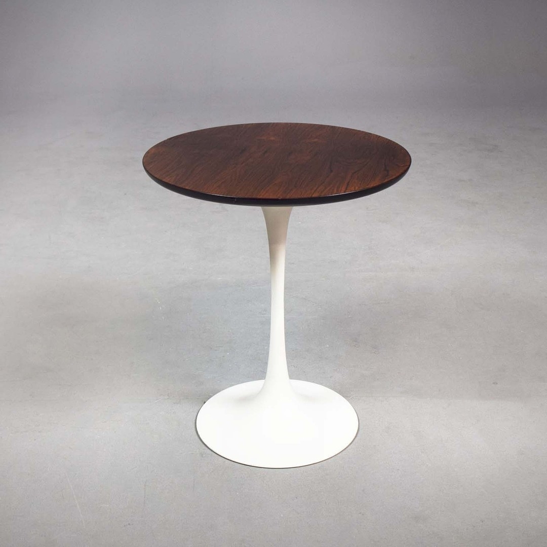 1970s TULIP SIDE TABLE BY MAURICE BURKE FOR ARKANA WITH WOODEN TOP. 51cm H x 44cm W.