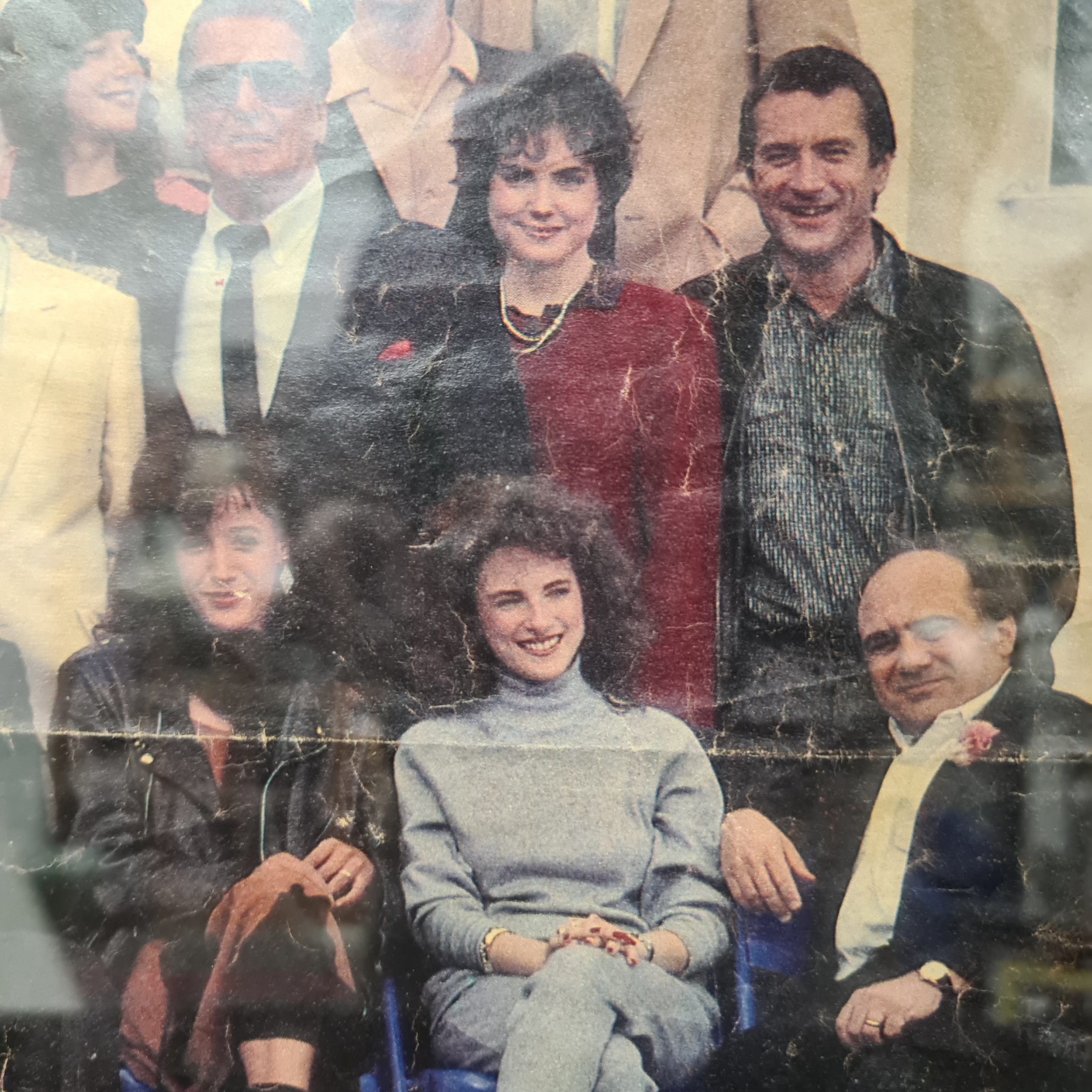 A framed retro newspaper clipping, reading "Spot 60 Superstars!", by the photographer Terry O'Neil. Showing a photograph of 60 celebrities, including Elizabeth Taylor, Robin Williams, Tom Cruise and John Travolta etc. Its a great for game of identity the celebrity.