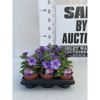 FIFTEEN PETUNIA SURFINIA 'BURGUNDY YELLOW PICOTEE' IN P8CM POTS ON A TRAY. TO BE SOLD FOR THE FIFTEEN.