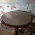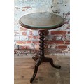 A late Victorian mahogany one piece dished top circular occasional/wine table, bobbin turned column and tripod supports c.1900, bevelled glass inset. Good condition.