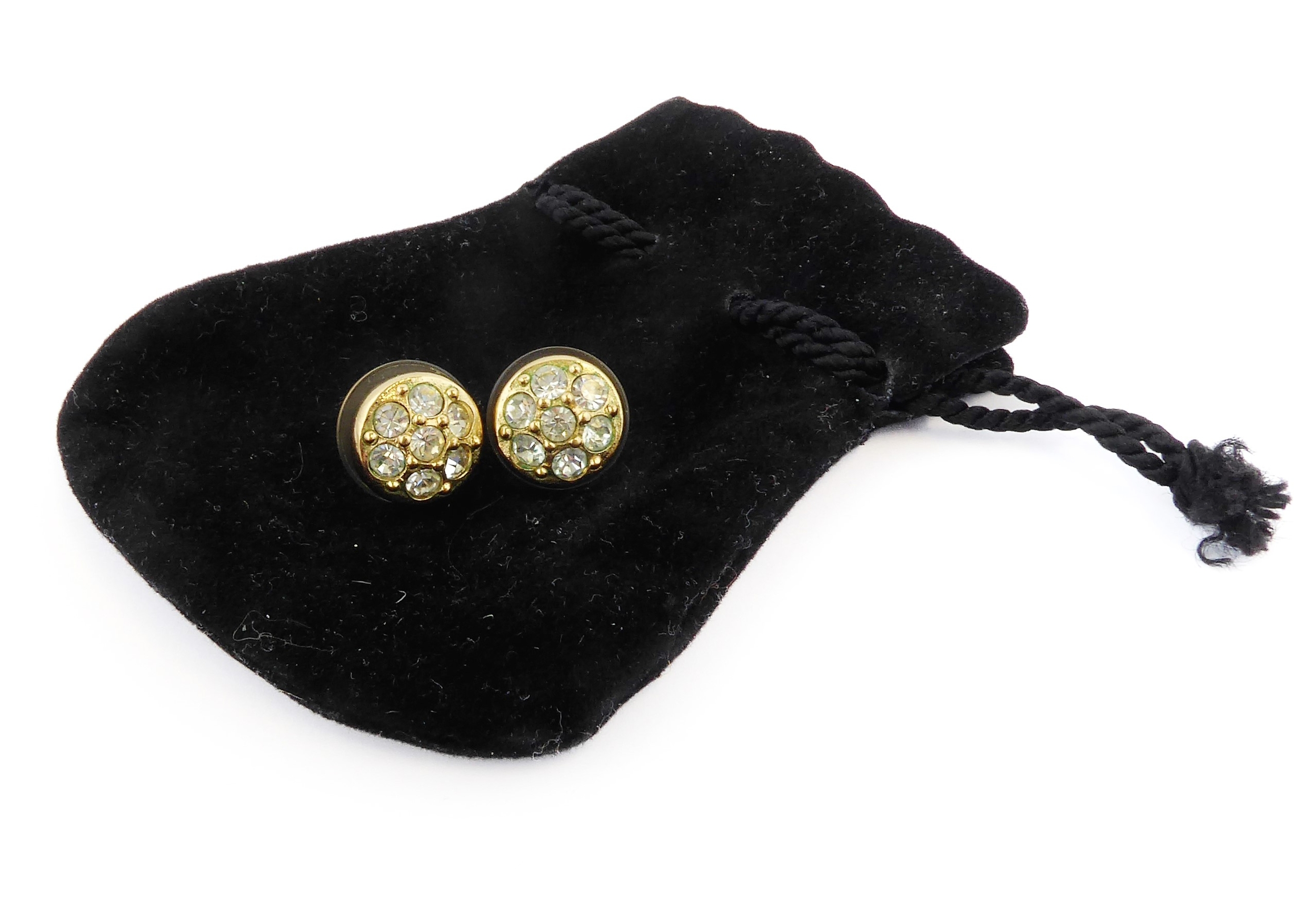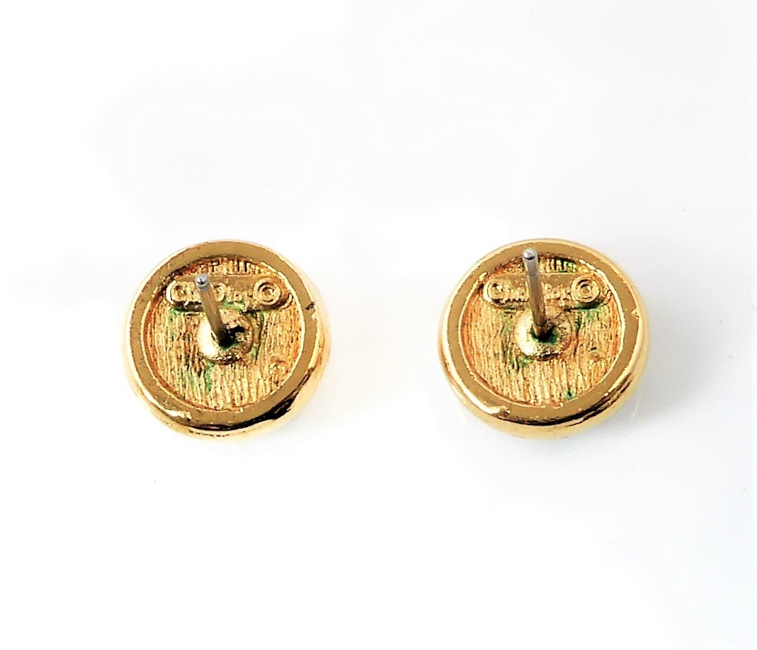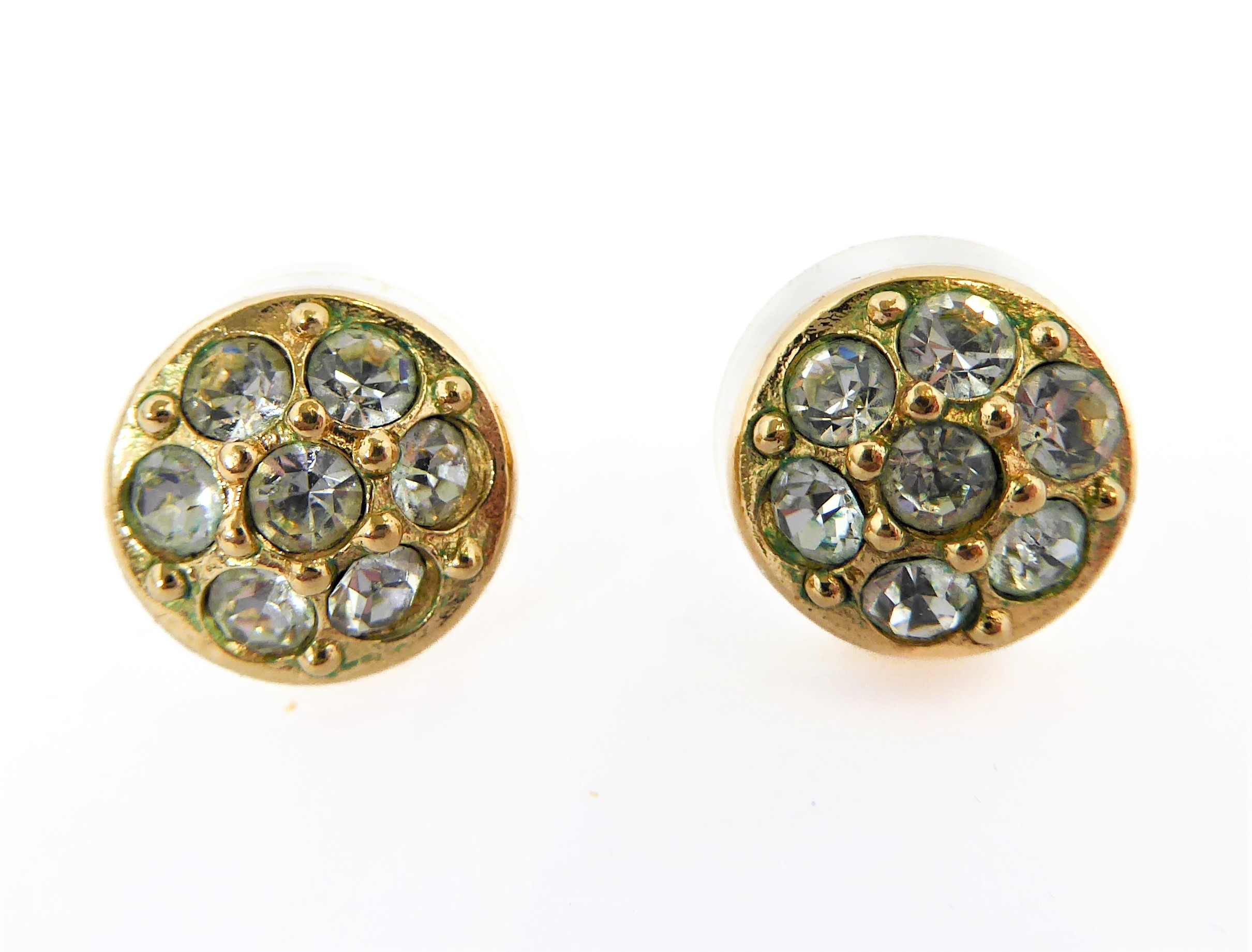 A pair of gold-plated and white-stone mounted ear studs by Dior, circa 1980s