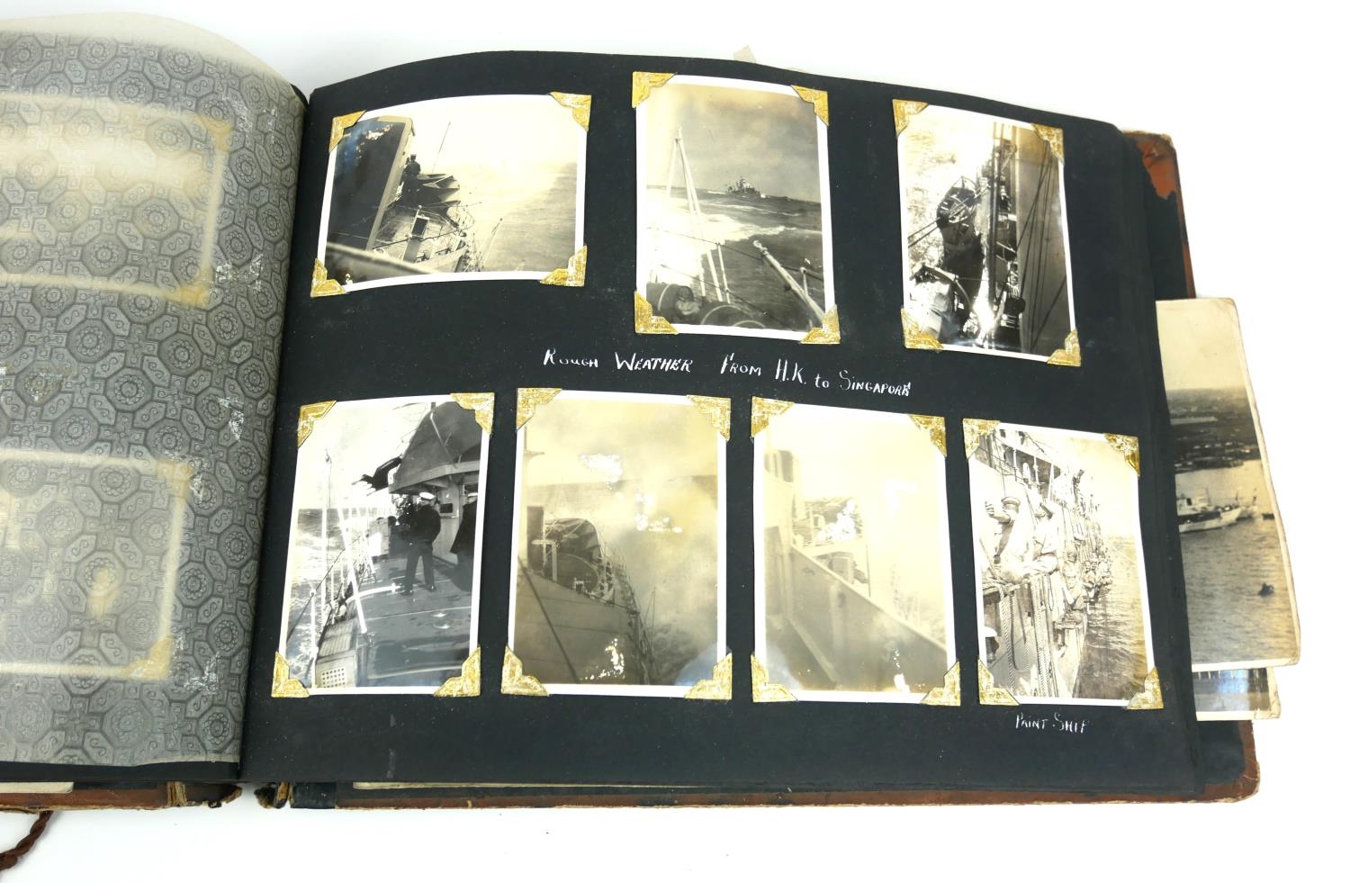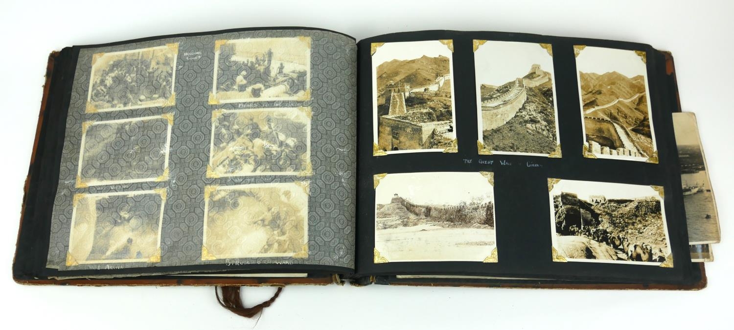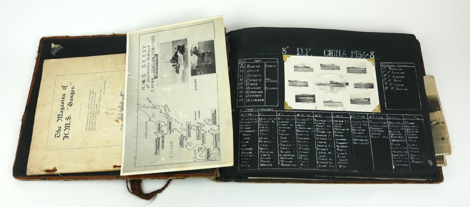 Containing approximately 120 original photographs, including the full ship’s company, destroyer flotilla manoeuvres, views of Hong Kong fleet base, Repulse bay, busy Chinese street scenes, the Great Wall of China, other city scenes.