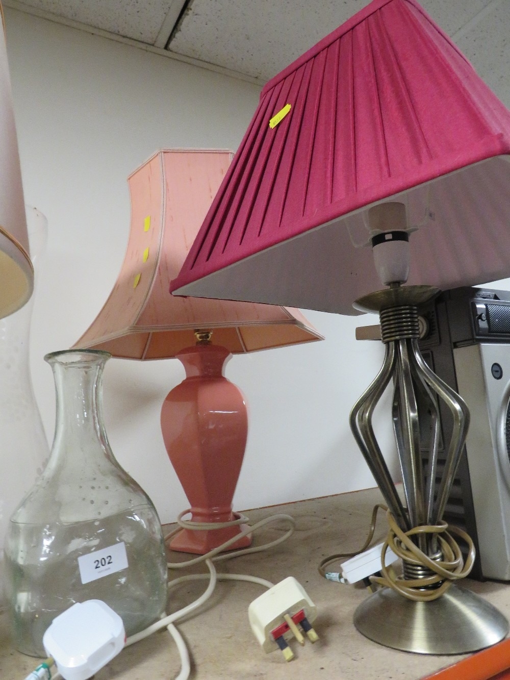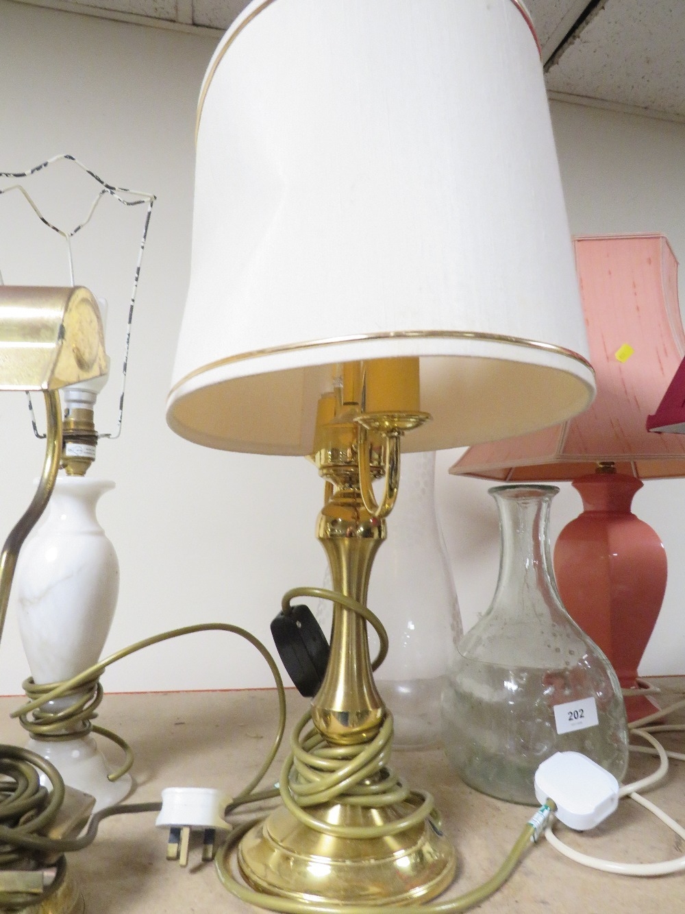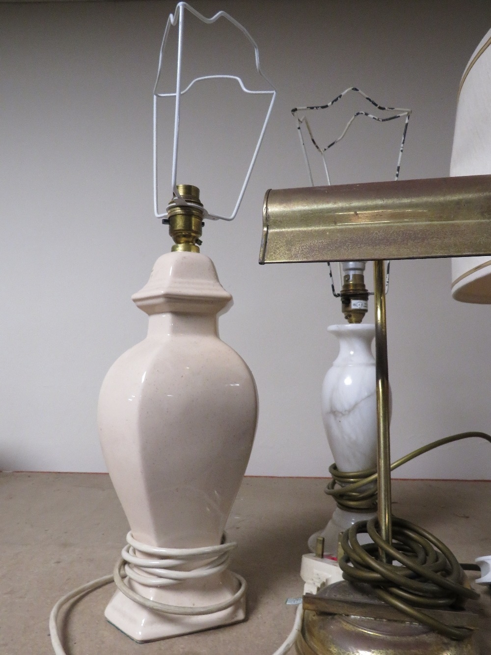 A selection of assorted lamps, vases etc