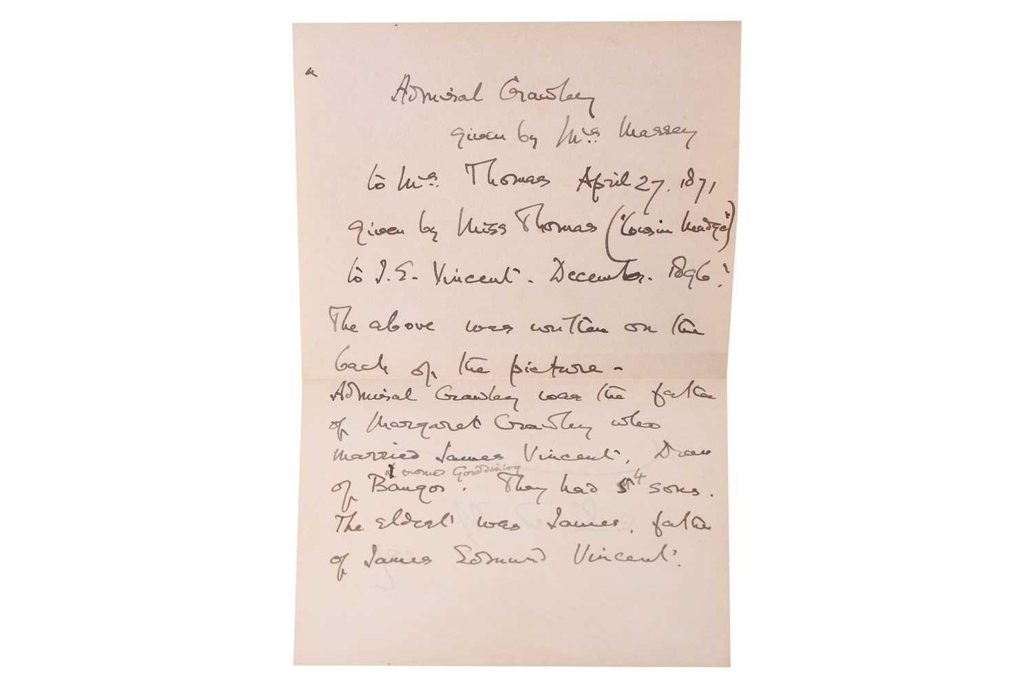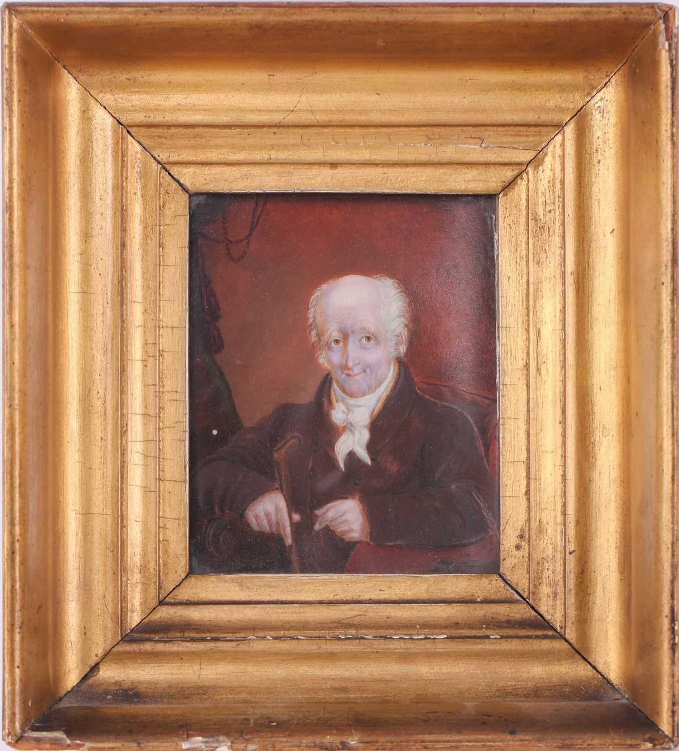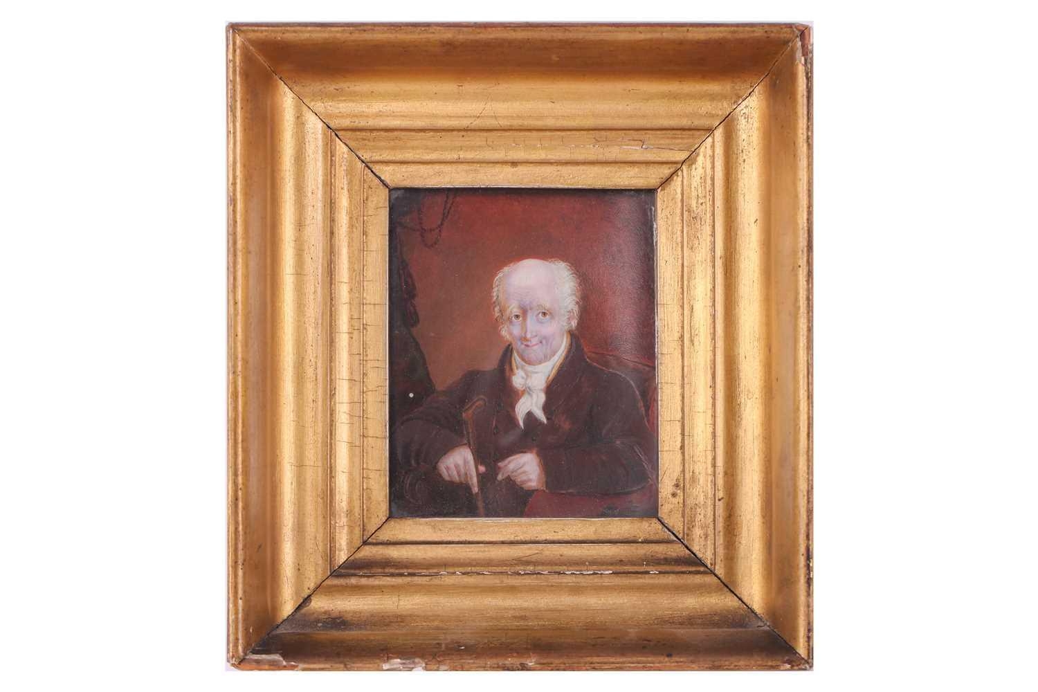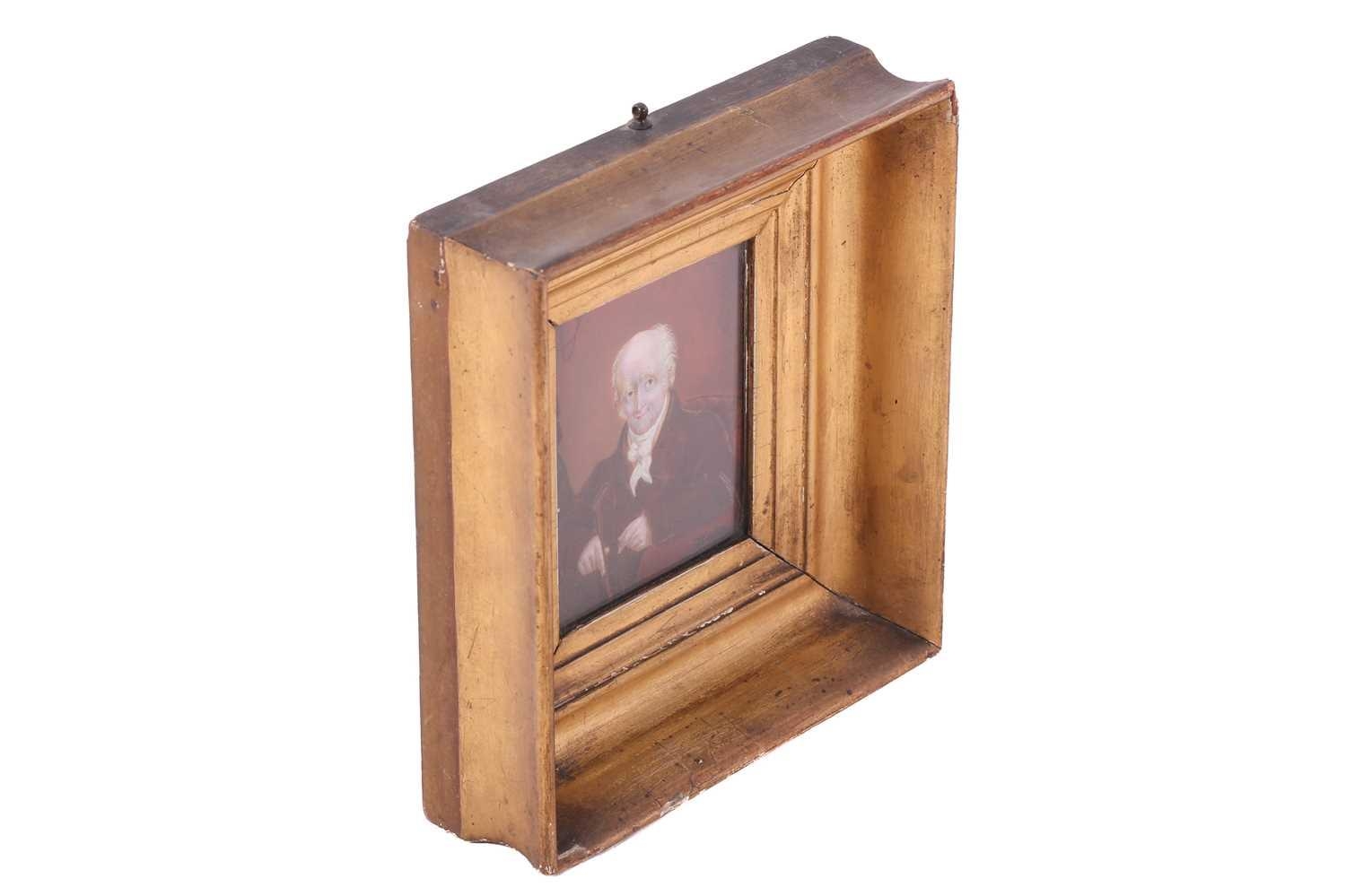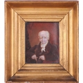 19th century British School, portrait of a gentleman, reputed to be Admiral Gawley, portrait miniature possibly on ivory, 11 x 9 cm, framed in a giltwood moulded frame and glazed 21 x 19 cm. Ivory certification reference 78FNTDZW From a deceased estate. Letters attached to the back give provenance from April 27th 1871, 'given by Mrs Massey to Mrs Thomas' followed by a family history.