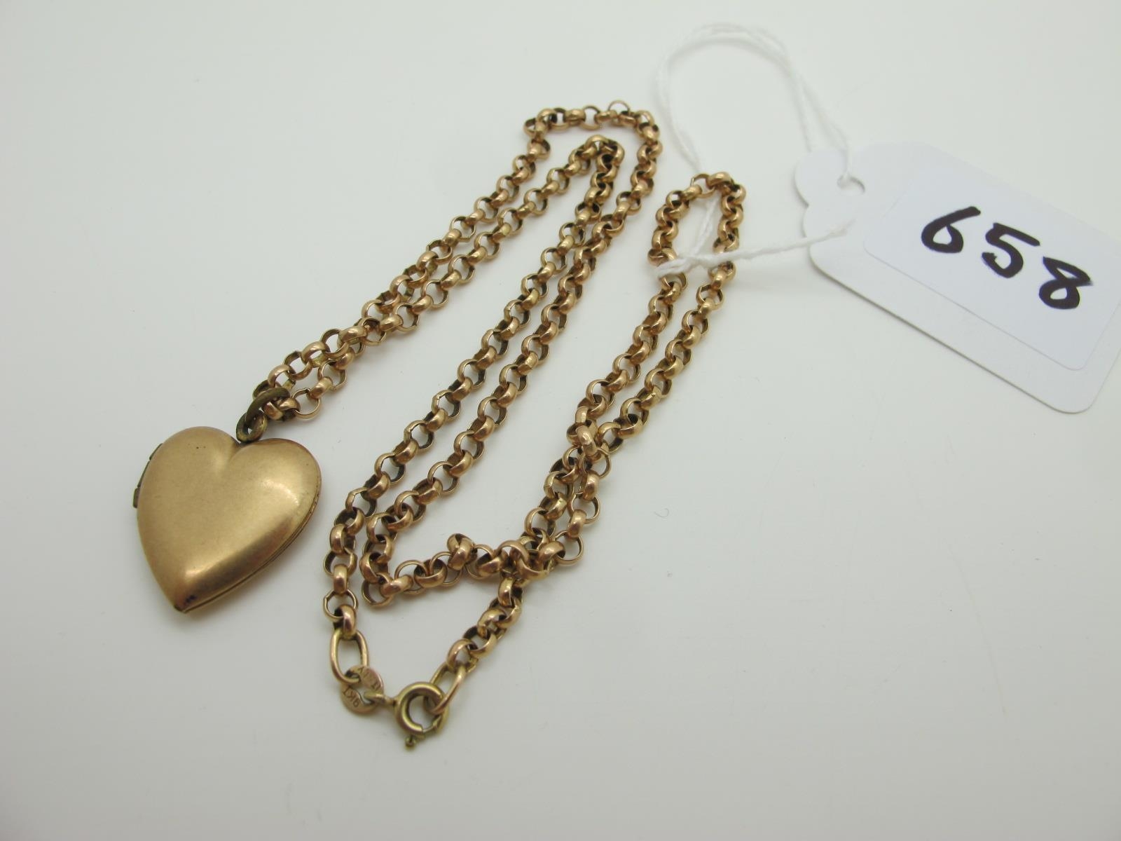 A 9ct Gold Belcher Link Chain, suspending a heart shape locket pendant.
