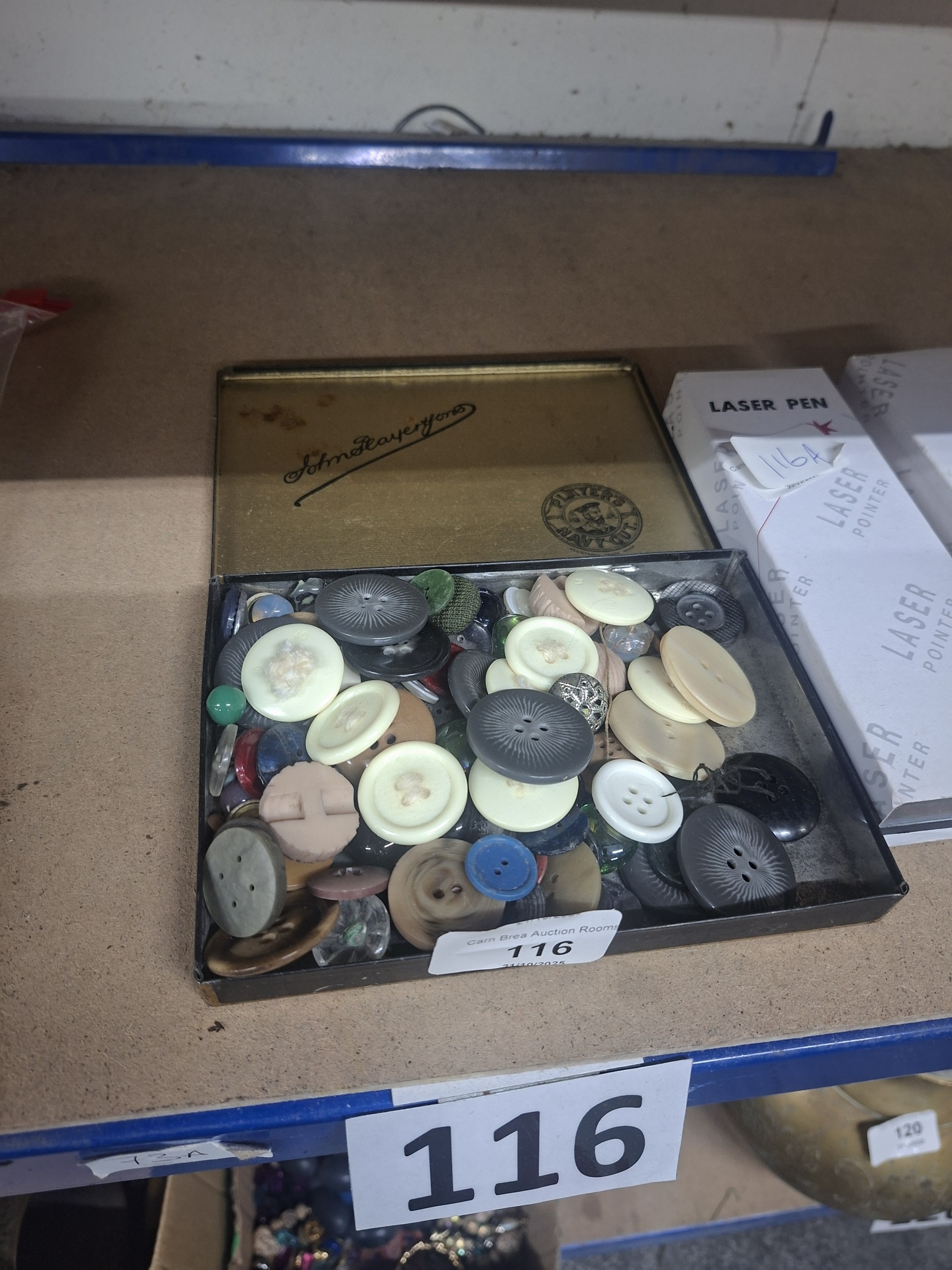 players tin and vintage buttons etc